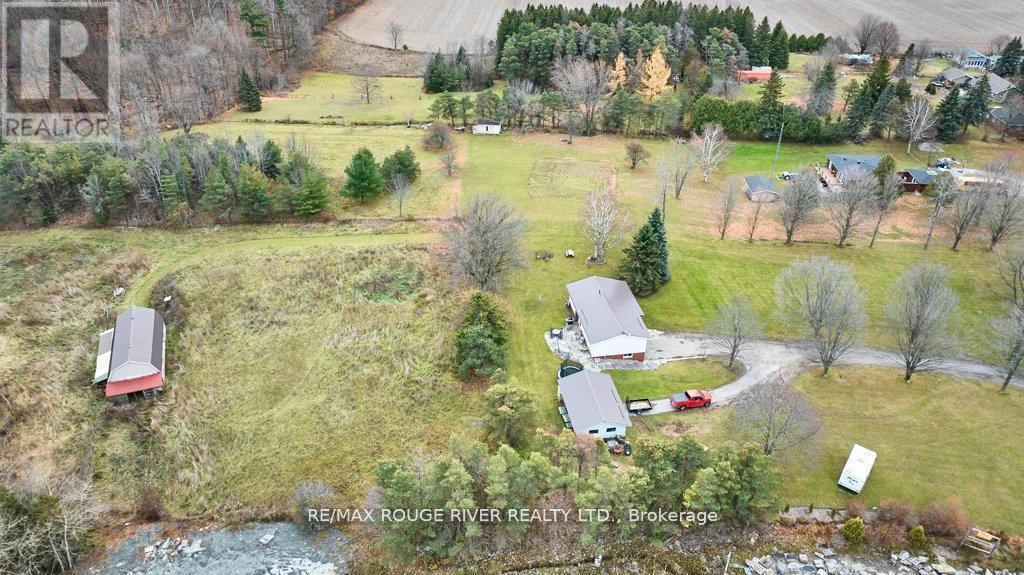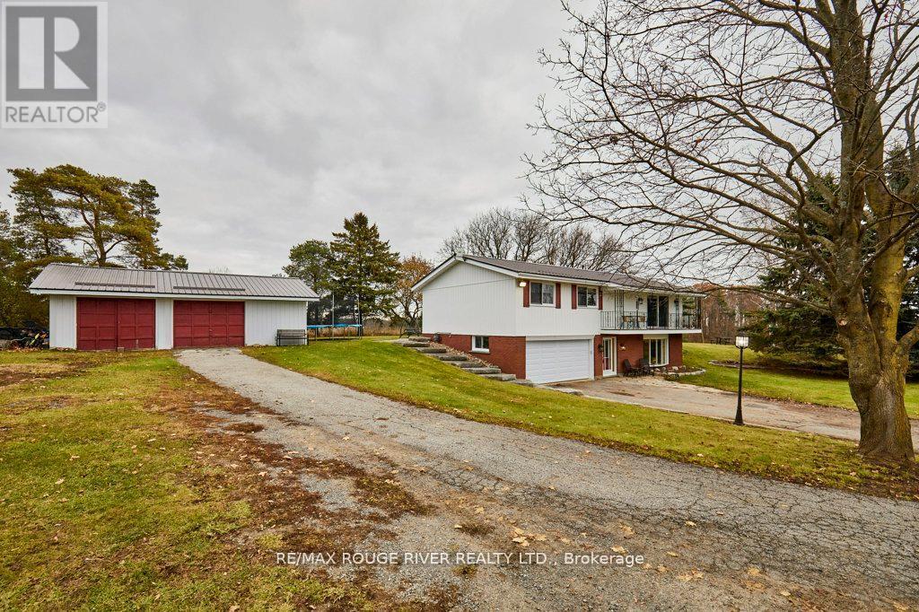 Excellent 10 Acre Hobby Farm / Horse Farm. Ideally situated between North Oshawa and Port Perry with quick access to 407, Costco, mega shopping district, parks, raglan trails and golf courses. Detached double garage workshop (Can be converted to a legal 2nd living suite) + a detached Livestock Barn with stalls equipped with hydro and water. Renovated Kitchen 2016. Extensive 8" Natural Limestone Landscaping 2016 approx $60,000 market value. Natural gas heat. Rough in 3pc bath in basement. Metal Roof. The property offers rolling hills, pond, paddocks, privacy, forested setting; as well as public land behind for snowmobiling, dirt biking and 4 wheeling. Spacious floor plan with lot of natural light and walk out to balcony. Ideal for families. Vendor Take Back Financing Available with OAC. (id:4555)