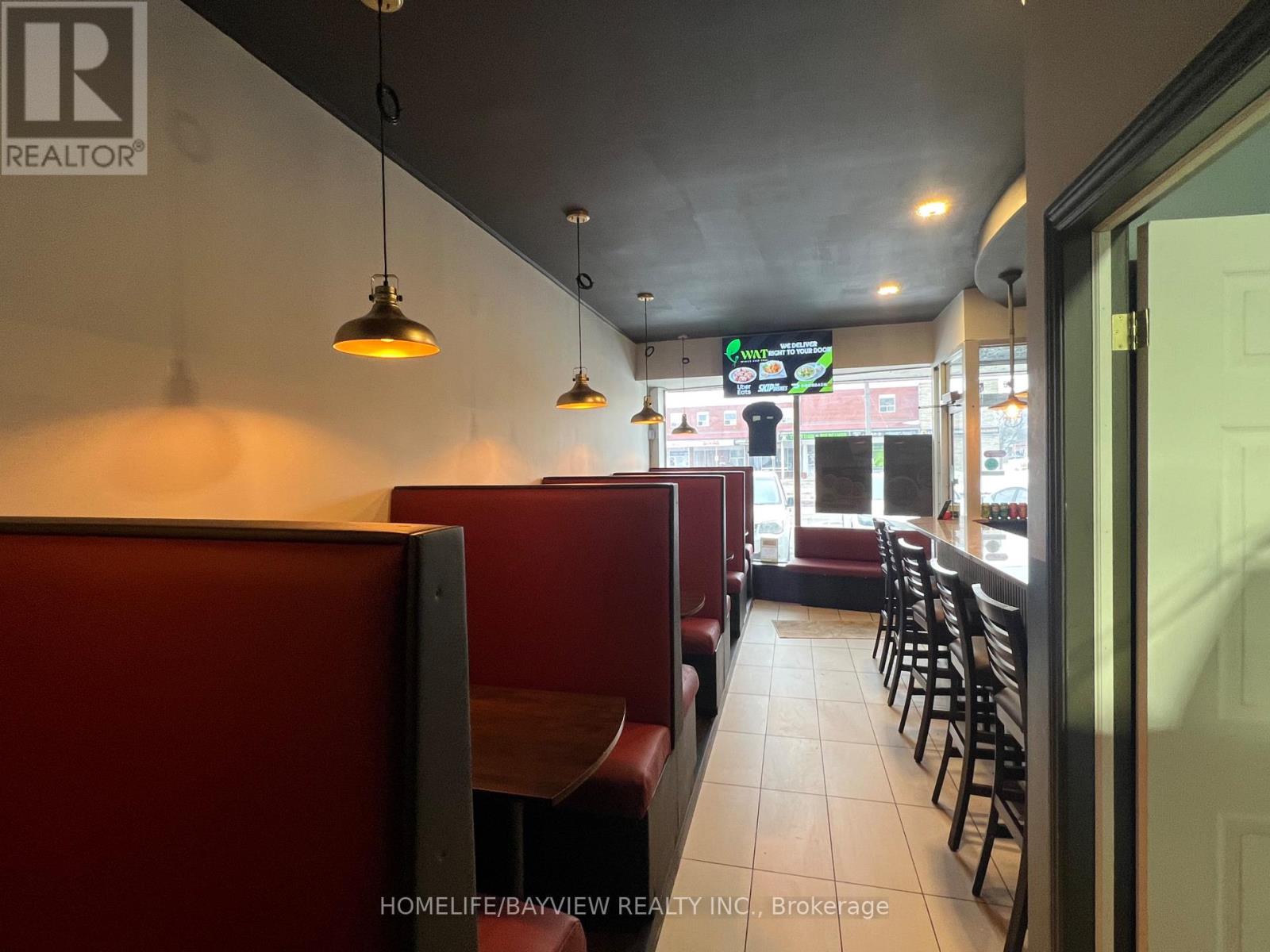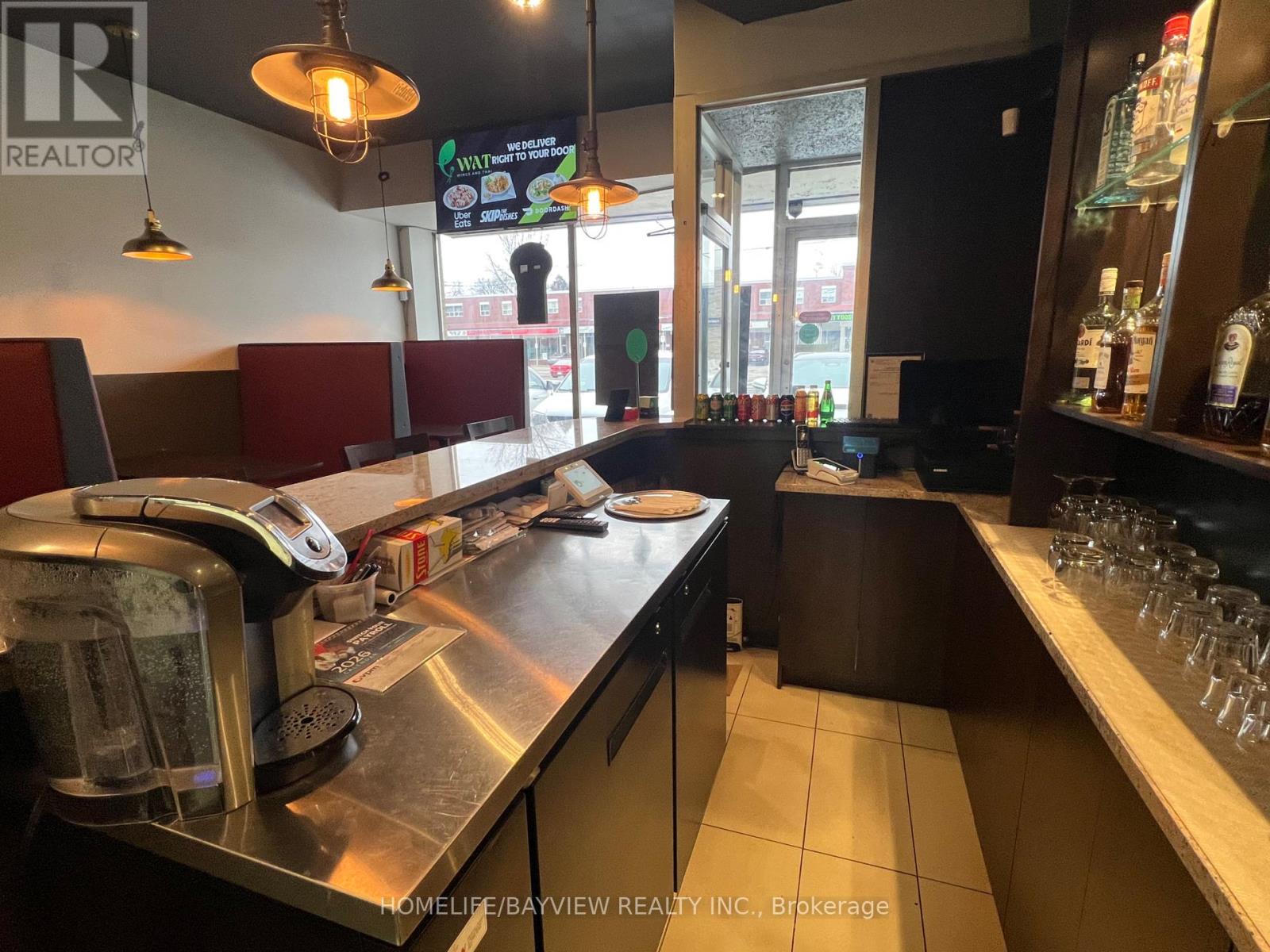 Newly established restaurant located in a prime, high density area with limited competition. Totally renovated and with new equipment: grill kitchen with 15 foot exhaust hood, walk-in cooler, walk-in freezer, dishwasher, etc. All equipment owned. L.L.B.O. with 30 seats. Currently serving best-tasting thai food and chicken wings. Only 2 months established and already doing about $1,000/day and growing. Could be converted to any type of cuisine. Option to add breakfast and extend hours to boost the sales. Great opportunity to be your own boss. Rent $3900/month includes TMI & HST; new lease 5 years + 5 years option to renew. (id:4555)