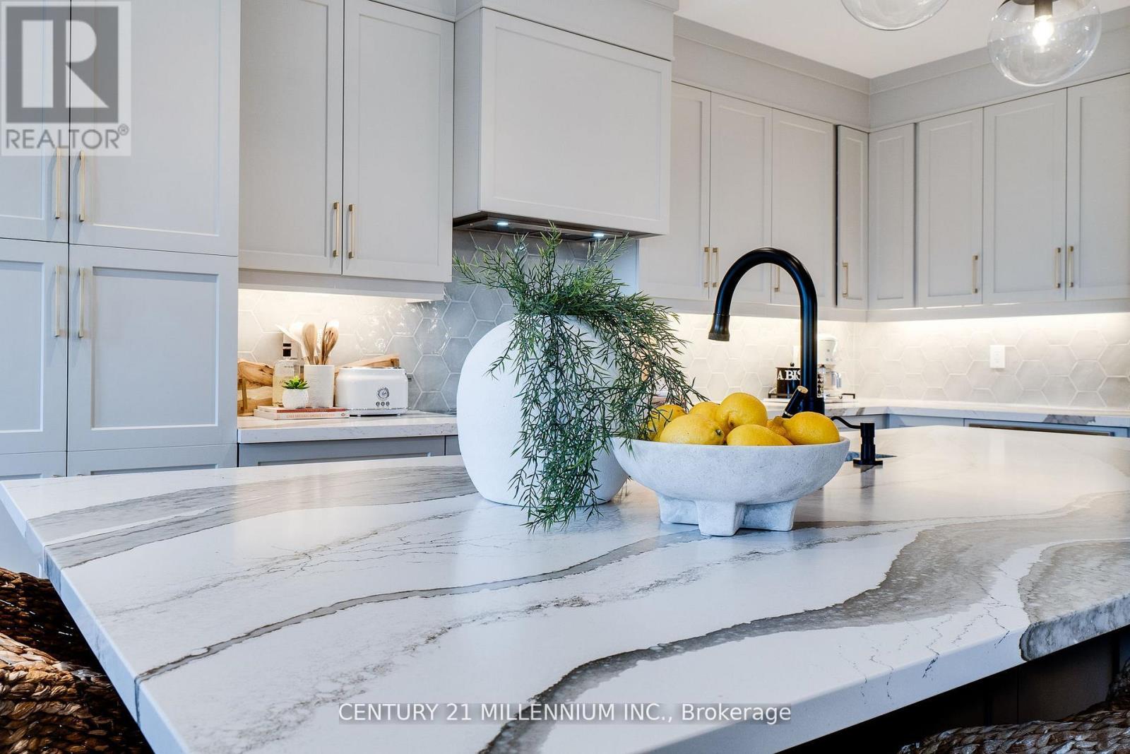 Ravine Setting | Custom Floor Plan | Resort-Style Pool. Step into refined luxury in this 4-bedroom, 4-bathroom residence featuring a thoughtfully designed custom floor plan where timeless elegance meets low-maintenance living. Backing onto a stunning ravine, this home offers an exceptional indoor-outdoor lifestyle for both everyday comfort and elevated entertaining. A custom mudroom leads to a chef-inspired kitchen with over $52,000 in premium upgrades, flowing seamlessly into the family room with a linear gas fireplace and custom Cambria shelving. Expansive 12-ft patio doors open to a full-length deck with breathtaking ravine and sunset views. The primary suite is a private retreat with a morning kitchen, double-sided fireplace, spa-inspired ensuite, and a secluded deck overlooking tranquil views. The sun-filled walk-out lower level-with bathroom rough-ins-offers space for an in-law suite, home office, gym, or entertainment area. Designer finishes, a saltwater heated pool, Arctic Spa hot tub, and professionally landscaped resort-style backyard complete this rare offering. Premium ravine reverse pie lot on a quiet cul-de-sac-truly one of a kind. (id:4555)