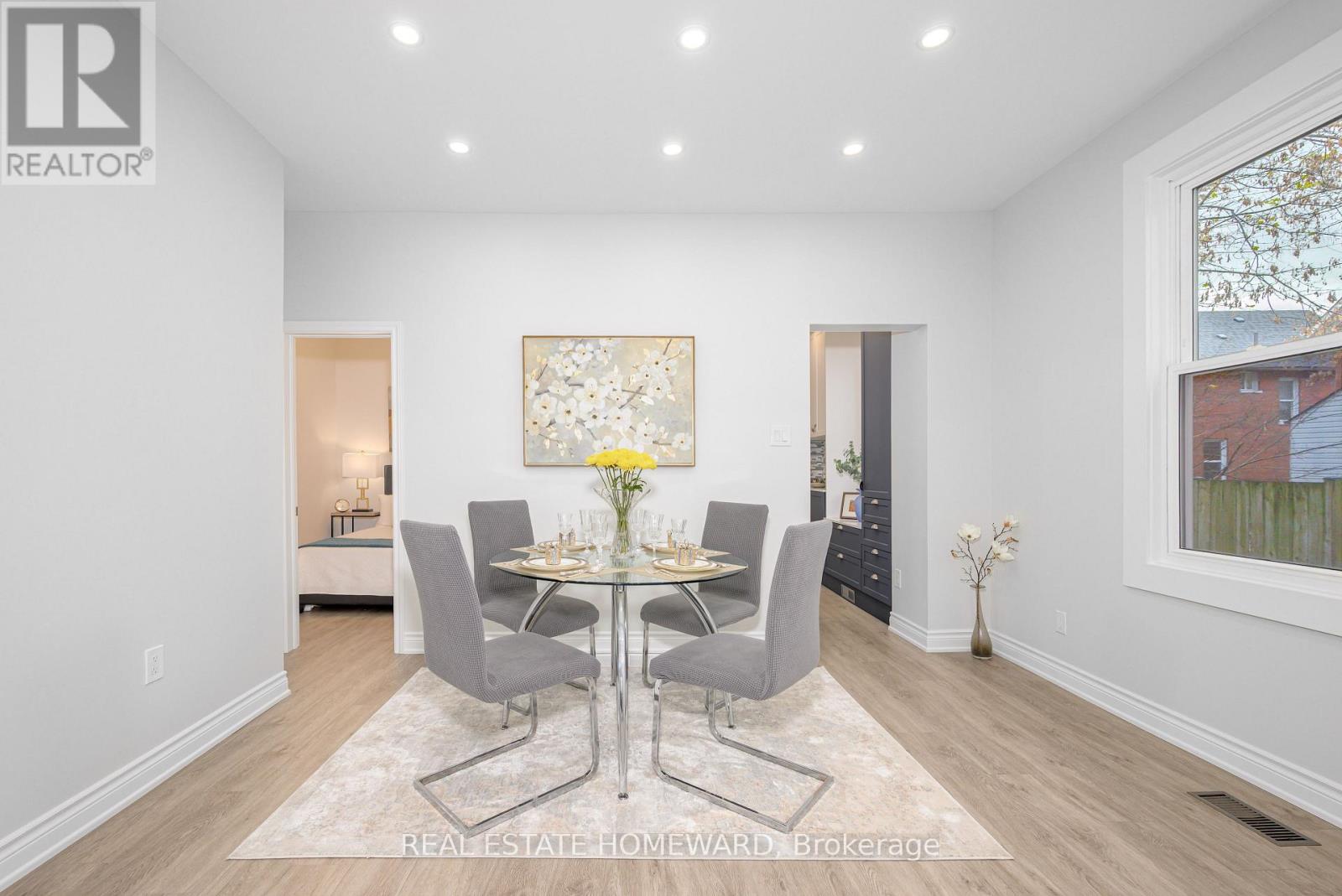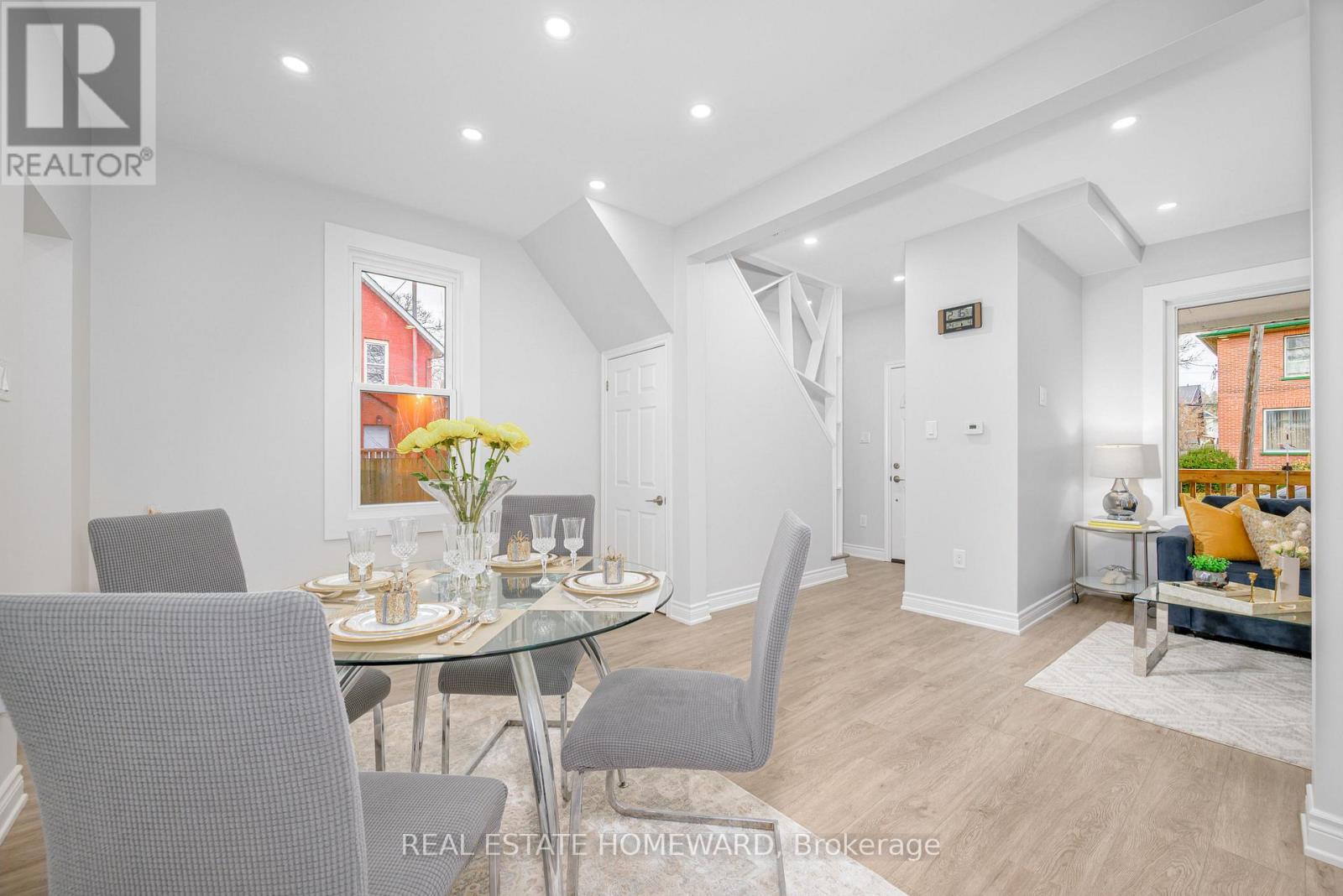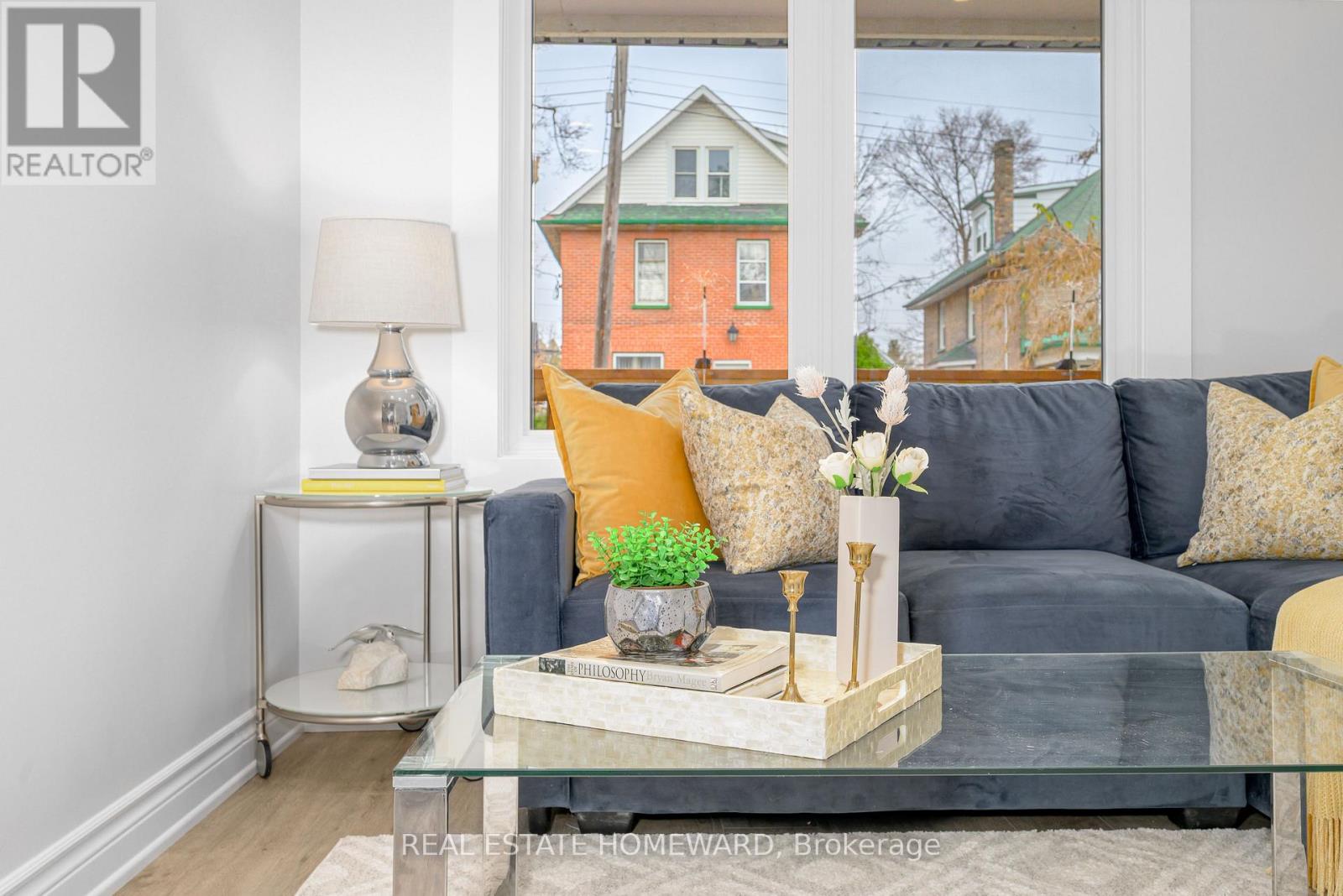 Welcome to this renovated detached house, on a large lot in downtown Oshawa! Looks as good in reality as it does in photos - please book your visit! Features 4 bedrooms; 2 bathrooms; new kitchen with new appliances; taller ceilings on main floor; open concept dining room; walkout to a south-facing large deck; private driveway with 4 parking spots; fenced backyard with ample space for kids, gardening, pets or anything requiring a large, flat, secure lot; large shed that can be used as storage or workshop. Kitchen is brand new with quartz tops, stylish backsplash, stainless steel appliances and a lot of functional storage and functional workspace. Cabinets are high quality, two-tone scheme, all custom made. Bathrooms are fully renovated with modern design touches, cabinets and accessories. The fourth bedroom and bathroom on the main floor offers flexibility to a family, and or an investor; so does the full, clean, insulated basement with laundry, storage, and secluded office space (currently). Very close to schools, close to downtown higher education institutions campuses, downtown entertainment and amenities; major shopping is a short walk away; major transit is on next streets over, hospital and park. Most renovations are either new as of 2025 or very recent. New 200 Amp electric panel/service. (id:4555)