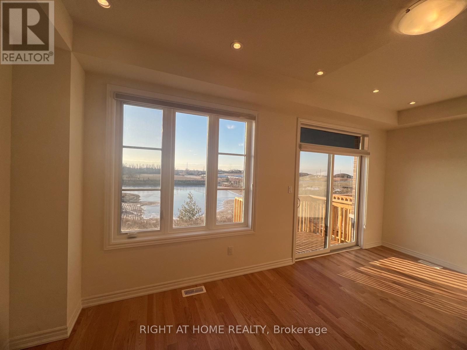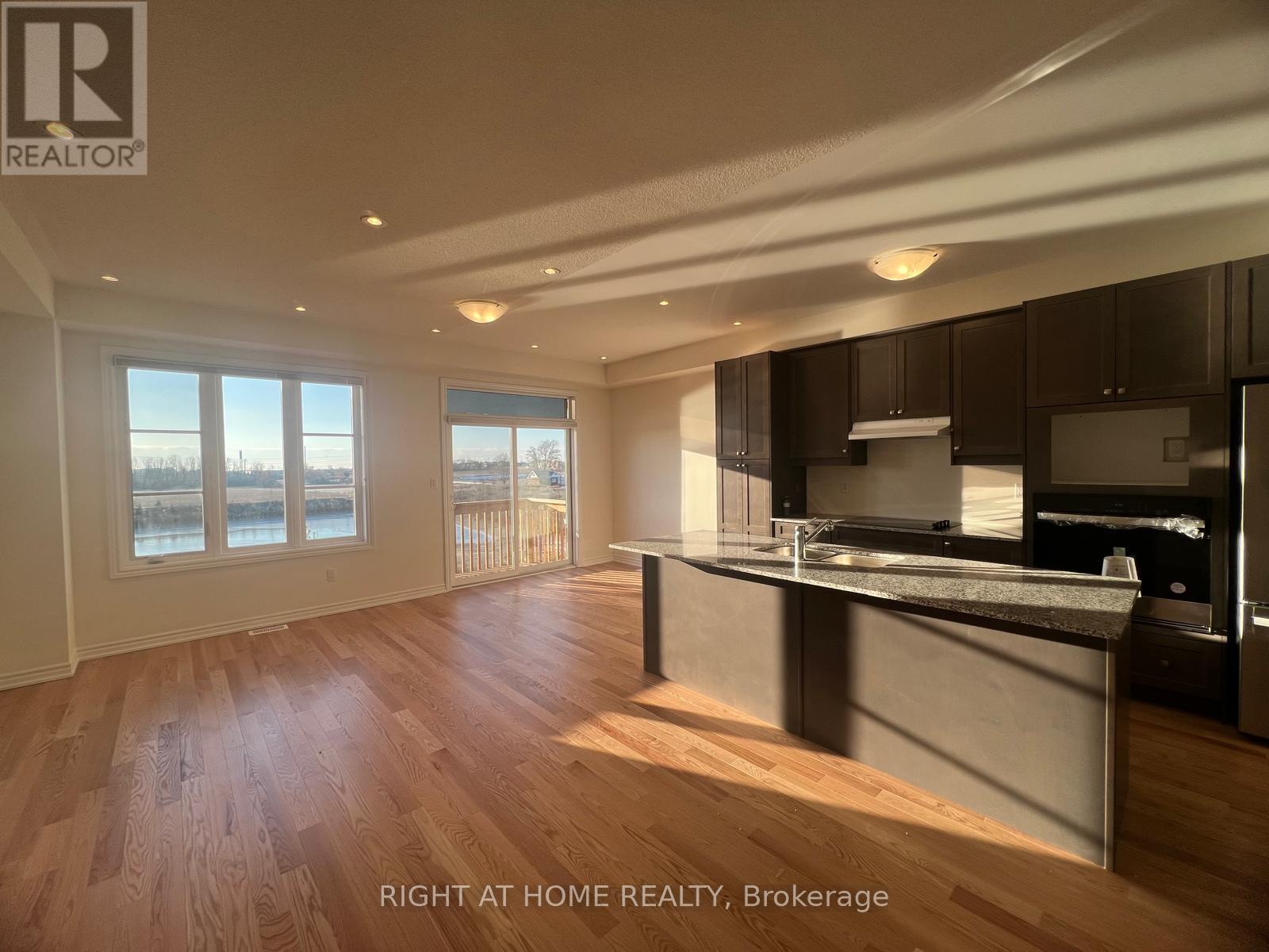 Welcome to an exceptional residence offering refined modern living in this pristine, one-year-new luxury townhouse. Thoughtfully designed with 3 generously sized bedrooms and 3 elegant bathrooms, this home provides both sophistication and comfort, including a finished walkout basement with broadloom-ideal for additional living or entertainment space.The main level showcases a foyer leading into a sleek, contemporary kitchen and an expansive open-concept living and dining area, complemented by a breakfast space. Sun-filled interiors highlight the home's upscale finishes, featuring rich hardwood flooring throughout the main floor and designer pot lighting that enhances the warm, inviting ambiance.The primary suite serves as a private sanctuary, complete with a spa-inspired five-piece ensuite and an impressive walk-in closet. Step outside to your serene backyard retreat, offering breathtaking pond views and complete privacy with no rear neighbours - a rare and luxurious setting.Nestled in a quiet, prestigious neighbourhood, this home blends tranquility with unbeatable convenience, just minutes from Highway 407 and major commuter routes, as well as Durham College and Ontario Tech University. (id:4555)