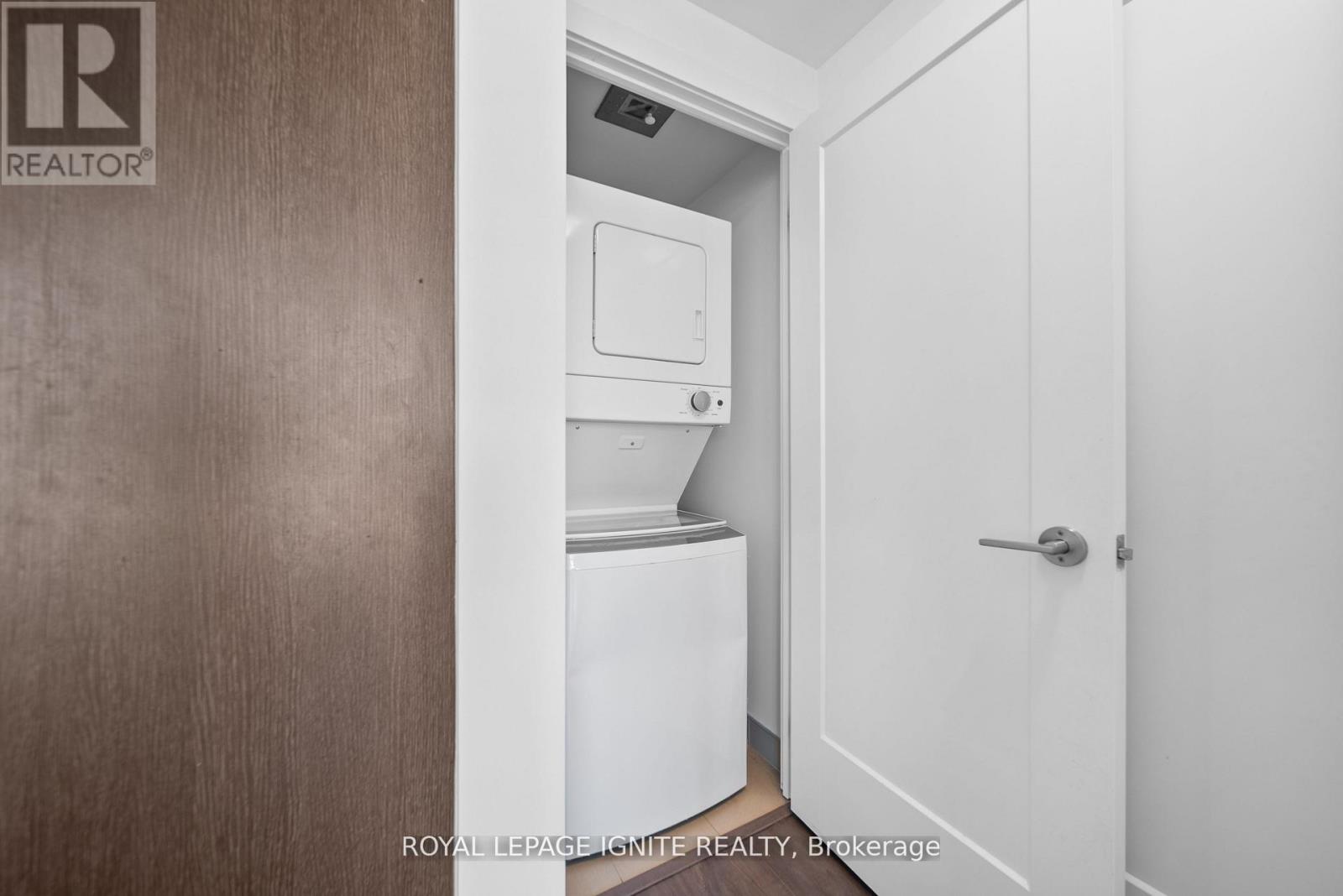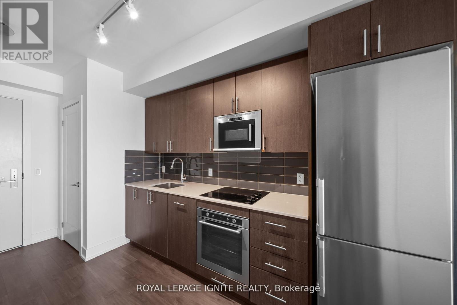 Welcome to sophisticated urban living with this beautifully designed 1-bedroom condo that boasts premium finishes and an efficient, modern aesthetic. This unit also comes with a convenient surface parking space. It's the perfect turnkey home for first-time buyers, young professionals, or investors looking for a high-demand rental. This condo has been freshly painted and offers an open-concept living space, perfect for both relaxing and entertaining. The primary bedroom features a stunning floor-to-ceiling window, filling the room with natural light. From the balcony, you can enjoy a breathtaking, unobstructed North-East view. Gourmet KITCHEN Highlights: The heart of this home is a contemporary kitchen built for style and function. Prepare to be impressed by: Sleek, contemporary design cabinetry providing ample storage. Elegant Quartz countertops offering durability and a pristine look. A stylish Porcelain tile backsplash for a refined finish. A practical single-bowl stainless steel undermount sink. The kitchen features a seamless, integrated appliance package perfect for a modern lifestyle: 24" Stainless Steel-Faced Fridge, 24" Cooktop and Wall Oven, 24" Combo Hood fan/Microwave, 18" Integrated Panelled Dishwasher (blends right into the cabinetry!).Spa-Like BATHROOM Highlights: Relax and unwind in the luxurious bathroom, featuring high-quality materials throughout: Porcelain 12" x 24" floor tile for a clean, modern foundation. Coordinating Porcelain wall tile for a cohesive and high-end feel. This condo is a must-see for anyone who values sleek design and premium finishes in a compact, desirable package. Don't miss your chance to step into this contemporary gem! (id:4555)