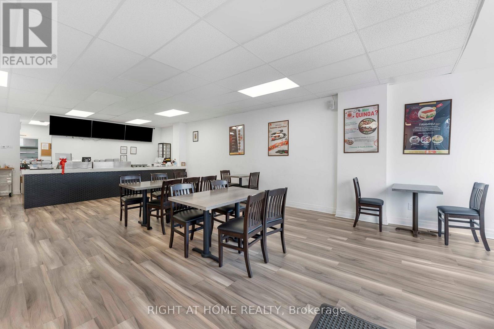 Be your own boss, Commercial zoning permits many uses, currently set up as a fully functional dine-in Restaurant with 30 seats capacity. Excellent Exposure, Great downtown location on busy high traffic Simcoe St. Close to businesses, Offices, Tribute Center, College campus and new developments. Bring your Skills and Creativity to enhance your business in newly decorated place in downtown Oshawa. All new Leasehold improvements done in 2022/2024: New 8' exhaust hood & fan, Fire Suppression system, Fryer, Walk-in-cooler, chest freezer, prep tables, three compartment sink with grease trap, basement fire-proofed. 2 new Washrooms-one accessible. New Furnace & HWT and much more. (id:4555)