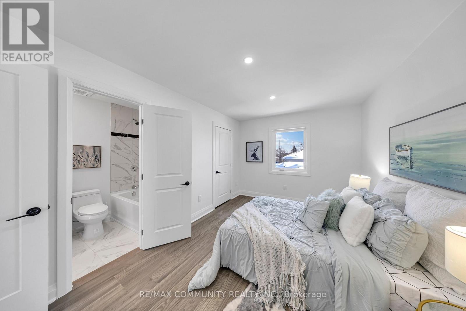 Welcome to this stunning custom built home in a quiet Oshawa neighbourhood. Featuring 4spacious bedrooms, each with its own ensuite, this home offers modern open concept living with hardwood floors, pot lights, and an elegant solid wood staircase. The luxury kitchen includes quartz countertops, a large island, and high end appliances. The primary bedroom boasts a walk-in closet and a 5-piece ensuite. Enjoy the electric fireplace, large front walkout balcony, high garage ceilings, reverse osmosis system, and full-size washer and dryer. The finished basement includes two kitchens and two separate entrances, ideal for rental income or extended family. Conveniently located close to downtown Oshawa, Ontario Tech University, Oshawa GO Station, shopping, parks, schools, Highway 401. (id:4555)