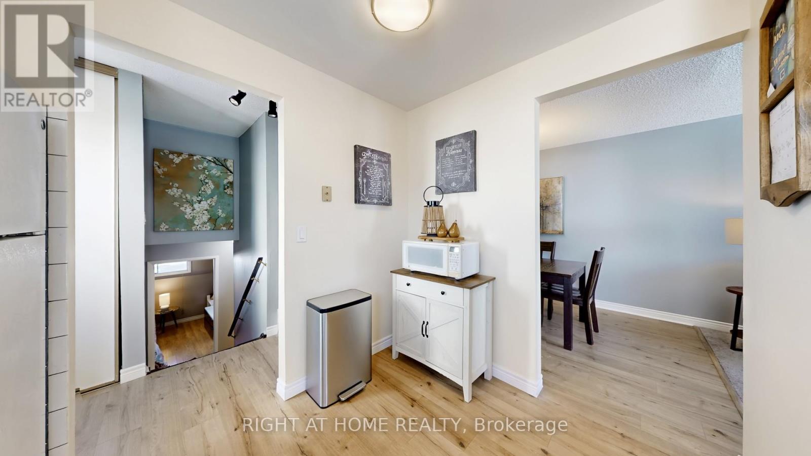 Affordable cozy starter home in a fantastic neighbourhood minutes to various recreation facilities, conservation areas, schools, shopping, 401 access & golf. This small but functional 1361 square foot 4 Level Backsplit features 3 Bdrms, 2 Full Baths with a main floor layout that could also easily be redesigned to be open concept if desired. Oversized Primary Bedroom with walk-in closet, lower level bedrooms with large windows, Small Room In Lower Level currently used as a storage room could be converted to be a little office nook. Side entrance to bbq deck and fully fenced backyard. Enjoy a beverage on the spacious covered west facing balcony while watching gorgeous sunsets or storms roll in. Large laundry + furnace room with crawl space for added storage for all the extras. New Furnace March'26, Newer Roof+Eavestrough+Fascia'21. Garage to house access. Bring your ideas and imagination to truly personalize this charming semi! (id:4555)