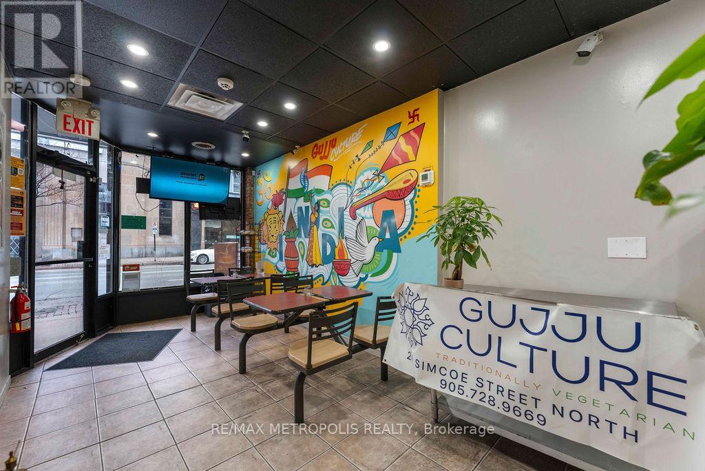 Don't miss this turnkey restaurant opportunity in a prime Oshawa location. Fully built-out and currently operating, this space comes with a complete kitchen and equipment, allowing you to step in and start immediately with your own concept. Excellent exposure on a busy street with steady foot traffic, surrounded by residential and commercial density. The flexible setup supports a wide range of cuisines-perfect for rebranding or continuing the existing operation. (id:4555)