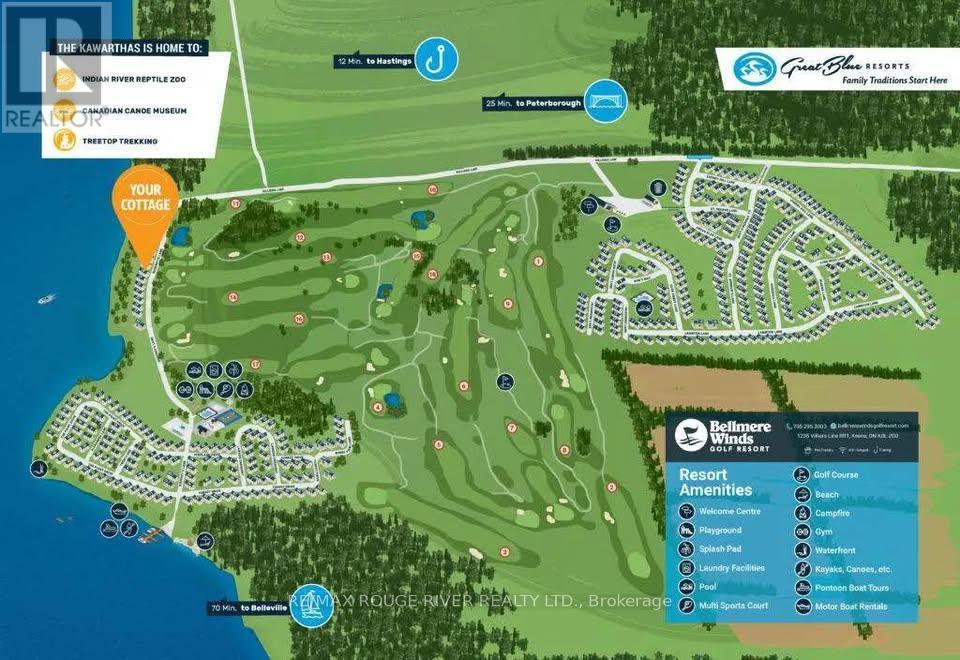 Experience pure relaxation at Bellmere Winds Golf Resort, stretching from the north shore of Rice Lake to the furthest sand bunker and just minutes from the vibrant city of Peterborough. This resort offers the perfect escape located in Phase One, 25 Godfrey's Lane is a tree-lined, sought-after waterfront premium site backing onto the peaceful 11th, 12th & 13th greens. Offering a spacious living/family room, full eat-in kitchen with breakfast bar, primary bedroom with queen bed & walk-in closet, second bedroom features bunkbeds with 1 double & 1 single, 1 pull-out couch sleeps two, 4 pc. bath and walkout to a large pressure-treated deck with hard top gazebo! The cottage provides a private, scenic, luxurious escape with direct access to Rice Lake. Just steps from the beach, docks, water sports, gym and sports courts, blending tranquil waterfront living with unbeatable proximity to amenities. It's a perfect destination for both golf lovers and families; you're never too young to enjoy the great outdoors! Offering several fantastic family-friendly activities, including 2 saltwater swimming pools, a splash pad, a beach, exciting resort activities and unmatched firework displays. Featuring 18 challenging yet approachable holes, this course caters to all skill levels, with tee blocks set for both novices and scratch golfers. The front nine evokes the feel of a Scottish links course, with breathtaking vistas of Rice Lake reminiscent of the Bonnie Banks of Loch Lomond. The back nine is more forgiving, highlighted by a stunning elevated 10th hole, while the 11th and 12th play along the lakeside resort with stunning lake views! (id:4555)