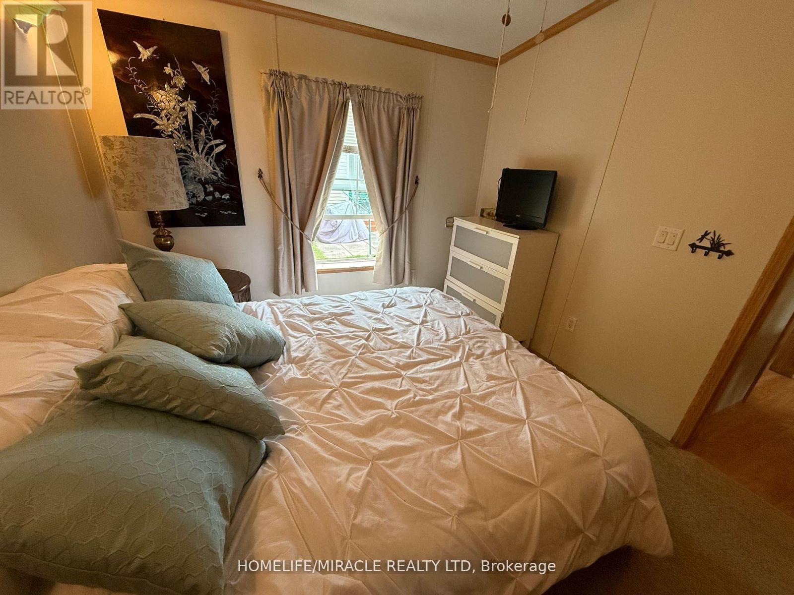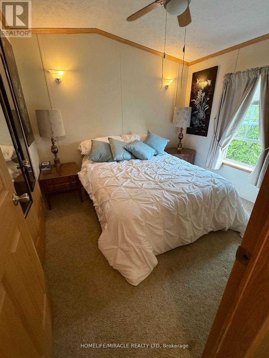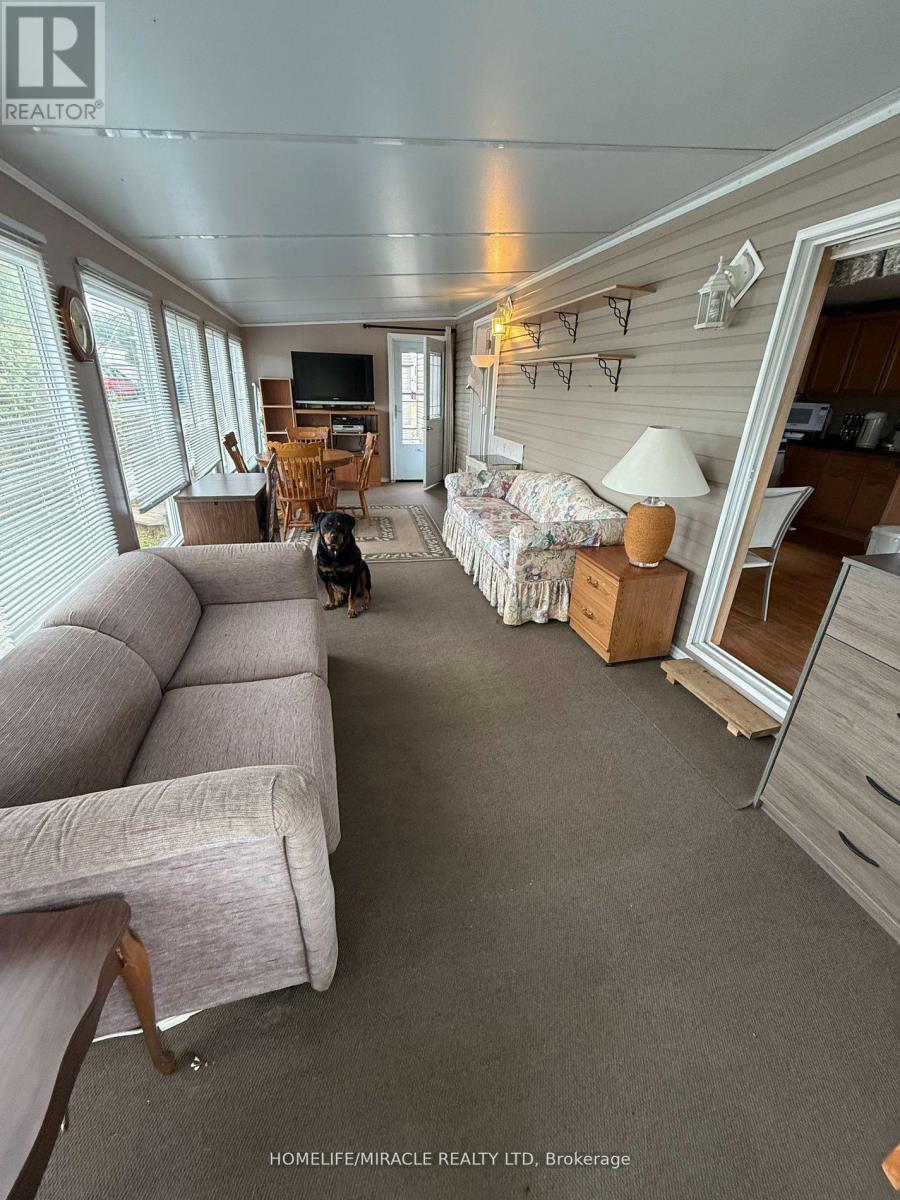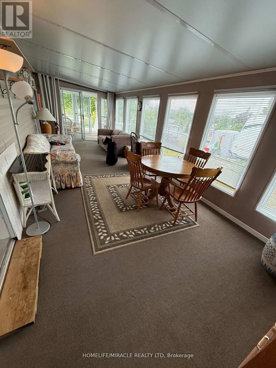 Welcome to this stunning modular home in the Shady Acres Resort area on Rice Lake in Peterborough. You can call it home and enjoy cottage-like living. This 2005 Champion Titanmodel home features spacious living with solid bottom, enclosed Sunroom and Florida room, lotsof huge windows allowing ample sunlight and an unobstructed view of the lake. It alsocomprises of one bedroom, one washroom, open concept kitchen, dinning, and living room, openfront and back porch and side deck and a garden shed/workshop for all your tools and toys. Roof and Skirt were upgraded in 2024. Shady Acres community offers gated security entrance, two swimming pools, inground trampoline, kids programs. The season is from May to October, fees are $5,277.10. *2025 park fees have been paid.* This lovely retreat can hold 3 pull out sofas and a queen size bed that can accommodate up to eight (8)adults very cmfortably. The master bedroom has aluxurious queen size bed. The spacious living room hasa queen-sized pull-outcouch, the massive Florida room offers two additional pull-out couches. All thefurniture, appliances, TV's, and kitchen start-up (utensils, pots, pans) are included. This property has everything you need to host all your family and friends. It's time to start making those memories that willlast a lifetime. (id:4555)
