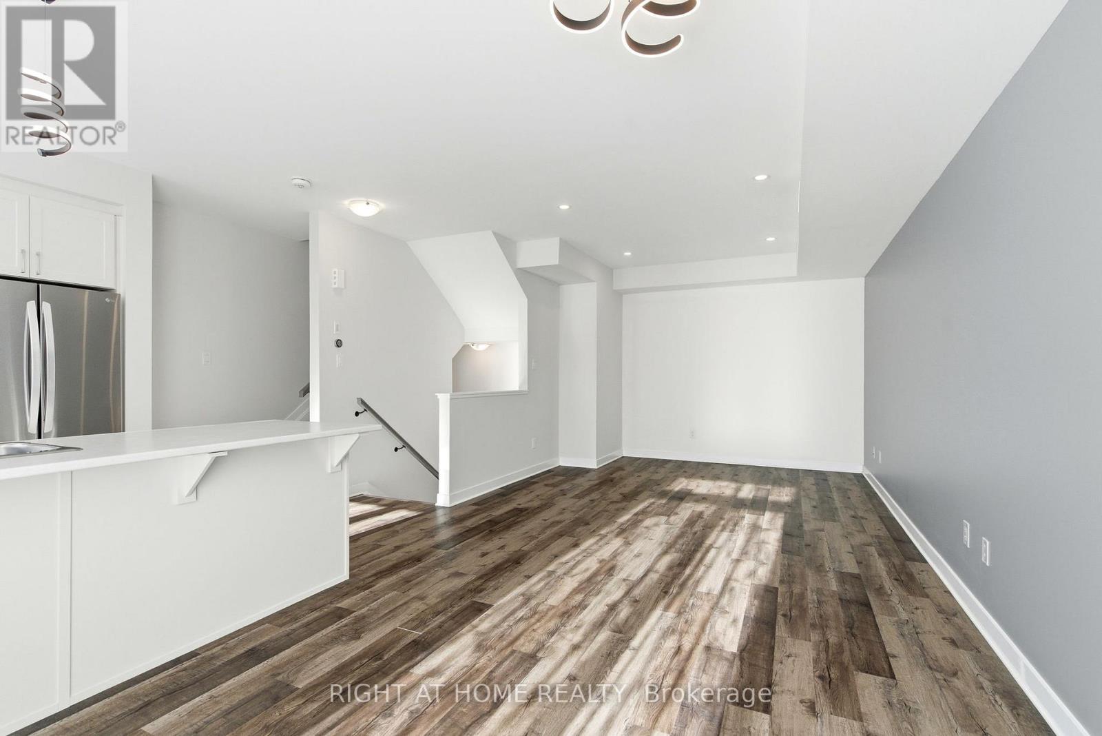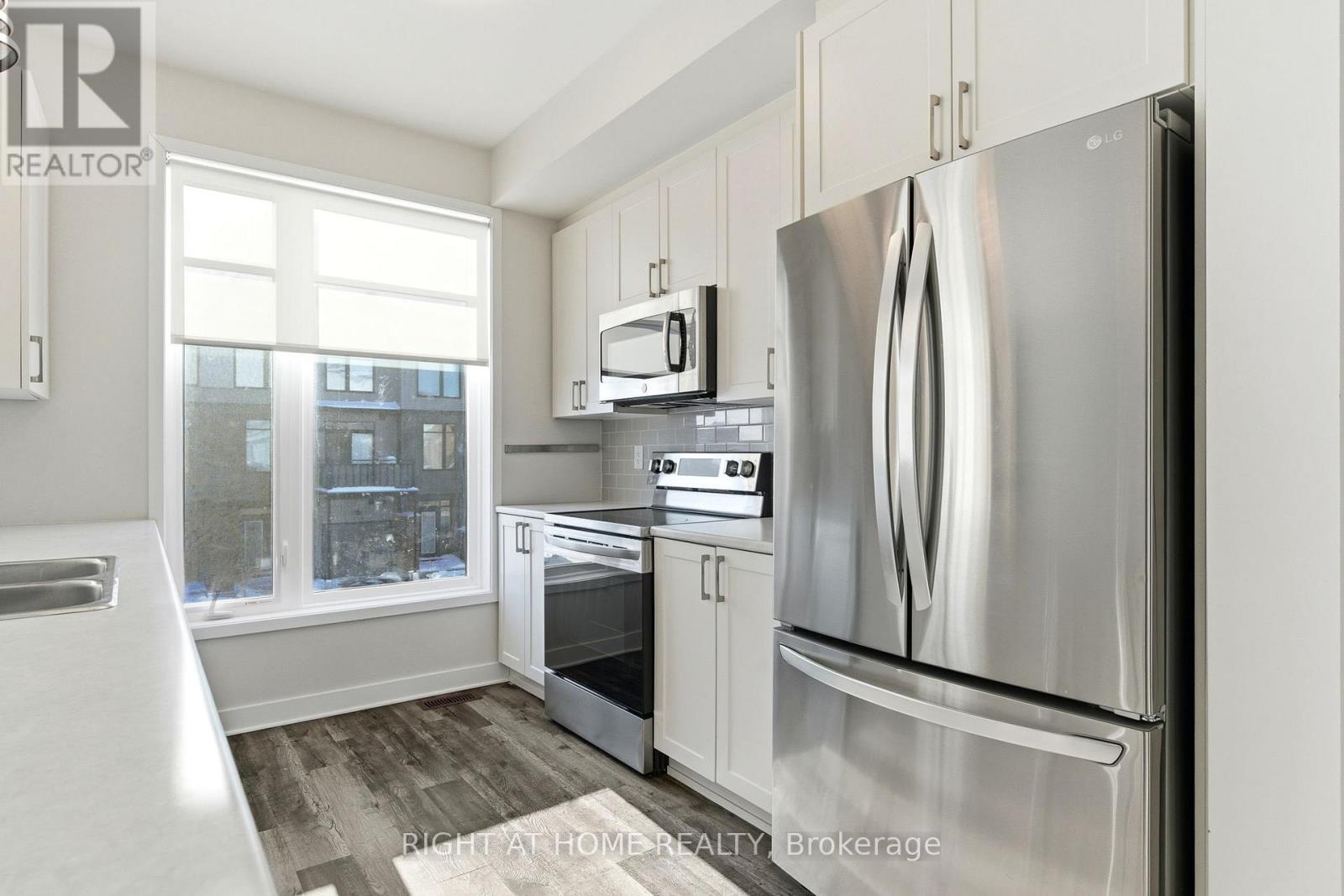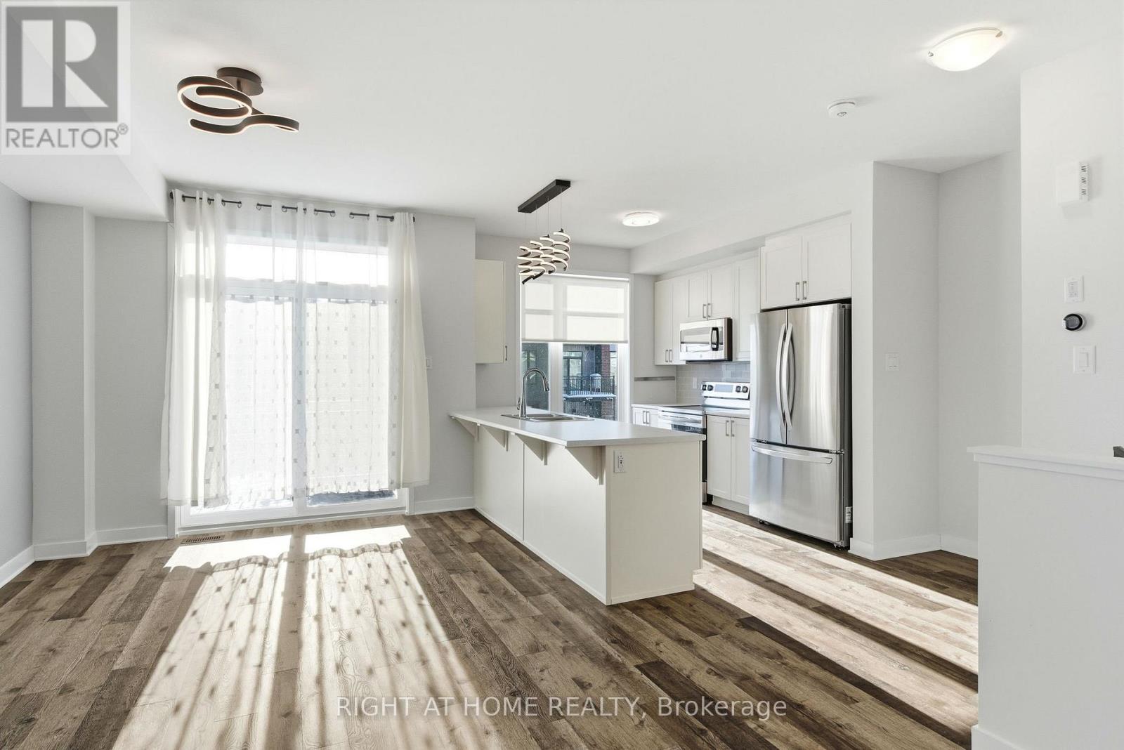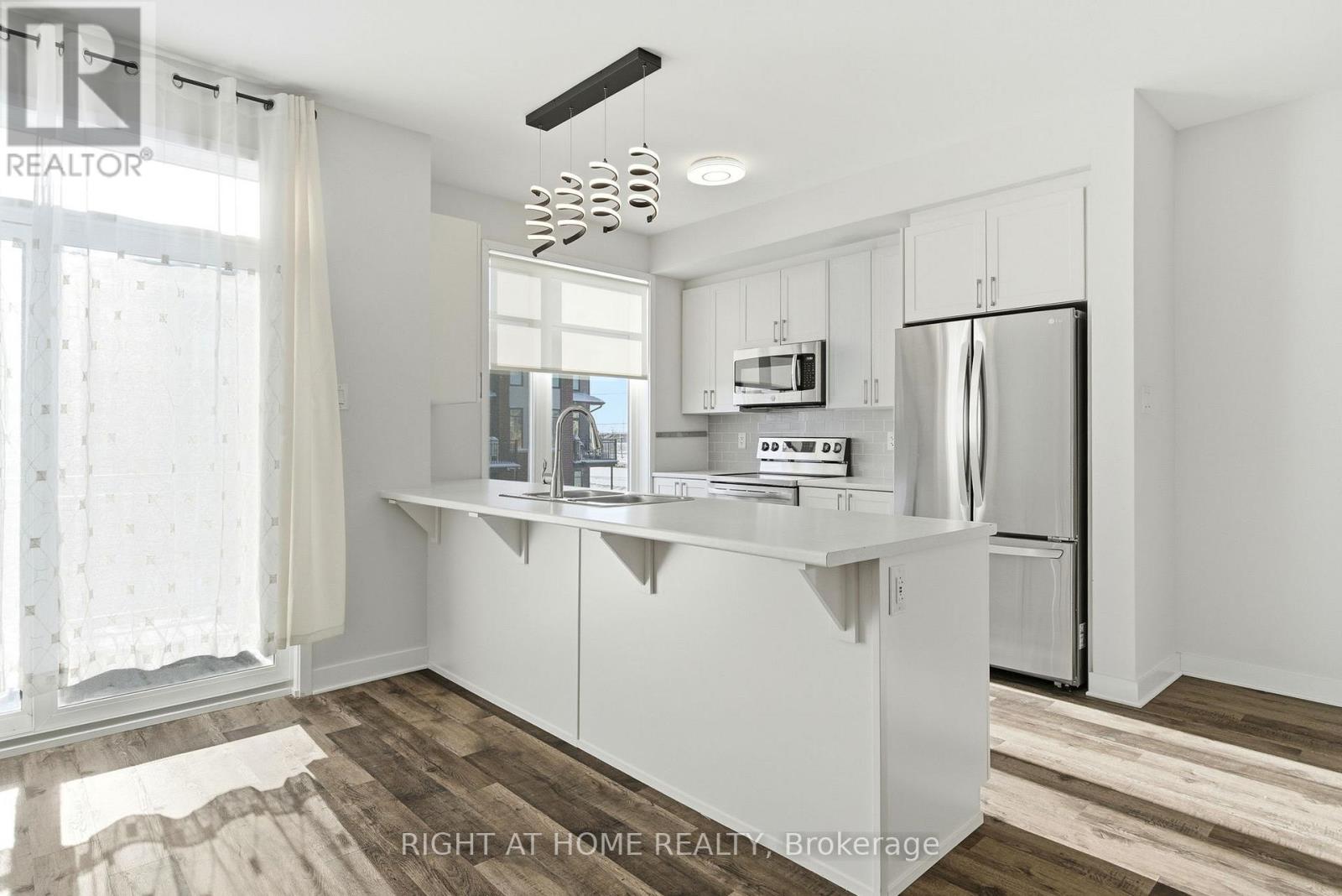 Step into style at this meticulously maintained 2-bedroom, 1.5-bathroom executive townhouse (built 2021) offers the perfect "turn-key" lifestyle for professionals, first-time buyers, or investors. The bright, open-concept main level features upgraded flooring and large windows that flood the space with natural light. The chef-inspired kitchen boasts stainless steel appliances, modern cabinetry, and a convenient breakfast bar-perfect for morning coffee or evening entertaining. Transition seamlessly to your private balcony to enjoy outdoor grilling or a quiet evening. The upper level offers two spacious bedrooms with a large walk-in closet in the Primary bedroom, a shared 3 piece bathroom and large windows that let in the southern light all day. Added convenience comes with bedroom-level laundry! This home stands out from the rest with thoughtful owner upgrades throughout, including designer light fixtures and high-end finishes. Located in the sought-after Emerald Meadows/Trailwest community, you are minutes away from the Canadian Tire Centre, Tanger Outlets, transit, and top-tier parks. With an attached garage and a location that balances quiet living with urban proximity, this gem is a must-see. (id:4555)