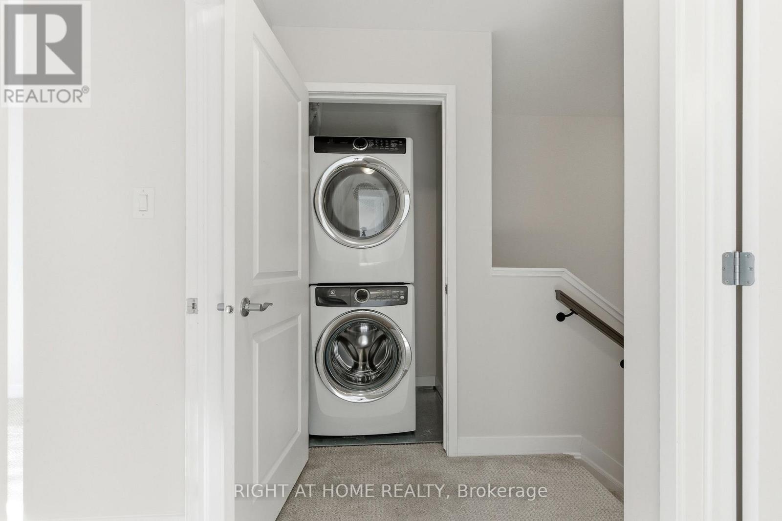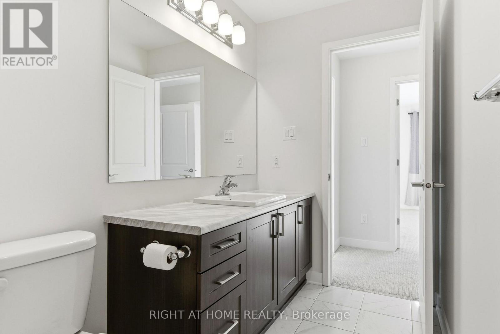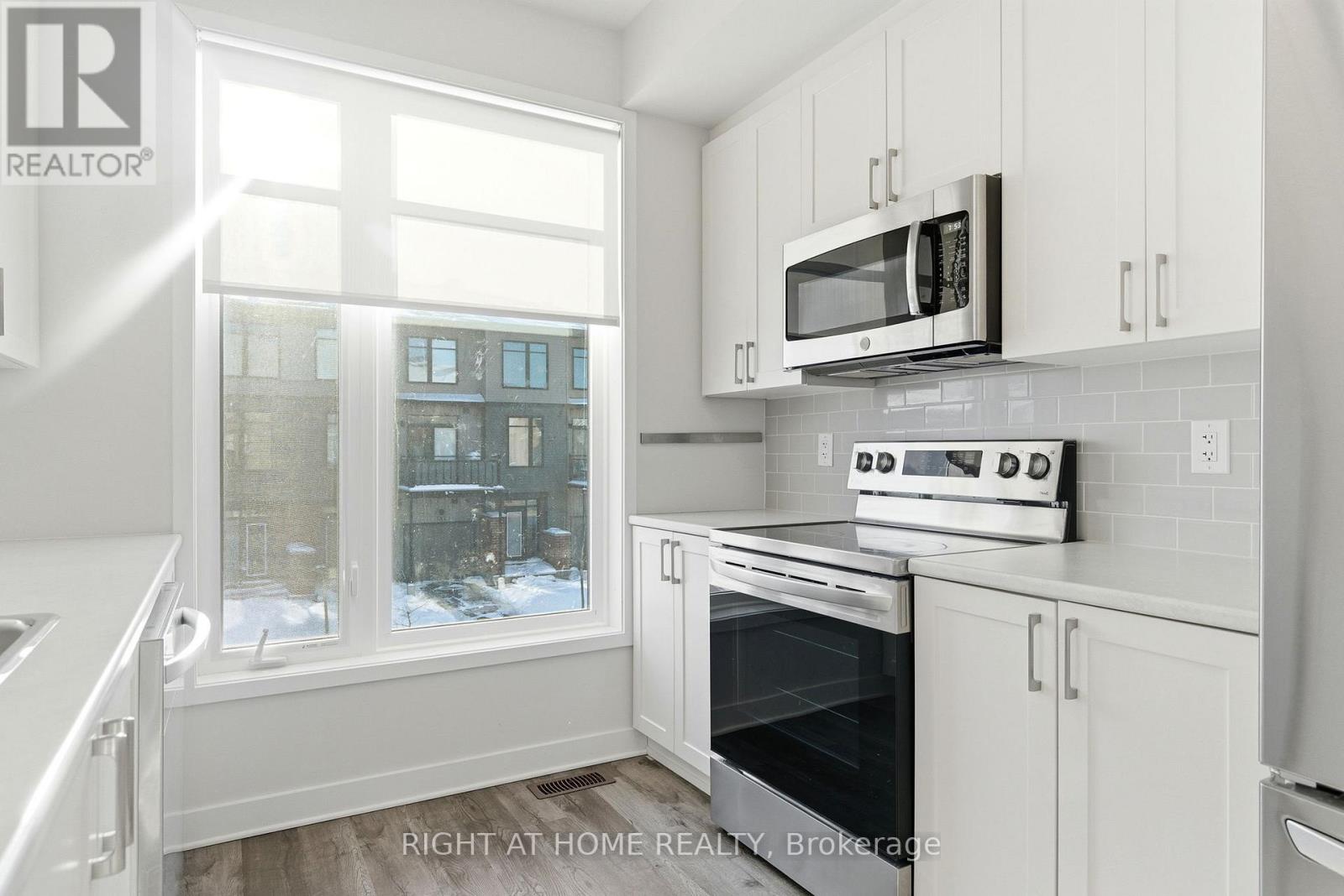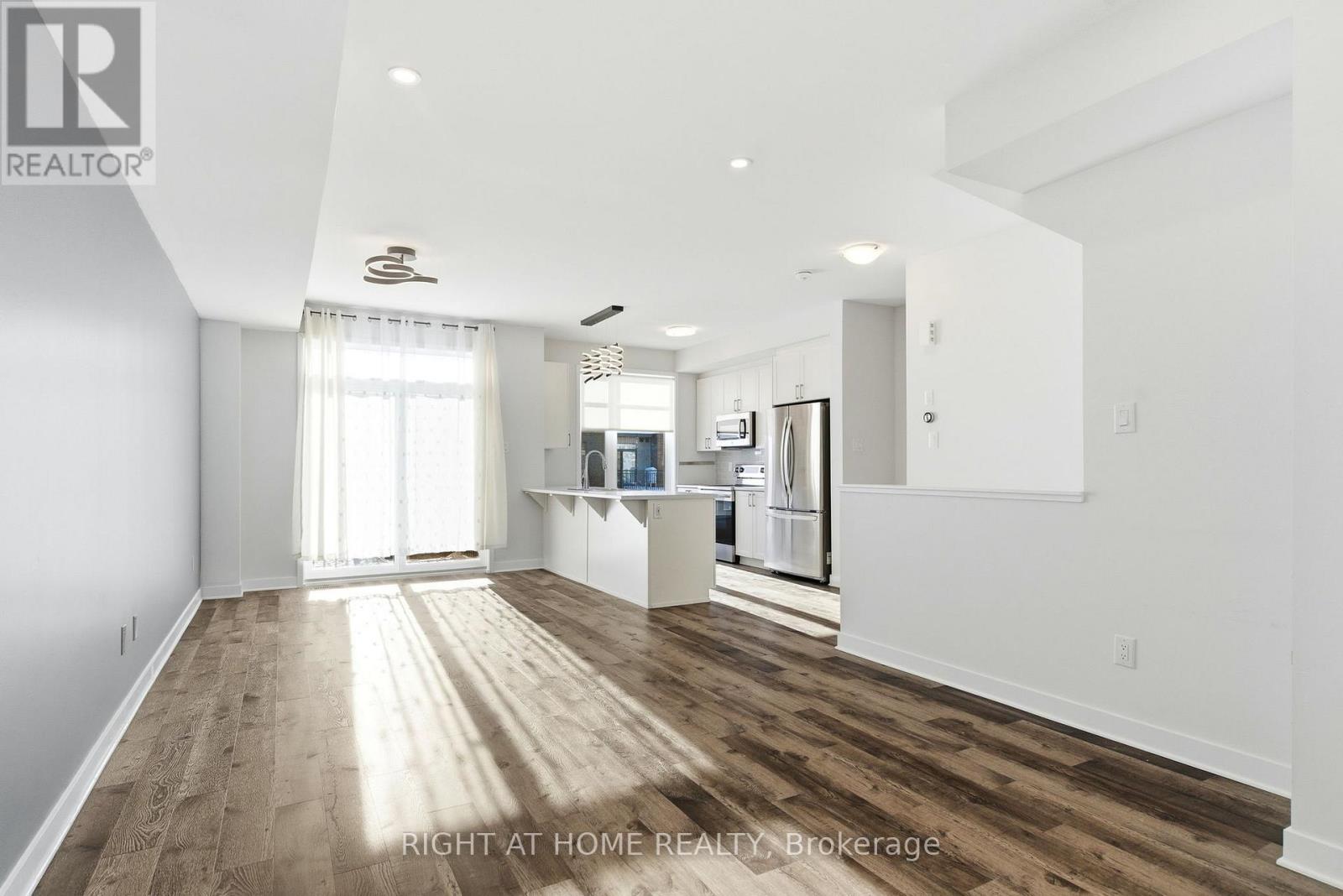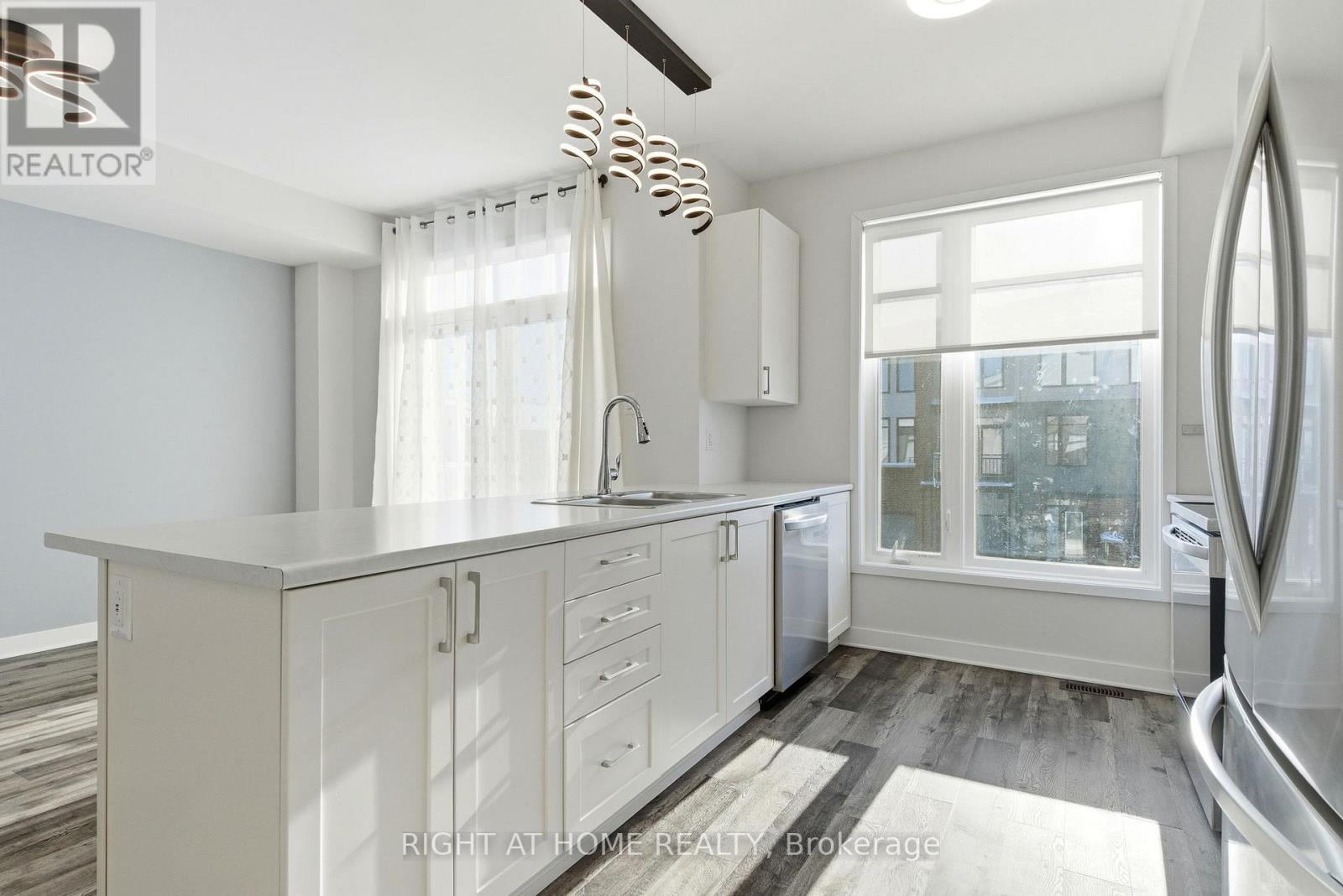 Step into style at this meticulously maintained 2-bedroom, 1.5-bathroom executive townhouse (built 2021) offers the perfect "turn-key" lifestyle for professionals, first-time buyers, or investors. The bright, open-concept main level features upgraded flooring and large windows that flood the space with natural light. The chef-inspired kitchen boasts stainless steel appliances, modern cabinetry, and a convenient breakfast bar-perfect for morning coffee or evening entertaining. Transition seamlessly to your private balcony to enjoy outdoor grilling or a quiet evening. The upper level offers two spacious bedrooms with a large walk-in closet in the Primary bedroom, a shared 3 piece bathroom and large windows that let in the southern light all day. Added convenience comes with bedroom-level laundry! This home stands out from the rest with thoughtful owner upgrades throughout, including designer light fixtures and high-end finishes. Located in the sought-after Emerald Meadows/Trailwest community, you are minutes away from the Canadian Tire Centre, Tanger Outlets, transit, and top-tier parks. With an attached garage and a location that balances quiet living with urban proximity, this gem is a must-see. (id:4555)