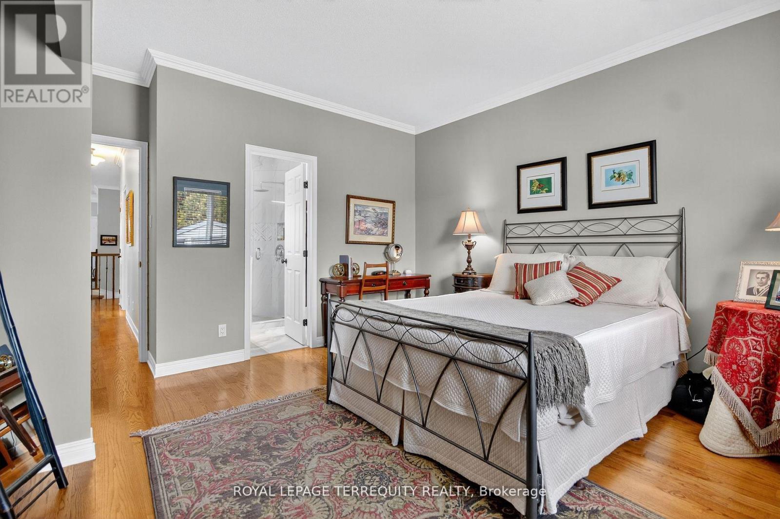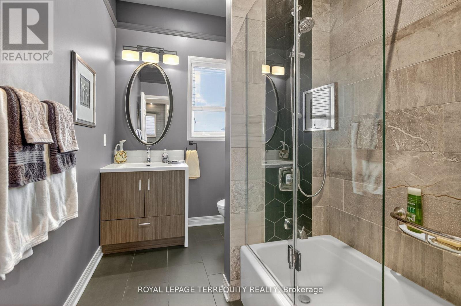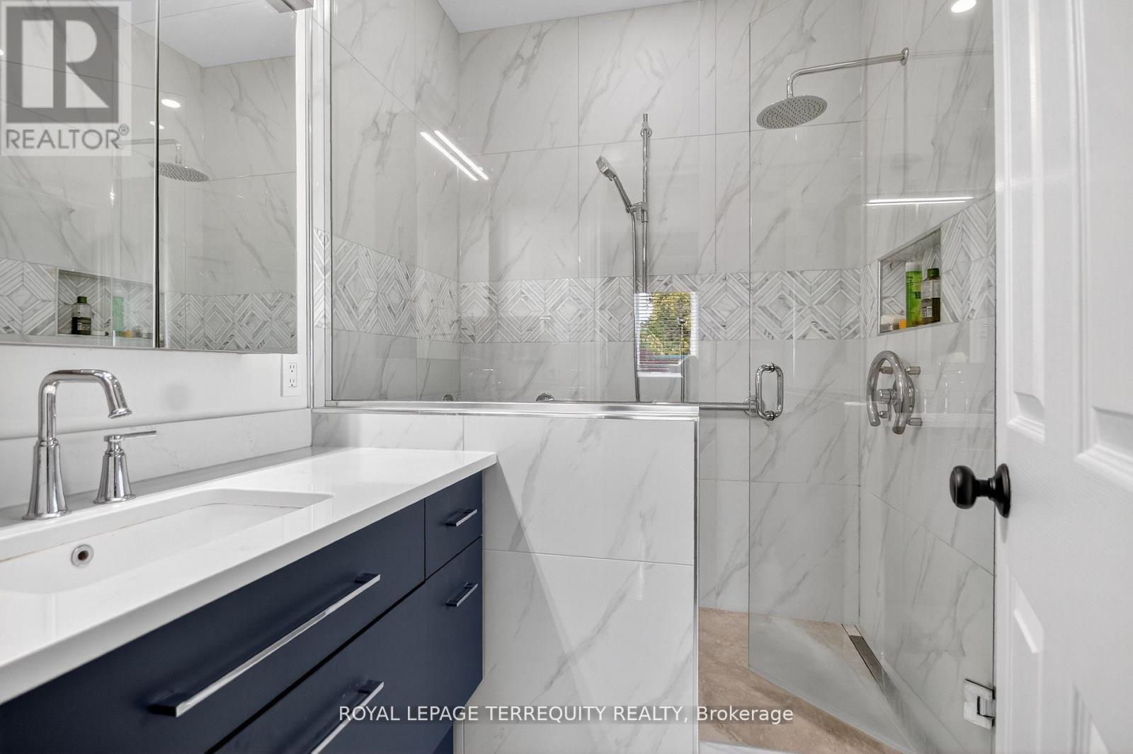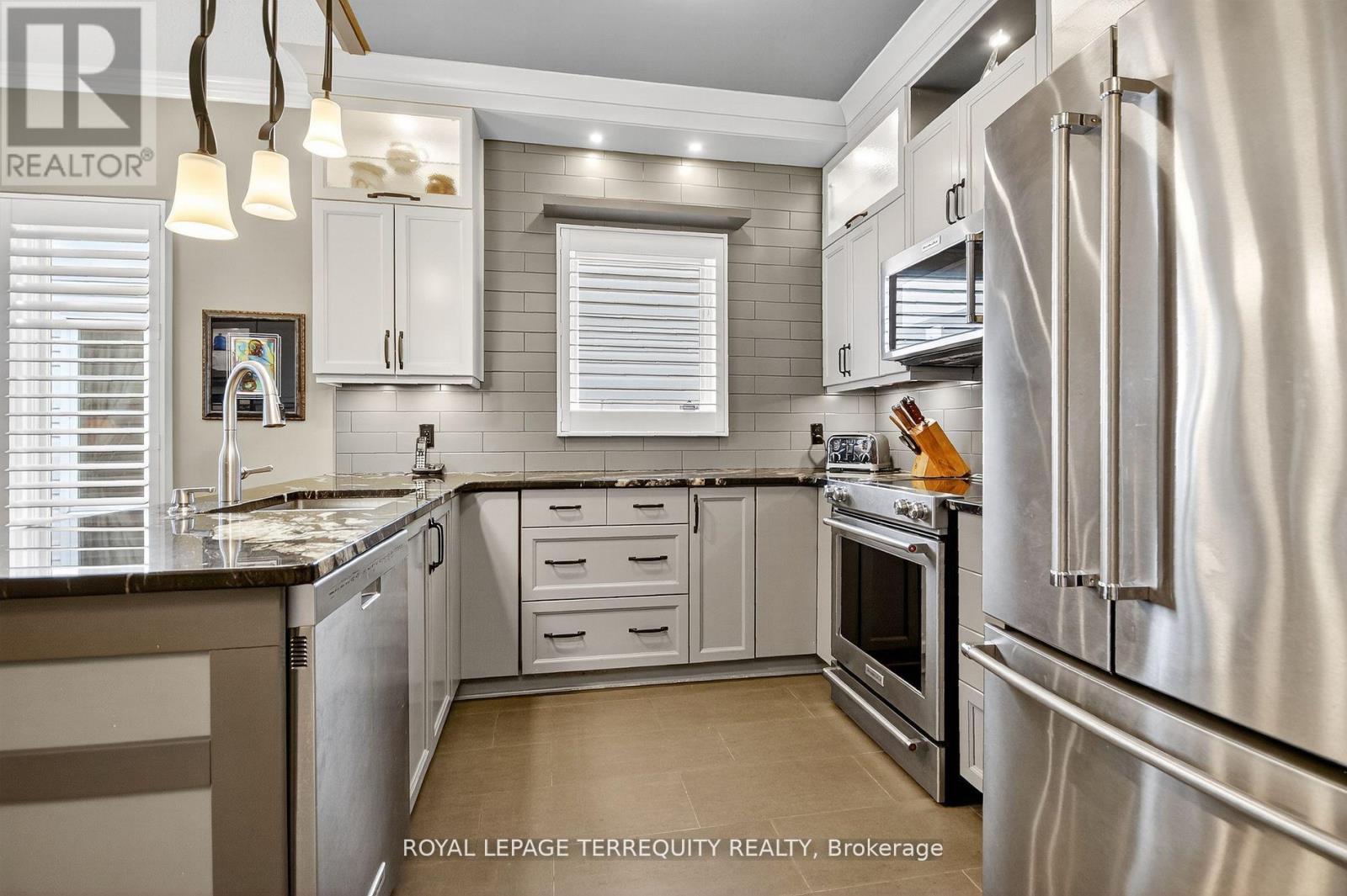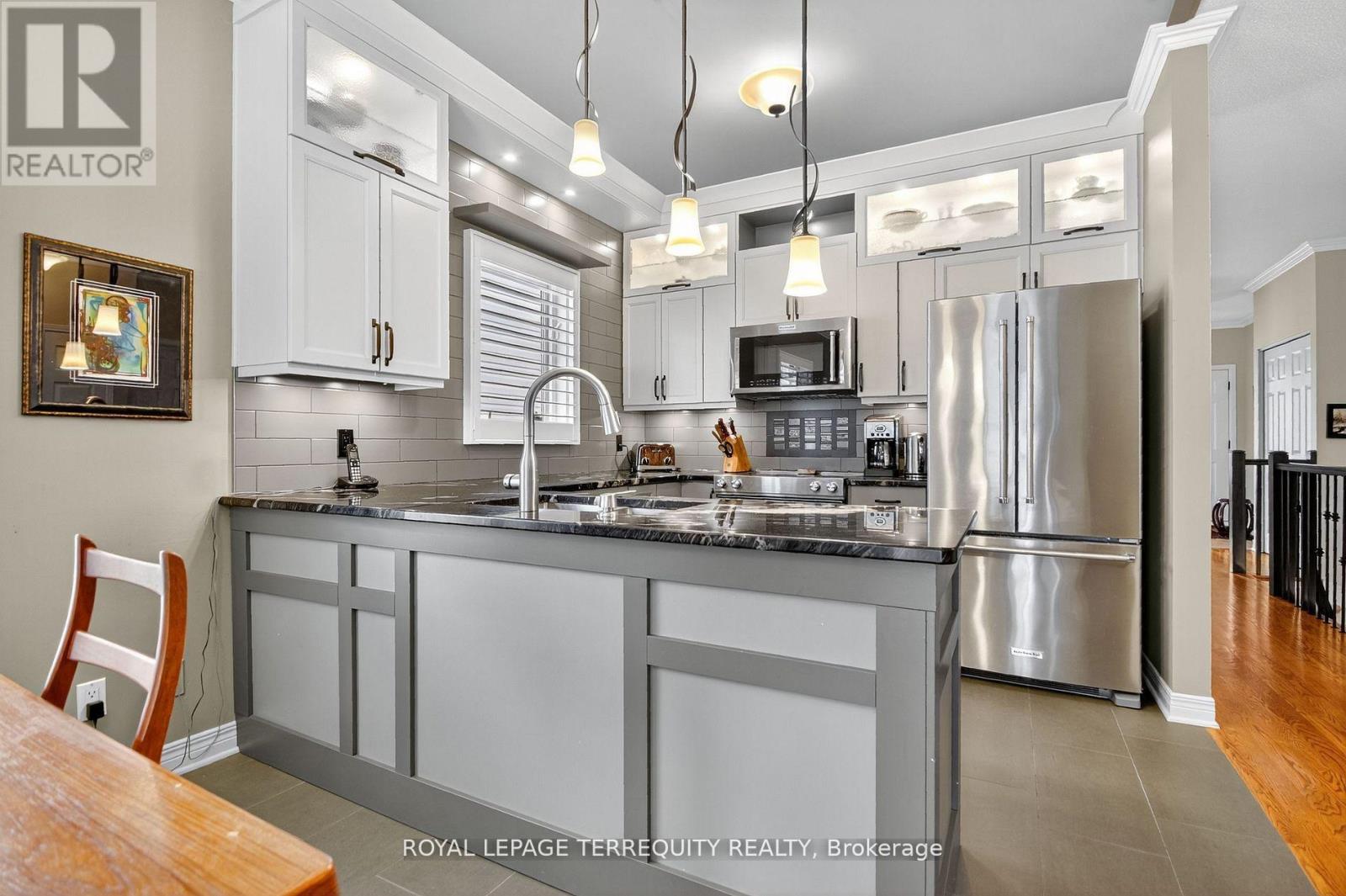 Welcome to 96 Allanford Drive - a bright, beautifully renovated bungalow in the heart of the sought-after Hunt Club area. This stunning home combines high-end finishes with thoughtful design, featuring 9-foot ceilings, crown molding, and hardwood floors throughout.Step inside to discover a warm and inviting front living room, accented by two sets of French doors, a vaulted ceiling, and large shuttered windows that flood the space with natural light. The spacious dining and living area provides an ideal setting for hosting large gatherings.The completely redesigned kitchen is a chef's dream, showcasing granite countertops, premium KitchenAid appliances, custom cabinetry, and elegant lighting highlighted by pot light accents. A sizeable dinette offers casual dining space, complete with built-in cabinetry, matching granite counters, and a tile mosaic backsplash.The bright family room is perfect for relaxing or entertaining, featuring floor-to-ceiling windows and a walkout to the new composite wood deck, overlooking the beautifully landscaped backyard. A custom wood mantle, crafted from a variety of wood species, adds a striking focal point to the space.The main bathroom has been tastefully updated with premium finishes, including a vanity with a waterfall-edge countertop.Retreat to the spacious primary bedroom, complete with a large window overlooking the backyard and a spa-inspired ensuite offering a walk-in shower, heated floors, and enhanced lighting for a luxurious experience.Move-in ready with premium finishes throughout. A must-see home in one of Hunt Club's most desirable areas! (id:4555)