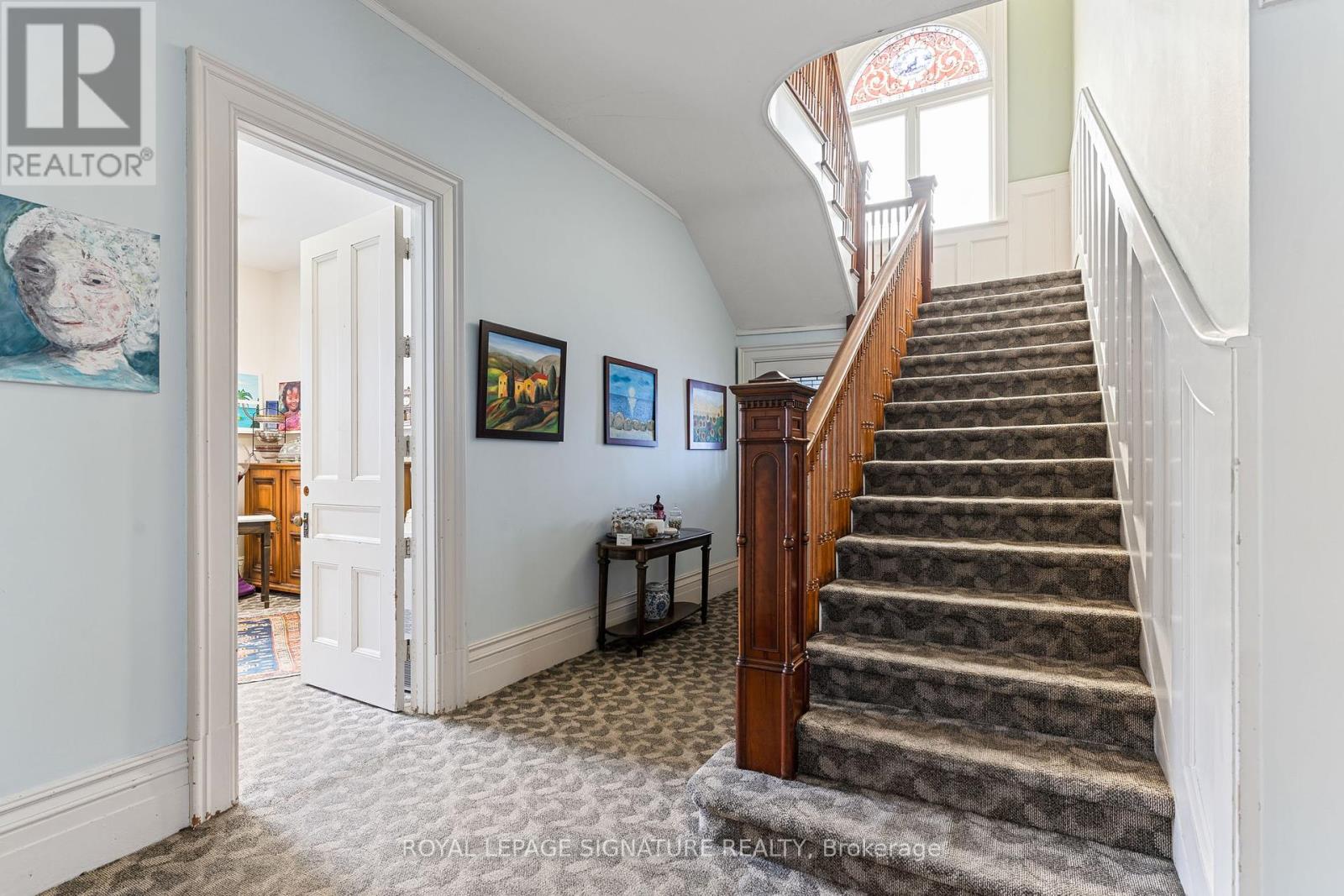 This remarkable 1893 Queen Anne Revival offers a rare blend of architectural beauty and proven financial success. The estate operates as a licensed bed & breakfast, including a fully renovated carriage house featuring two independent rental units. The two buildings are separate structures, providing flexible living arrangements and income across the property. Immediate, transferrable revenue from day one, is a privilege reserved for the discerning owner.Inside the main home, period details are showcased through original stained glass, intricate millwork, a stately newel post, and a signature tower with sweeping river views. The thoughtfully designed spaces cater to both leisure and business guests, with a welcoming library perfect for quiet work, sunlit living and dining rooms ideal for meetings or gatherings, a butlers pantry, large kitchen, and convenient powder room. Upstairs, four oversized bedrooms await, including a spacious primary suite, two generously sized bathrooms, thoughtfully designed to serve both family and guests with ease. Full upper story and roof deck available for conversion. Steeped in history, this home was built for to Dr. W. George Dow, back in 1893, and has since served as a medical office, insurance business, and community gathering place. As a timeless landmark, it stands in the very heart of Owen Sounds vibrant hub, offering the unique ability to live and work under one roof with a strong, proven, lucrative income stream already in place. (id:4555)