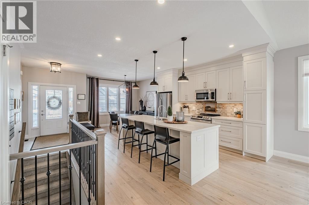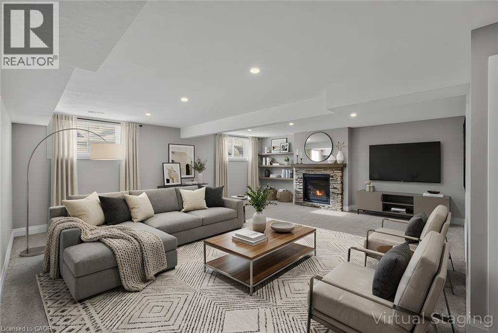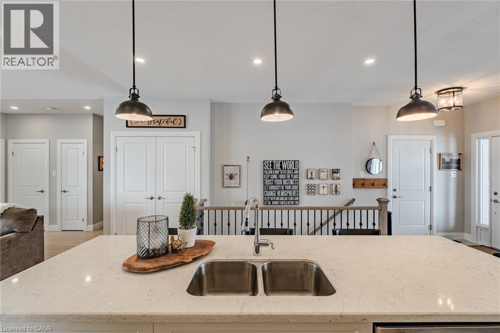 Welcome to this stunning custom-built, all-brick Dubecki Home located in Paris Ontario, surrounded by walking trails and just minutes to the Brant Sports Complex. Conveniently close to everyday shopping, walk-in clinics, local pubs, and only a short drive to historic downtown Paris, this location offers both lifestyle and convenience. Thoughtfully designed with quality craftsmanship and upscale finishes throughout, this home offers exceptional comfort, style, and functionality. The bright and inviting main floor features a vaulted ceiling with pot lights, engineered hardwood flooring, and a cozy fireplace that anchors the living space. The chef-inspired kitchen is a true showstopper, complete with quartz countertops, soft-close cabinetry, stainless steel appliances, and an oversized quartz island offering storage, a sink, dishwasher, and seating—perfect for entertaining. This home offers four spacious bedrooms, two located on the main floor, including a beautiful primary suite featuring a walk-in closet and a private ensuite bathroom. In total, there are three full bathrooms—two on the main level and one in the basement—all finished with elegant quartz countertops. The fully finished basement is warm and welcoming with 9-foot ceilings, plush carpet for added coziness, a gas fireplace with a stone surround, and large egress windows that flood the space with natural light. This level also includes two additional bedrooms, a full bathroom, a beautifully designed laundry room, and a large utility area providing excellent storage space. Additional highlights include sliding patio doors with California-style shutters, a covered back deck, covered front porch, direct entry from the foyer to the garage, and abundant storage throughout. With high-end finishes at every turn, this home is truly move-in ready. An exceptional opportunity to own a custom home in one of Paris’s most sought-after communities—this property must be seen to be fully appreciated. (id:4555)
