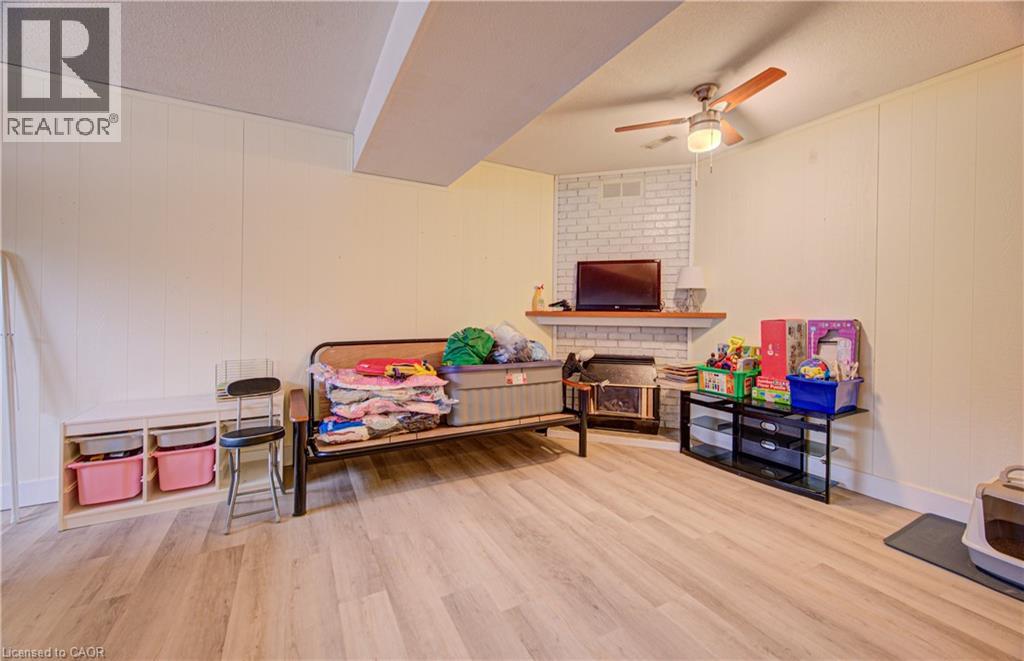 RAISED BUNGALOW WITH LARGE BACKYARD. Welcome to 18 Gilston Parkway in the charming town of Paris! This beautifully maintained raised bungalow offers a perfect blend of comfort, functionality and outdoor living. The main floor features an open-concept layout, seamlessly connecting the living and dining areas, a large bright kitchen, 3 spacious bedrooms and a shared 4-piece bathroom which completes this level. Downstairs, the fully finished basement provides exceptional additional living space, including a large recreation room, 3-piece bathroom, a 4th bedroom, laundry room and ample storage throughout. A separate entrance from the basement to the backyard adds flexibility and potential. Step outside to enjoy the large, fully fenced backyard surrounded by mature trees for added privacy. This outdoor retreat features a fire pit, a shed and a covered deck with stairs leading down to a patio—perfect for entertaining or unwinding. Parking is a breeze with a single-car garage and a double-wide driveway accommodating up to 5 additional vehicles, for a total of 5 parking spaces. Ideally located close to parks, the Grand River, greenspace, Highway 403, shopping, and everyday amenities. (id:4555)