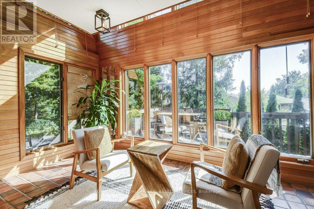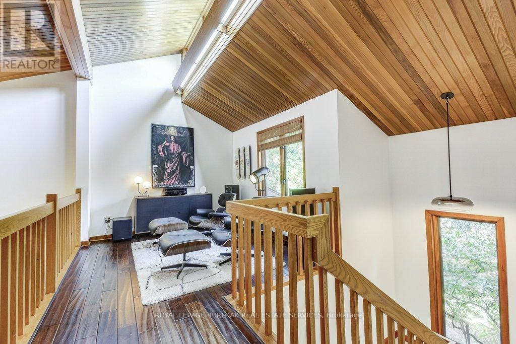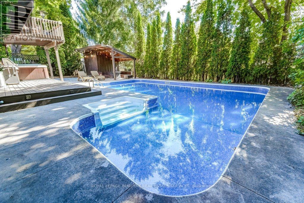 Welcome to this stunning, fully renovated home in the desirable community of Fonthill. Offering over 4,100 sqft of finished living space, this immaculate residence seamlessly combines luxury & modern design, creating a perfect sanctuary for those seeking elegance & comfort. The heart of the home is the professionally designed kitchen featuring quartz countertops with a striking waterfall island, custom cabinetry, & high-end Fischer & Paykel appliances all arranged for the discerning chef. Adjacent to the kitchen, you'll find a spacious laundry suite w/a 2pce powder room, Brazilian slate floors & convenient access to the 2 car garage. The living areas exude warmth &sophistication, highlighted by a double-sided wood-burning fireplace that creates a cozy ambiance. Vaulted ceilings & exposed brick accents in the living room add rustic charm, complemented by Venetian plaster walls & rich oak floors that run throughout the home. A sunroom with skylights opens to the dining area & seamlessly connects to a large deck overlooking the backyard oasis. Upstairs, discover a charming music loft overlooking the LR below. The primary suite is a luxurious retreat w/vaulted ceilings, a private sitting loft & a spa-inspired bathroom with a double vanity, under-cabinet lighting, an egg-shaped soaking tub, & a separate shower. A spacious custom W/I closet completes this private sanctuary. The basement features a zen garden leading to a wellness area with a fully equipped gym & a 5-piece spa bathroom, including a cedar sauna for tranquil escapes. Adjacent, you'll find the man cave bar area with 2 TVs, a live-edge red oak bar, beer tap & W/O access to the backyard. The rec rm boasts a custom built wall unit, built-in TV, & a large electric fireplace, perfect for relaxation & entertaining. The backyard is a private retreat, surrounded by professionally landscaped gardens, a heated pool, hot tub, & pool house. Multi-level decks & a stone patio create the ideal setting for outdoor gatherings (id:4555)