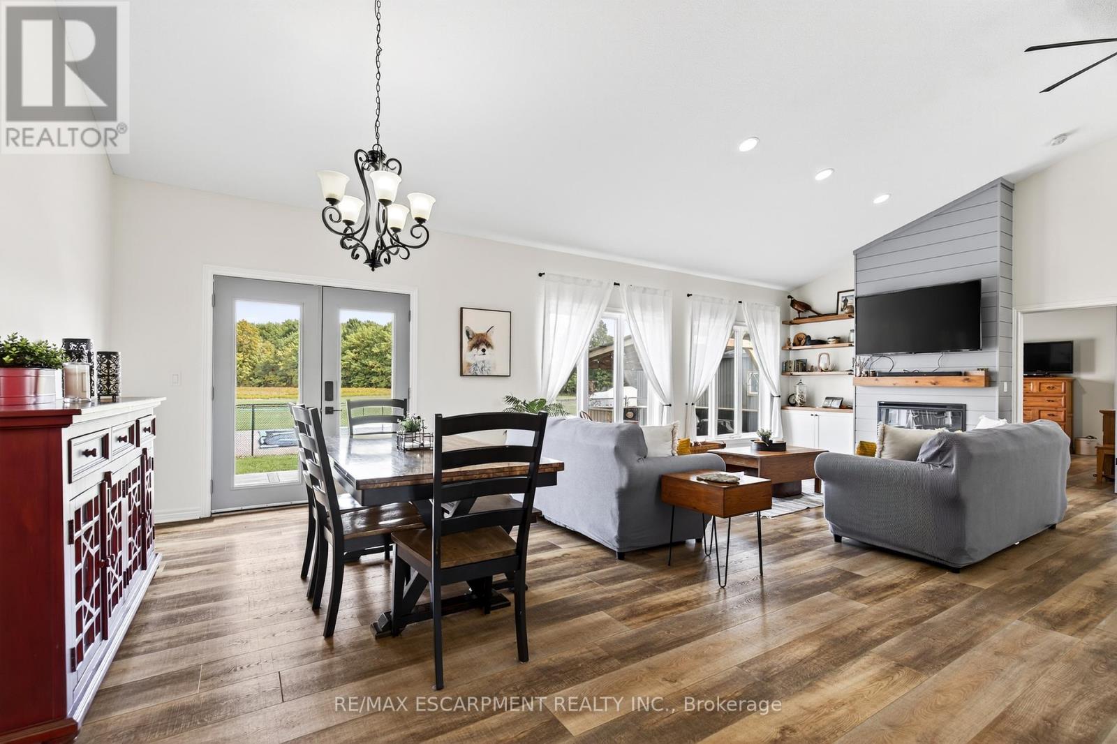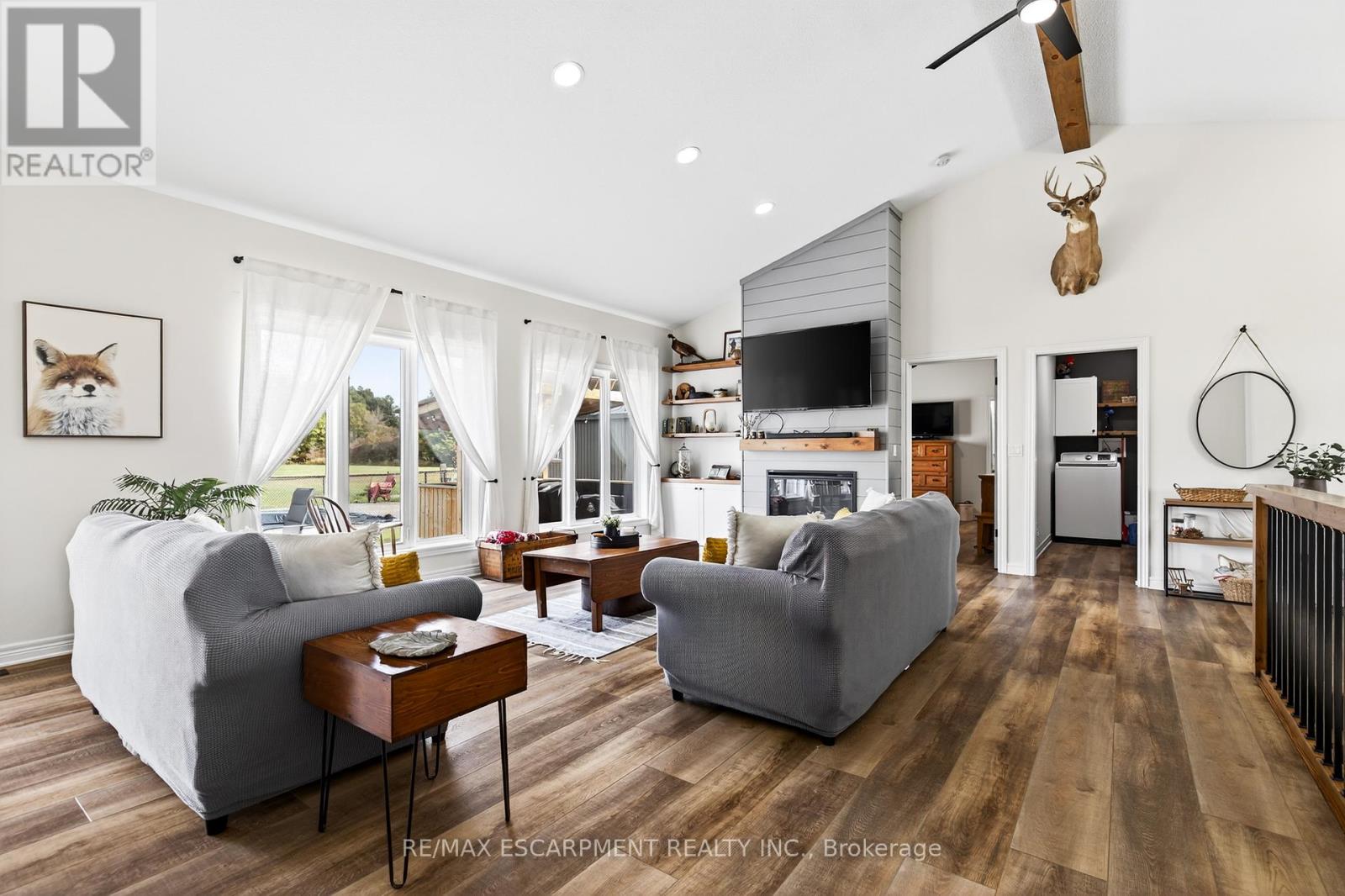 Experience the perfect blend of luxury and comfort in this stunning 1,902 sq. ft. bungalow set on 2.09 beautifully landscaped acres. Fully renovated main level and truly move-in ready. This 3 bedroom, 2 bath home is designed to impress. Step inside to find Luxury Vinyl Plank flooring throughout, freshly painted interiors, and a gorgeous modern kitchen with a breakfast bar, idealfor morning coffee or casual entertaining. The spacious great room boasts soaring cathedral ceilings, custom fireplace, and built-in shelving, creating the perfect gathering space for family and friends. The 1,853sq ft partially finished basement offers endless potential. Outdoors, you'll fall in love with the in-ground pool with nothing but open space, offering the ultimate private oasis. The backyard deck features both a cozy covered seating area along with a covered culinary space, perfect for summer barbecues and evening entertaining. For hobbyists or those with a love for mechanics, the separate serviced shop (with both water and hydro) provides ample room for projects, storage, or toys. This property truly has something for everyone inside and out. (id:4555)