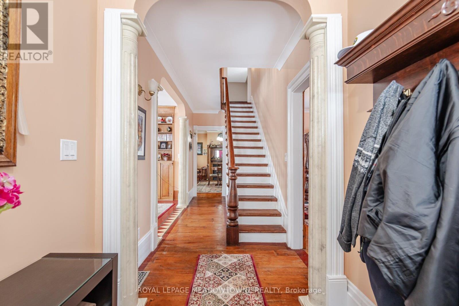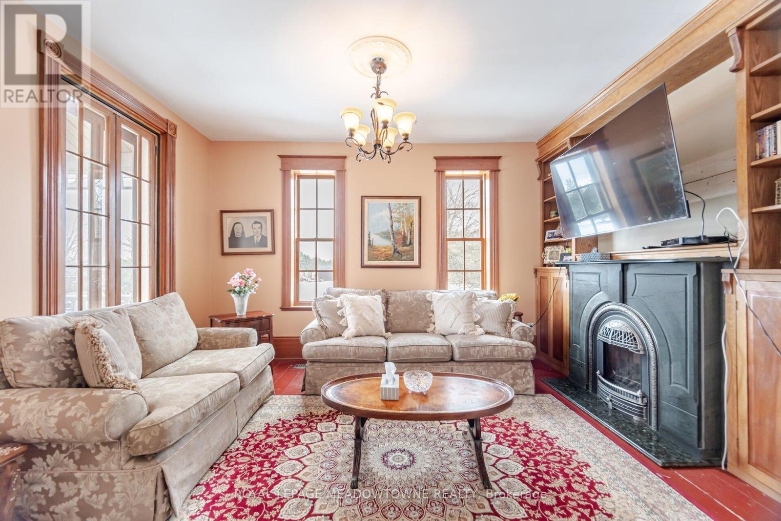 Nestled on a picturesque 46.5-acre property with 2 road frontages, this breathtaking century home seamlessly blends historic charm with modern conveniences. Spanning approximately 2,600 sq. ft., this bright and inviting home is filled with natural light, highlighting its many original features, including a stunning handcrafted staircase, wide plank hardwood floors, intricate trim work, 2 gas fireplaces, and beautiful stained glass windows. The thoughtfully designed layout offers 3 spacious bedrooms, including one with a private balcony overlooking the scenic landscape. A second-floor laundry and home office provide convenience, while the elegant 5-piece bathroom adds a touch of luxury. Enjoy the beauty of the outdoors from any of the three covered porches, with the back porch offering serene views of the pond and vegetable garden. For those who appreciate additional space, this property offers a two-story 3-car detached garage with a loft apartment featuring two bedrooms and a rough-in for a three-piece bath, ready to be completed as an in-law suite. Additionally, a 60x30 detached garage provides ample room for storage, a workshop, or hobby space. Completing the outdoor amenities is a covered dining and BBQ area, perfect for entertaining and enjoying the scenic surroundings. Previously used for farming wheat, the expansive land offers endless possibilities. Located in the heart of the Niagara Region, you're just minutes from local markets, scenic hiking and biking trails, world-class wineries, breweries, golf courses, and top-tier dining. Plus, with easy access to the QEW, commuting is a breeze. This rare and remarkable property is a must-see don't miss your chance to own a piece of history in an unbeatable location! (id:4555)