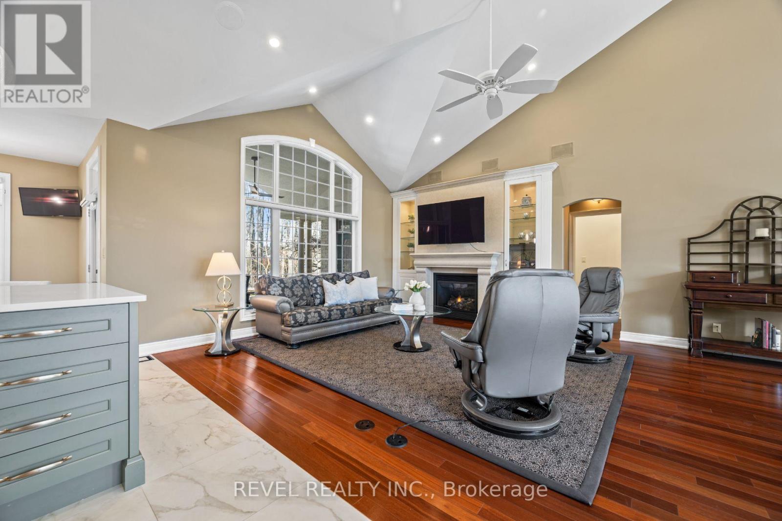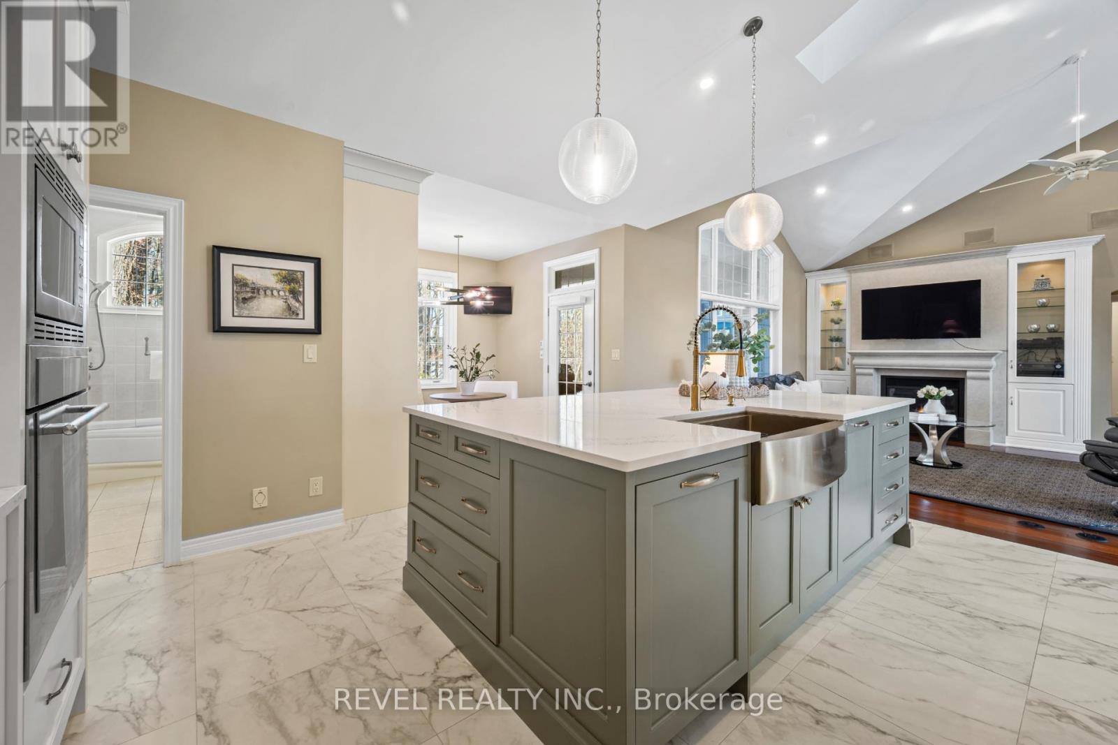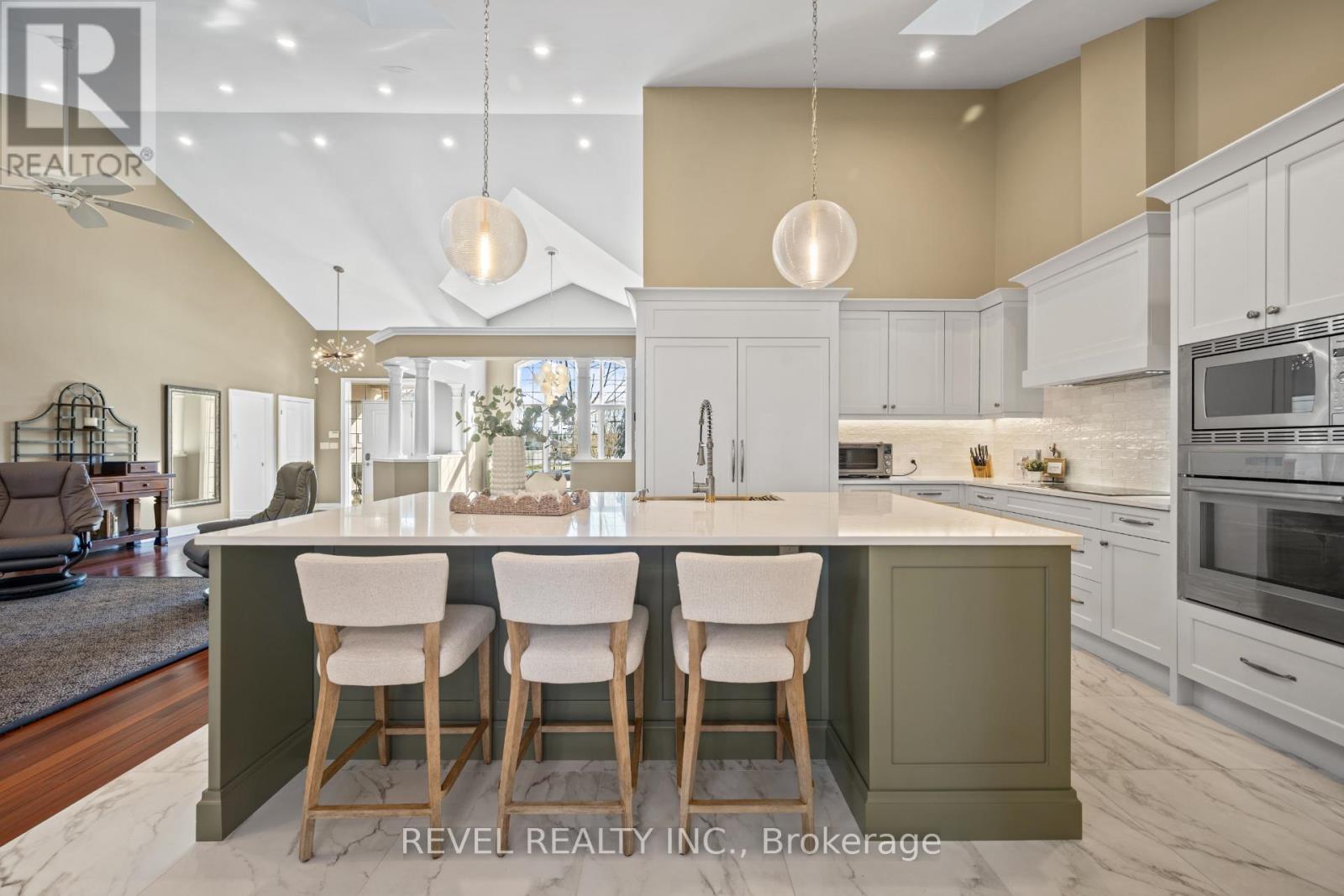 Welcome To 15 Mansfield Drive, An Exceptional Bungalow Nestled In The Prestigious Cherry Ridge Estates In The Quaint Town Of Fenwick, Situated On A Quiet Court With Only Two Additional Homes And Offering 4,476 Sq Ft Of Finished Living Space With 4+3 Bedrooms And 3 Bathrooms On A Rare Pie-Shaped Lot Backing Onto A Mature, Tree-Filled Ravine That Delivers Outstanding Privacy And A Serene Natural Setting. Stunning Curb Appeal Showcases Flagstone Walkways, Professional Landscaping, Exterior Lighting, A Raised Rock Waterfall Pond, And An Oversized Double Car Garage. Inside, Cathedral Main Rooms Freshly Painted In 2024 Create An Airy, Elegant Feel, While All Bedrooms And The Basement Were Refreshed In 2026. The Fully Renovated Designer Kitchen Features Two Skylights, Porcelain Flooring, Custom Tall Cabinetry, A Quartz-Topped Island With Built-In Gold Apron Sink, Gold Hardware, Premium Thermador Appliances Including A Cabinet-Faced Dishwasher, Double-Door Fridge/Freezer, Induction Cooktop, Built-In Wall Oven, Microwave, Vent Hood, Along With A Floor-To-Ceiling 8' Pantry, Built-In Banquette Seating, Custom Stools, And Upgraded Lighting Throughout. Additional Highlights Include Hunter Douglas Automated Blinds, Six Basement Tilt Windows (2021), Custom DeKorte's Fence (2021), Garage Acorn Stairlift, And Continued Exterior Enhancements Featuring A Pergola & Covered Patio. All Just Minutes To Parks, Scenic Trails, Golf Courses, Wineries, Boutique Shops, And Everyday Amenities-Offering Refined Luxury Living In One Of Niagara's Most Desirable Communities. (id:4555)