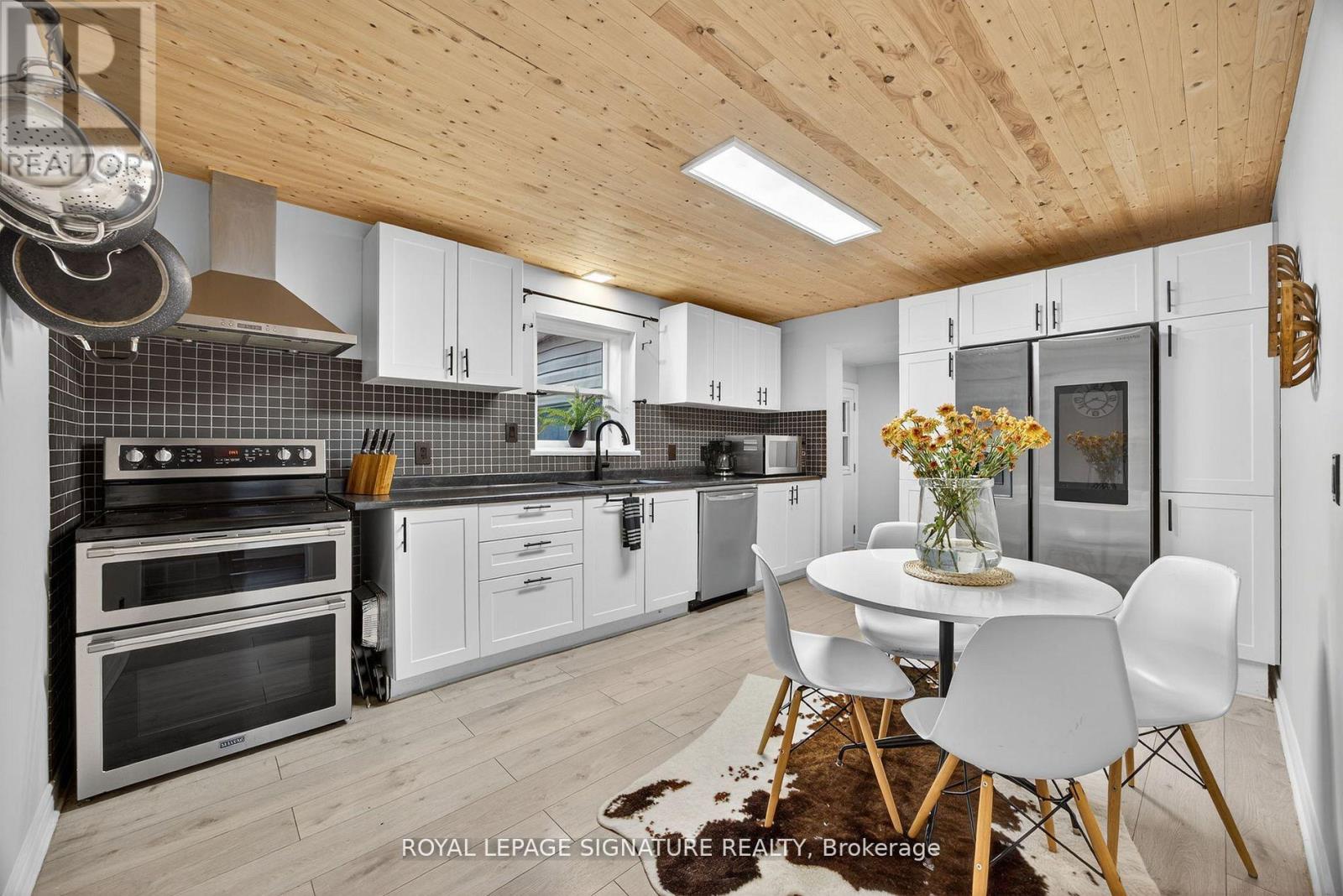 **Charming Home in Prime Penetanguishene Location** Discover this beautifully renovated home featuring 3 bedrooms and 2 bathrooms, flooded with natural light, located in the heart of Penetanguishene. Enjoy the convenience of being within walking distance to local amenities and just minutes from the Georgian Bay town dock and wharf.This fully updated, modern-cottage style home includes pine ceilings and durable blonde scratch-resistant laminate flooring throughout for a consistent flow from room to room. The partially finished basement is perfect for a home office, tv room or bedroom.Relax in the covered, 2 year old Trinity hot tub, perfect for serene evenings, while the steel roof ensures long-lasting durability and peace of mind.Situated on a generous 50x165 lot, this property offers drive-in access to the backyard, which features an 18' x 20' garage/shop currently utilized as a games and recreation area. You have the option to build a privacy fence or enjoy the open space.Additional highlights include an attached garage and a spacious double-wide driveway, forced-air gas heating, central air conditioning, doublewide stove and high end fridge with smart digital display. Enjoy the convenience of in town living on an oversized lot just minutes to Georgian Bay! Don't miss this incredible opportunity. (id:4555)