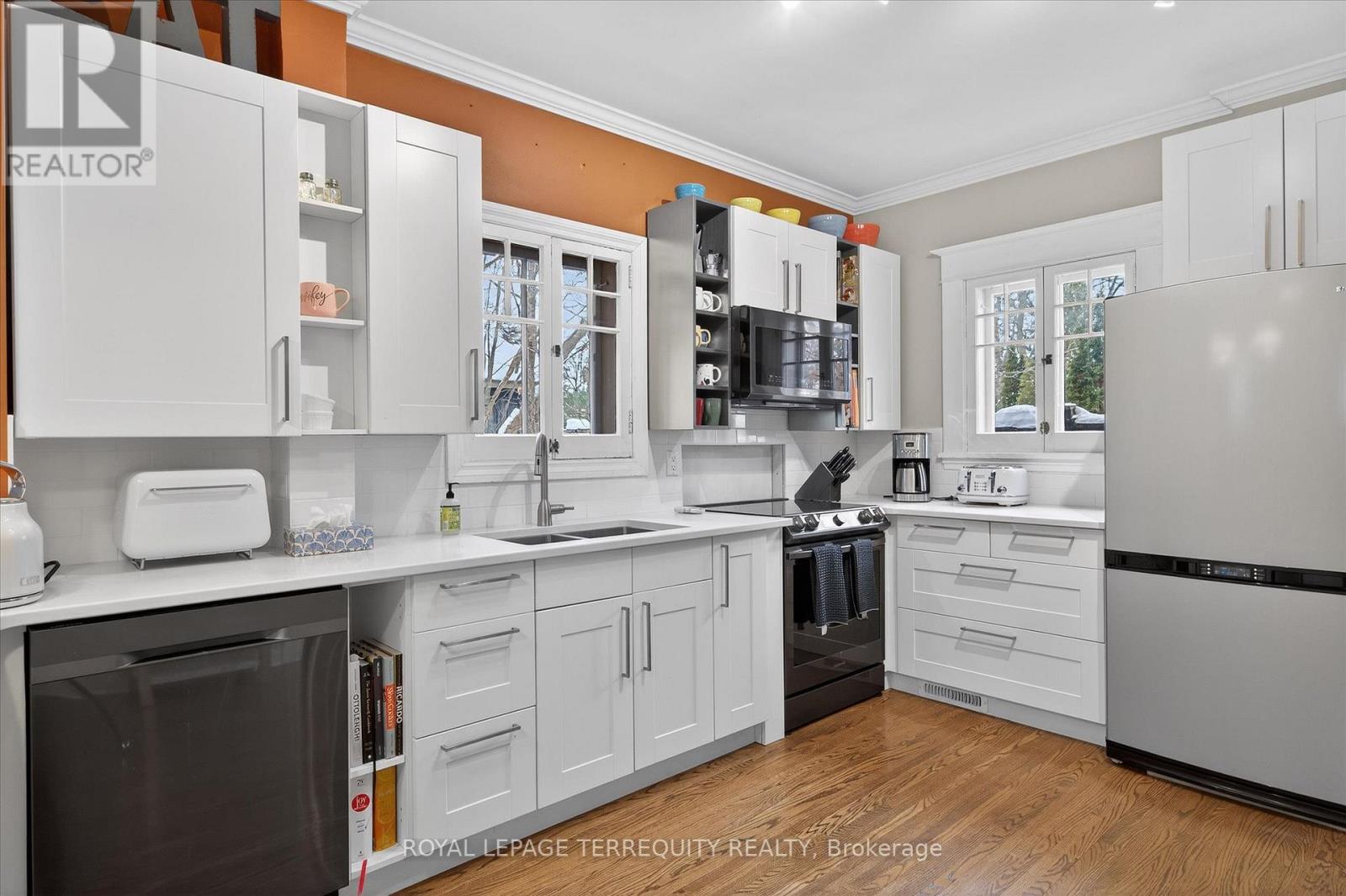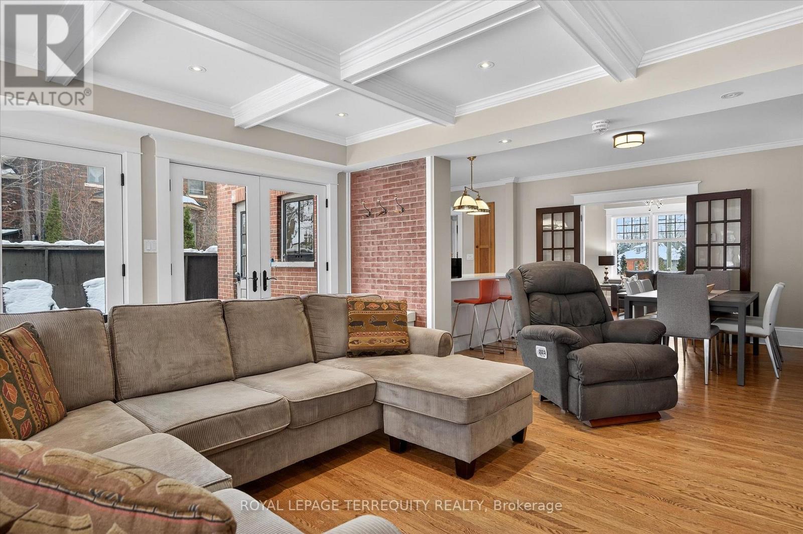 Welcome to this beautiful inviting character home, perfectly situated on a quiet, tree-lined street in the highly sought-after Teachers College neighbourhood of Peterborough. This prime location offers the rare combination of peaceful residential living with the convenience of being able to walk, bus or drive just minutes to downtown amenities. This spacious four-bedroom, three-bathroom home, plus a main floor powder room, blends timeless charm with thoughtful modern updates. The large living room features a wood-burning fireplace, creating a warm welcoming space for relaxing evenings. From here, the home flows seamlessly into an open-concept kitchen, dining and living area, ideal for entertaining family and friends. A standout feature is the 2-storey addition completed in 2015, designed to enhance both comfort and connection to the outdoors. The expansive family room boasts coffered ceilings, built-in cabinetry and shelving, large windows and two walk-out doors leading to a generous patio deck with wide views of the rear property. The home also offers wheel-chair accessibility through the rear entrance and deck adding versatility and thoughtful design. Hardwood flooring extends throughout the home.The primary bedroom retreat offers a spacious walk-in closet and four-piece ensuite bathroom. Enjoy the exceptional lifestyle with the Rotary Trail, Parks, biking paths, and river just steps away. A short walk brings you to downtown Peterborough's restaurants, shopping, hockey and sports facilities. ** This is a linked property.** (id:4555)