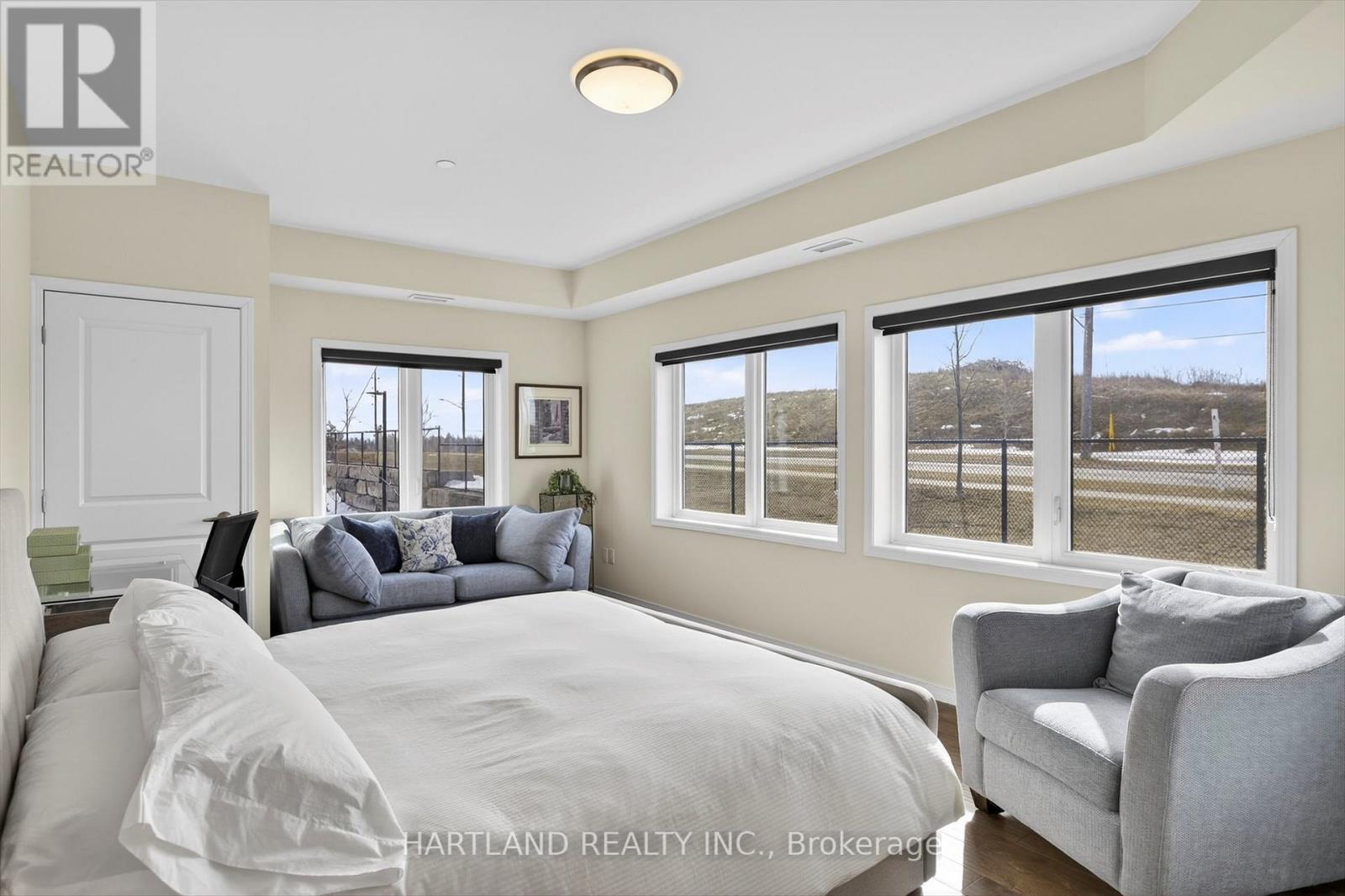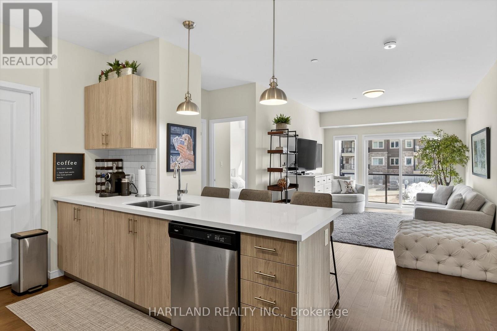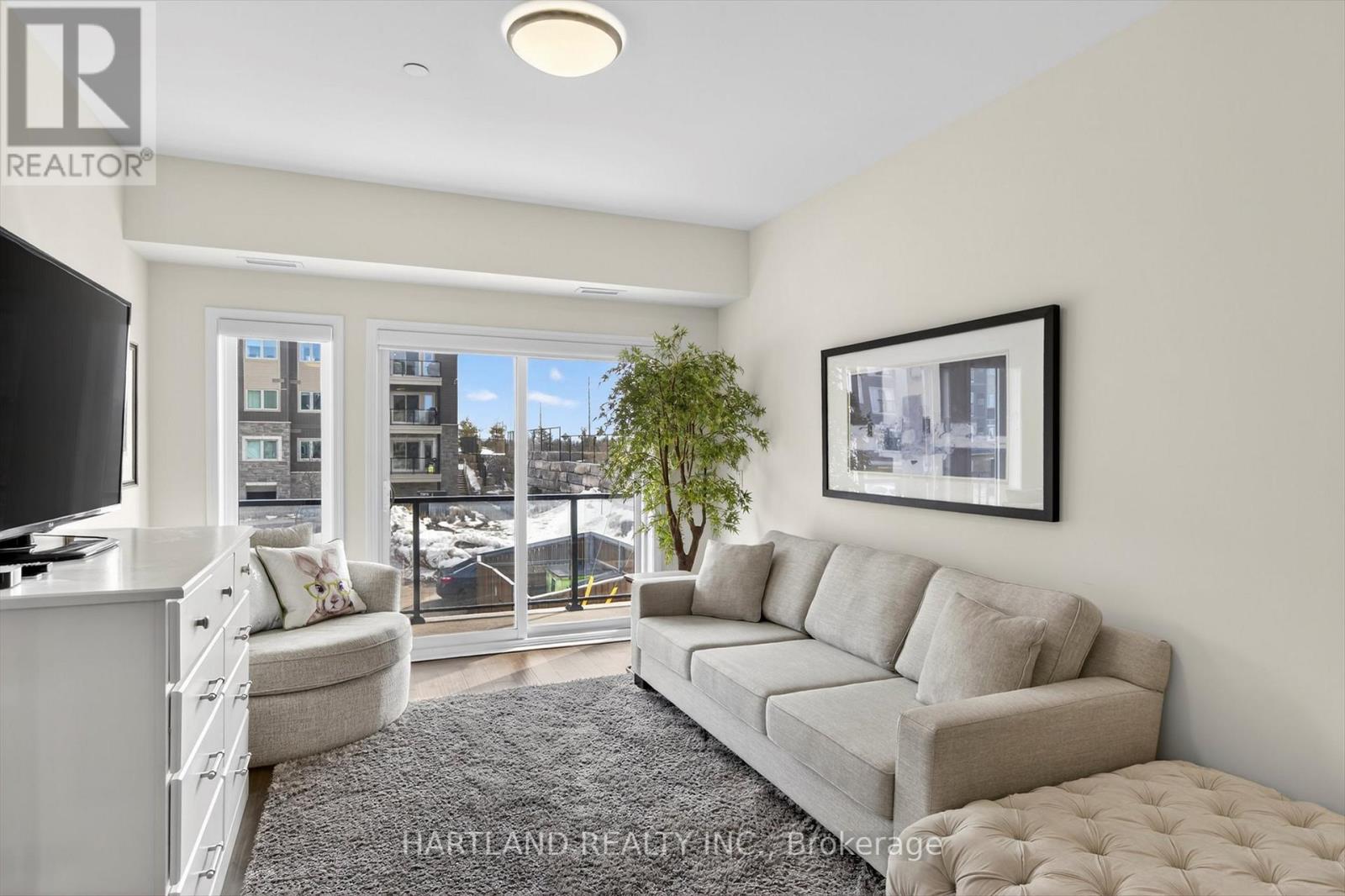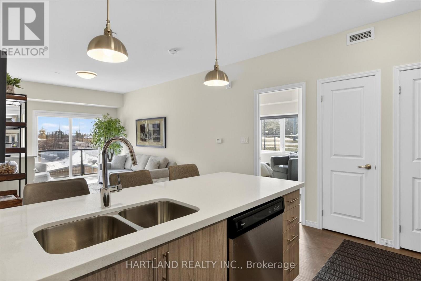 Bright CORNER unit modern design with 9ft high ceilings. Open concept floor plan, Upgraded kitchen with quartz counter tops and breakfast bar, overlooks the spacious Living/Dining room which flows out to the spacious balcony. Perfect for entertaining while cooking on the BBQ. Large bedrooms, Primary bedroom features large walk-in closet and 4 pc en-suite, Ideal Split bedroom floor plan. Laundry/utility room offers room for additional storage. Included Gas furnace, Central A/C and it also includes one exclusive parking space with a Low maintenance condo fees. Located in the prestige Jackson Creek Meadows neighborhood very close to downtown Peterborough and Hospital, just a short walk to Jackson Park great for walks or hiking, easy access to Hwy 115. View this Property and you will love it! (id:4555)