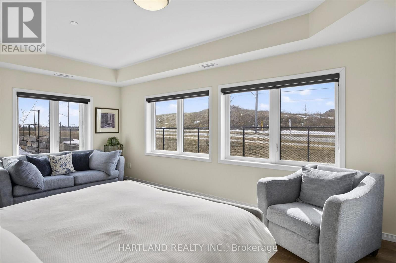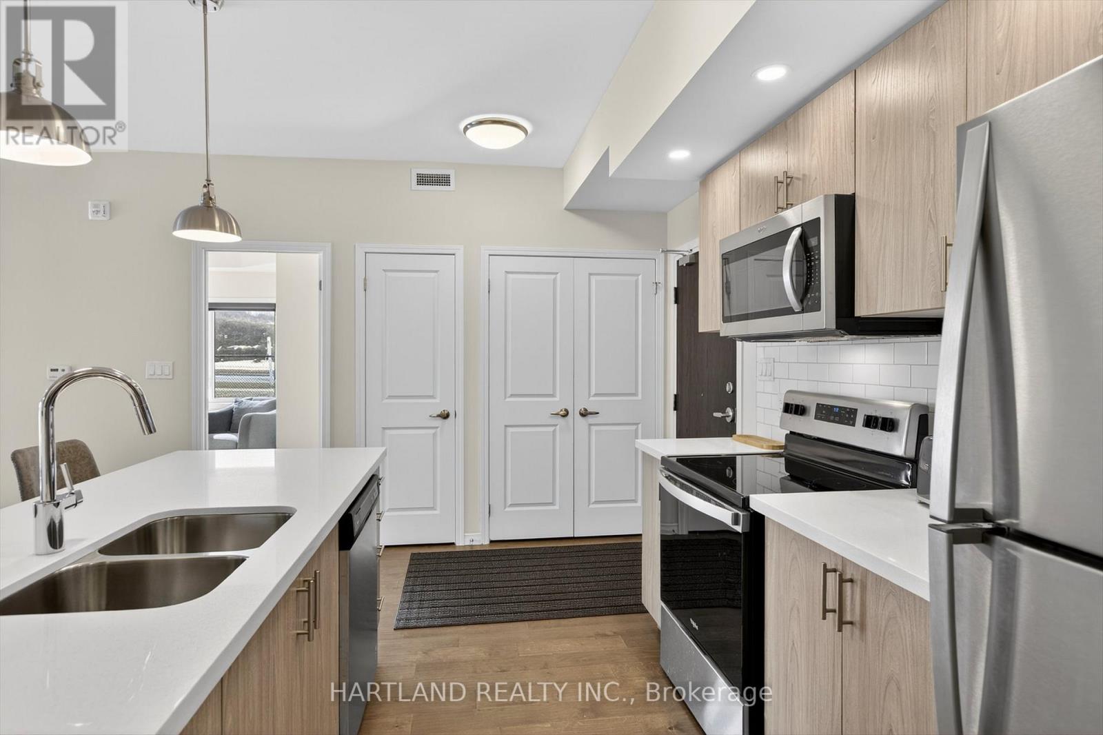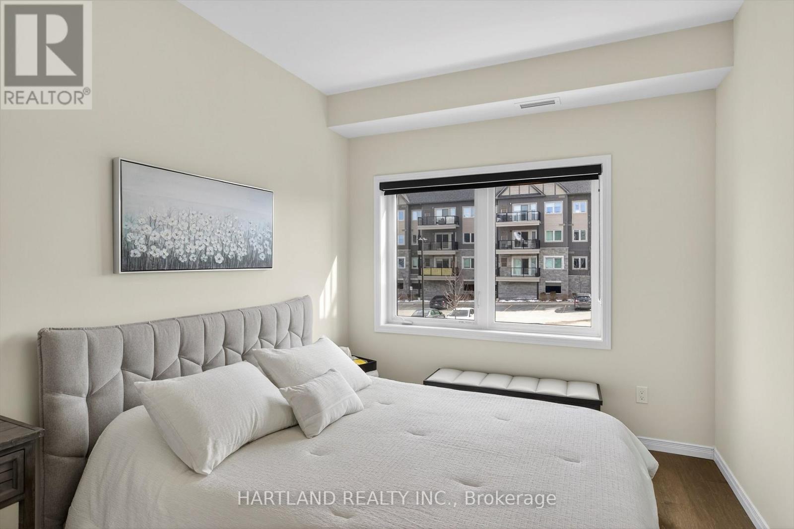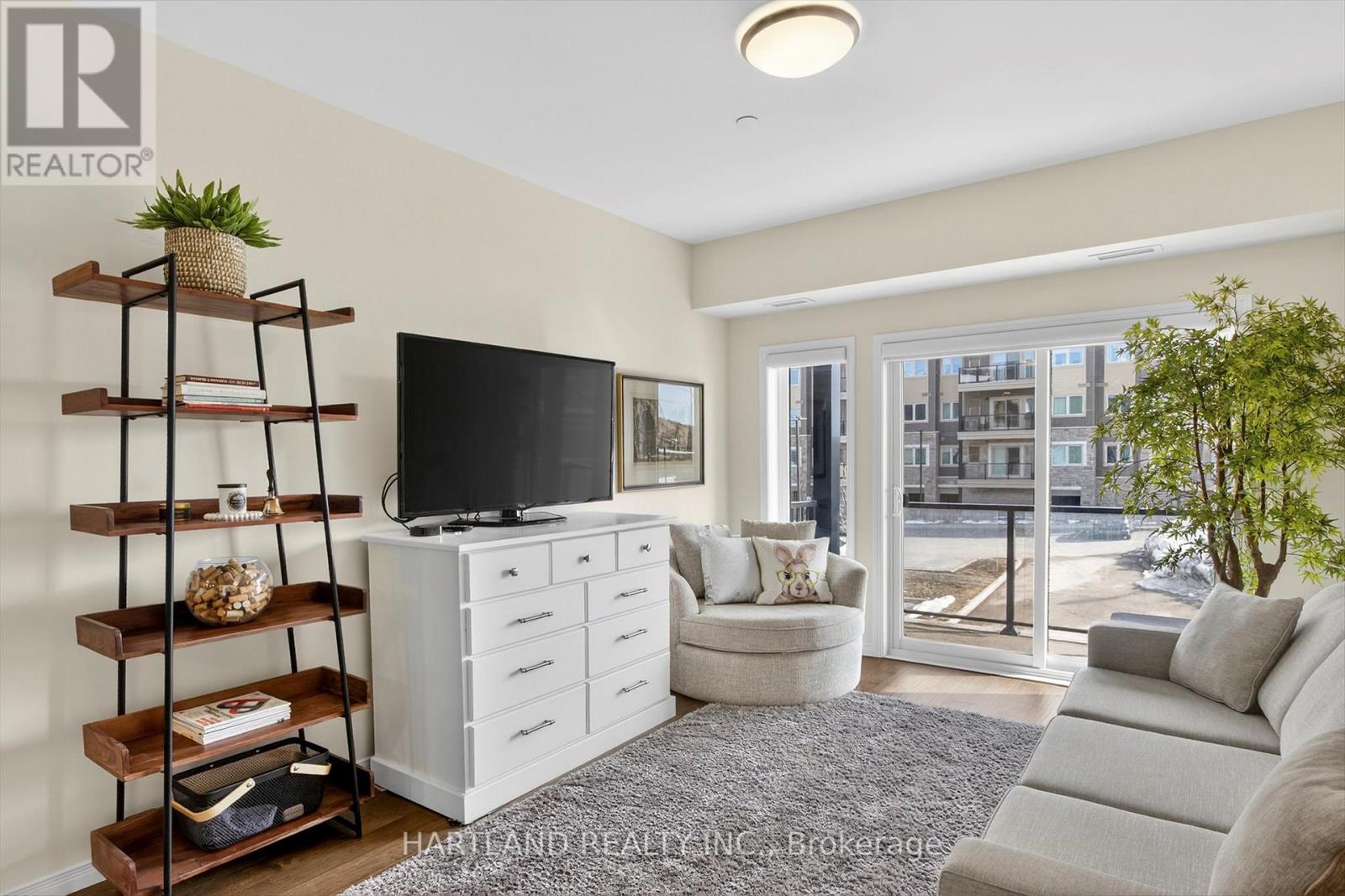 Bright CORNER unit modern design with 9ft high ceilings. Open concept floor plan, Upgraded kitchen with quartz counter tops and breakfast bar, overlooks the spacious Living/Dining room which flows out to the spacious balcony. Perfect for entertaining while cooking on the BBQ. Large bedrooms, Primary bedroom features large walk-in closet and 4 pc en-suite, Ideal Split bedroom floor plan. Laundry/utility room offers room for additional storage. Included Gas furnace, Central A/C and it also includes one exclusive parking space with a Low maintenance condo fees. Located in the prestige Jackson Creek Meadows neighborhood very close to downtown Peterborough and Hospital, just a short walk to Jackson Park great for walks or hiking, easy access to Hwy 115. View this Property and you will love it! (id:4555)