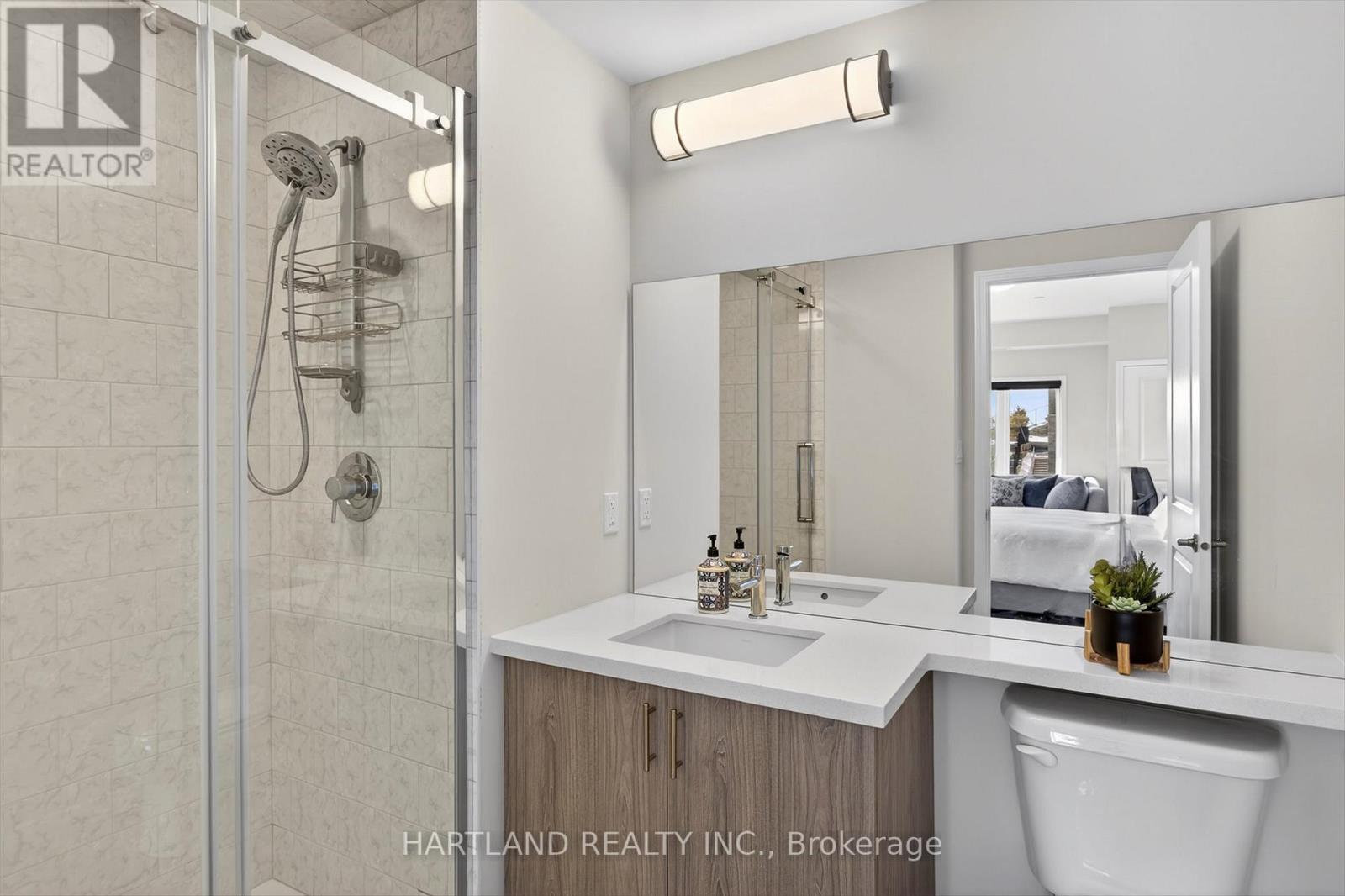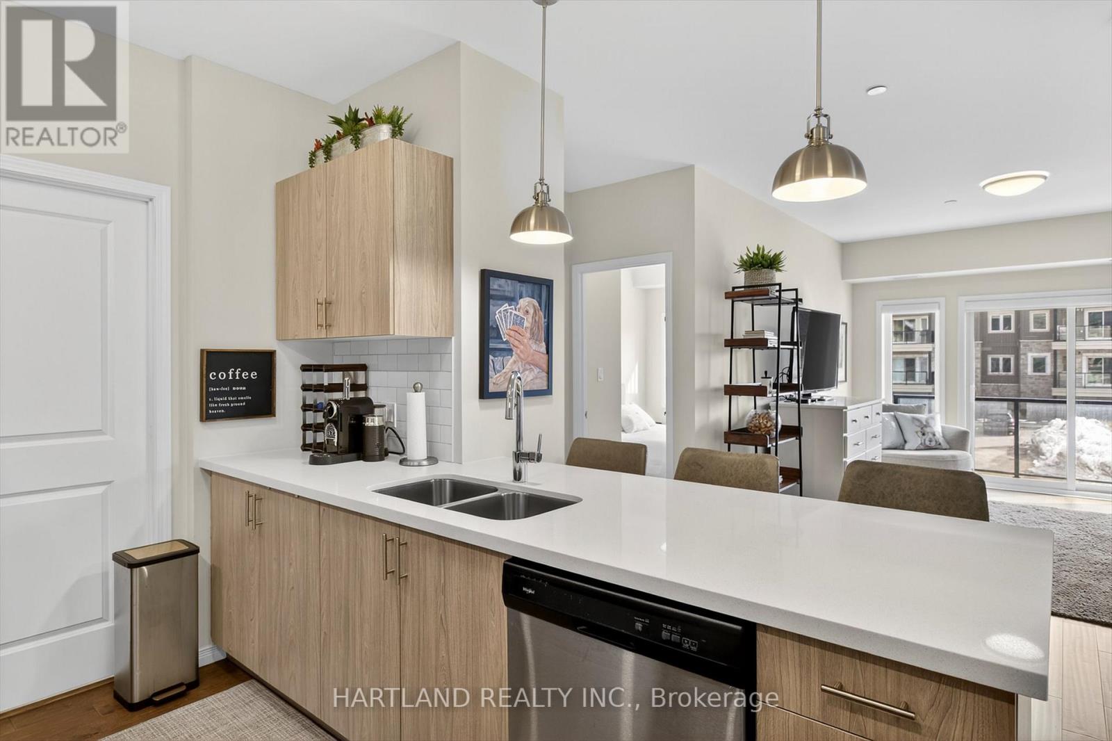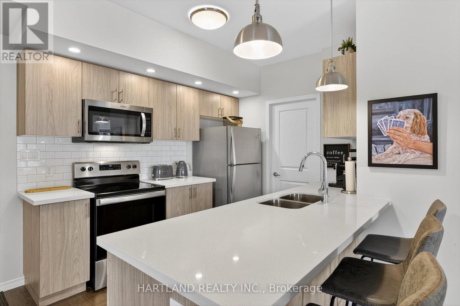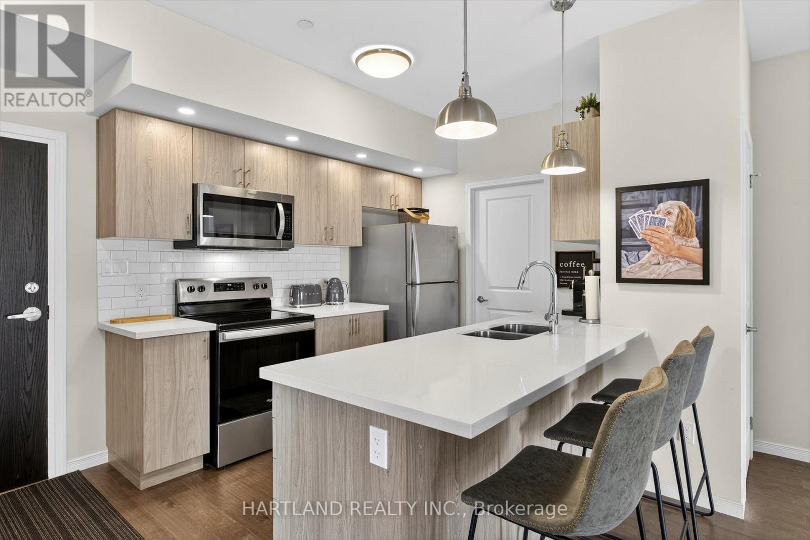 Bright CORNER unit modern design with 9ft high ceilings. Open concept floor plan, Upgraded kitchen with quartz counter tops and breakfast bar, overlooks the spacious Living/Dining room which flows out to the spacious balcony. Perfect for entertaining while cooking on the BBQ. Large bedrooms, Primary bedroom features large walk-in closet and 4 pc en-suite, Ideal Split bedroom floor plan. Laundry/utility room offers room for additional storage. Included Gas furnace, Central A/C and it also includes one exclusive parking space with a Low maintenance condo fees. Located in the prestige Jackson Creek Meadows neighborhood very close to downtown Peterborough and Hospital, just a short walk to Jackson Park great for walks or hiking, easy access to Hwy 115. View this Property and you will love it! (id:4555)
