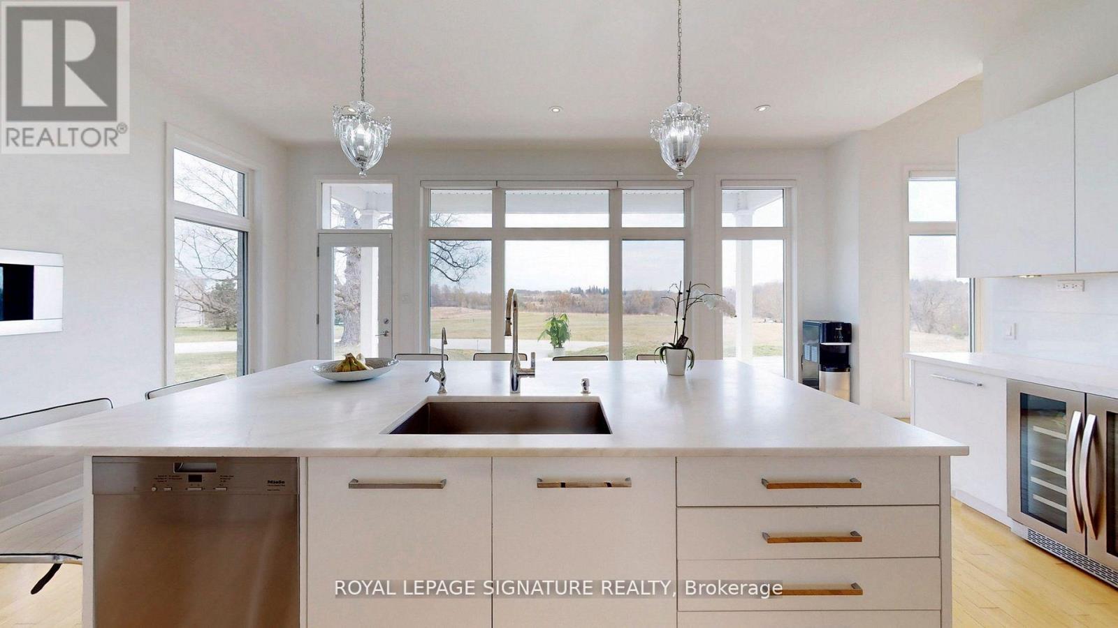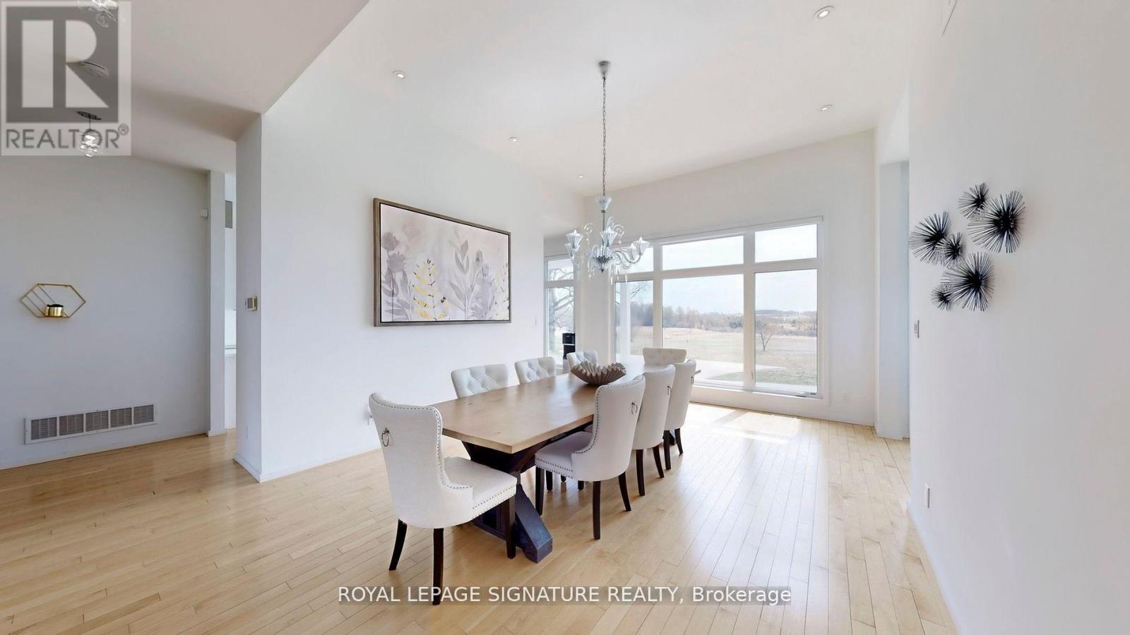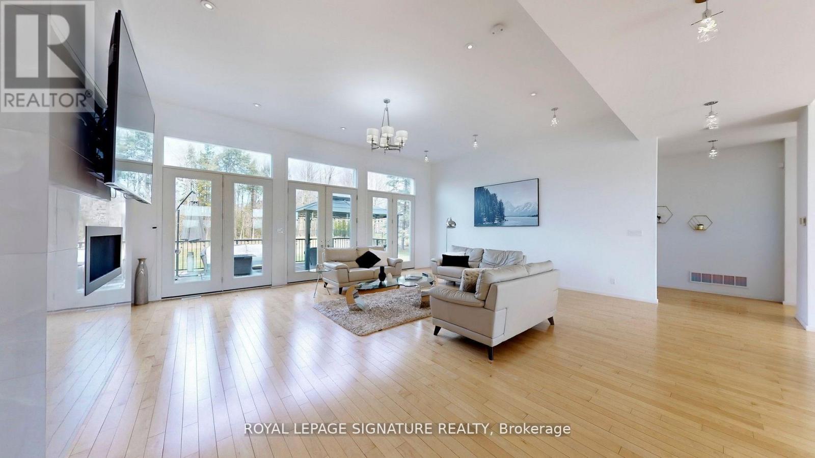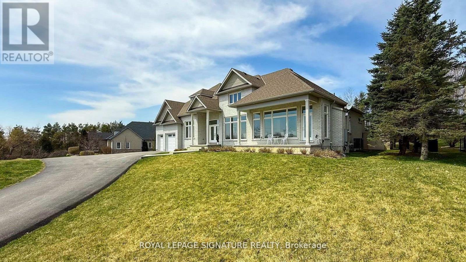 Stunning custom-built bungaloft on a private, just over 1-acre hilltop lot in Claremont with 12 ceilings in the great room, 10 ceilings on main, and 9 ceilings in the finished walk-out basement. Floor-to-ceiling windows capture panoramic views of the rolling hills. Open-concept layout with hardwood floors, custom kitchen, 3 gas fireplaces, and a luxurious primary suite with deck access. The lower level basement features a complete in-law suite with 2 bedrooms, full kitchen, 3-piece bath, laundry, private entrance, plus an additional 1,200 sq ft of semi-finished recreational space already roughed-in for a home theater. Spacious heated 4-car garage with 11 ceilings offers exceptional convenience. A rare blend of elegance, space, and privacy just minutes from city amenities (id:4555)
