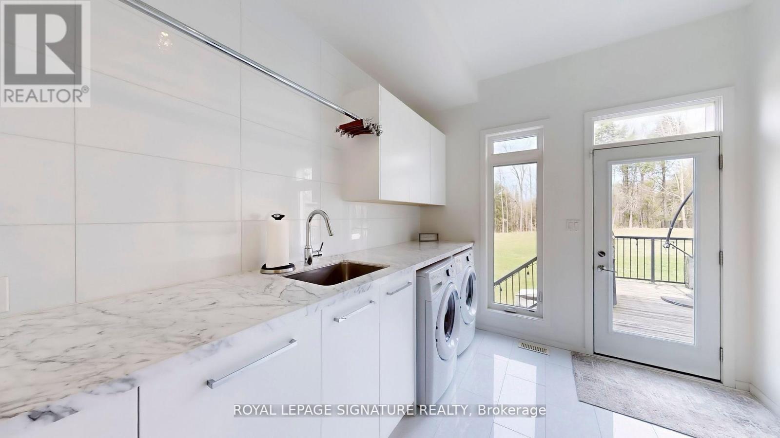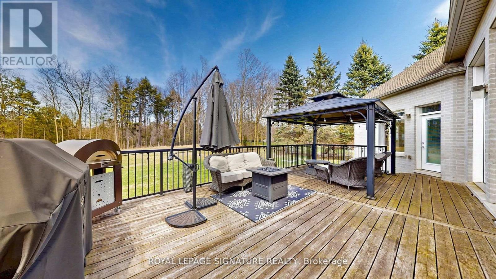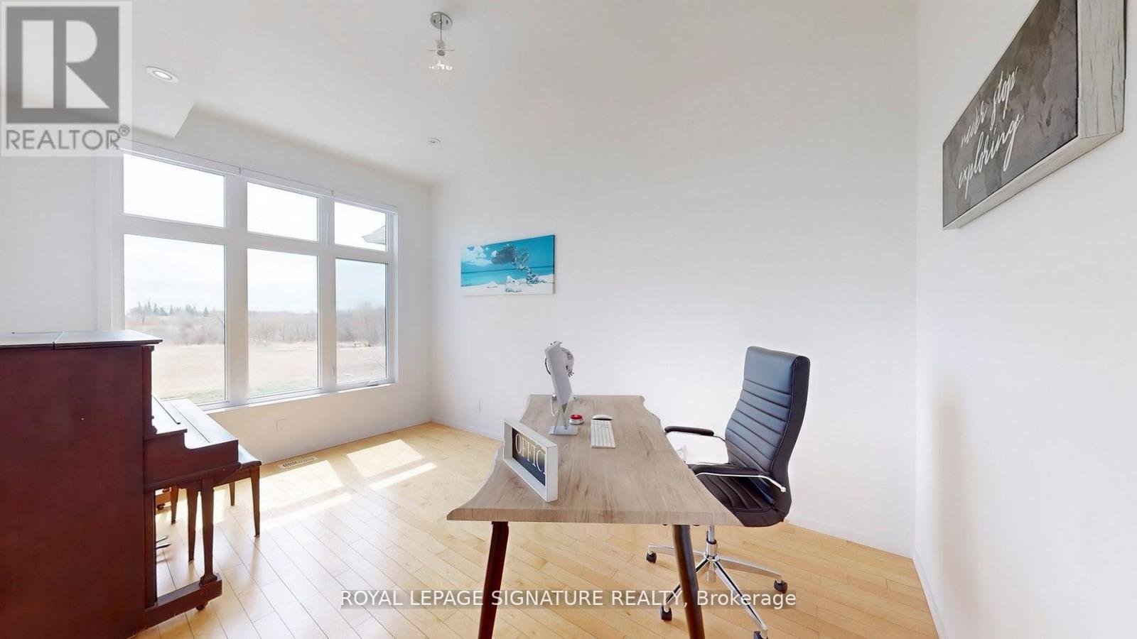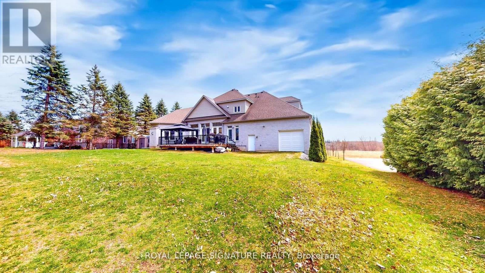 Stunning custom-built bungaloft on a private, just over 1-acre hilltop lot in Claremont with 12 ceilings in the great room, 10 ceilings on main, and 9 ceilings in the finished walk-out basement. Floor-to-ceiling windows capture panoramic views of the rolling hills. Open-concept layout with hardwood floors, custom kitchen, 3 gas fireplaces, and a luxurious primary suite with deck access. The lower level basement features a complete in-law suite with 2 bedrooms, full kitchen, 3-piece bath, laundry, private entrance, plus an additional 1,200 sq ft of semi-finished recreational space already roughed-in for a home theater. Spacious heated 4-car garage with 11 ceilings offers exceptional convenience. A rare blend of elegance, space, and privacy just minutes from city amenities (id:4555)