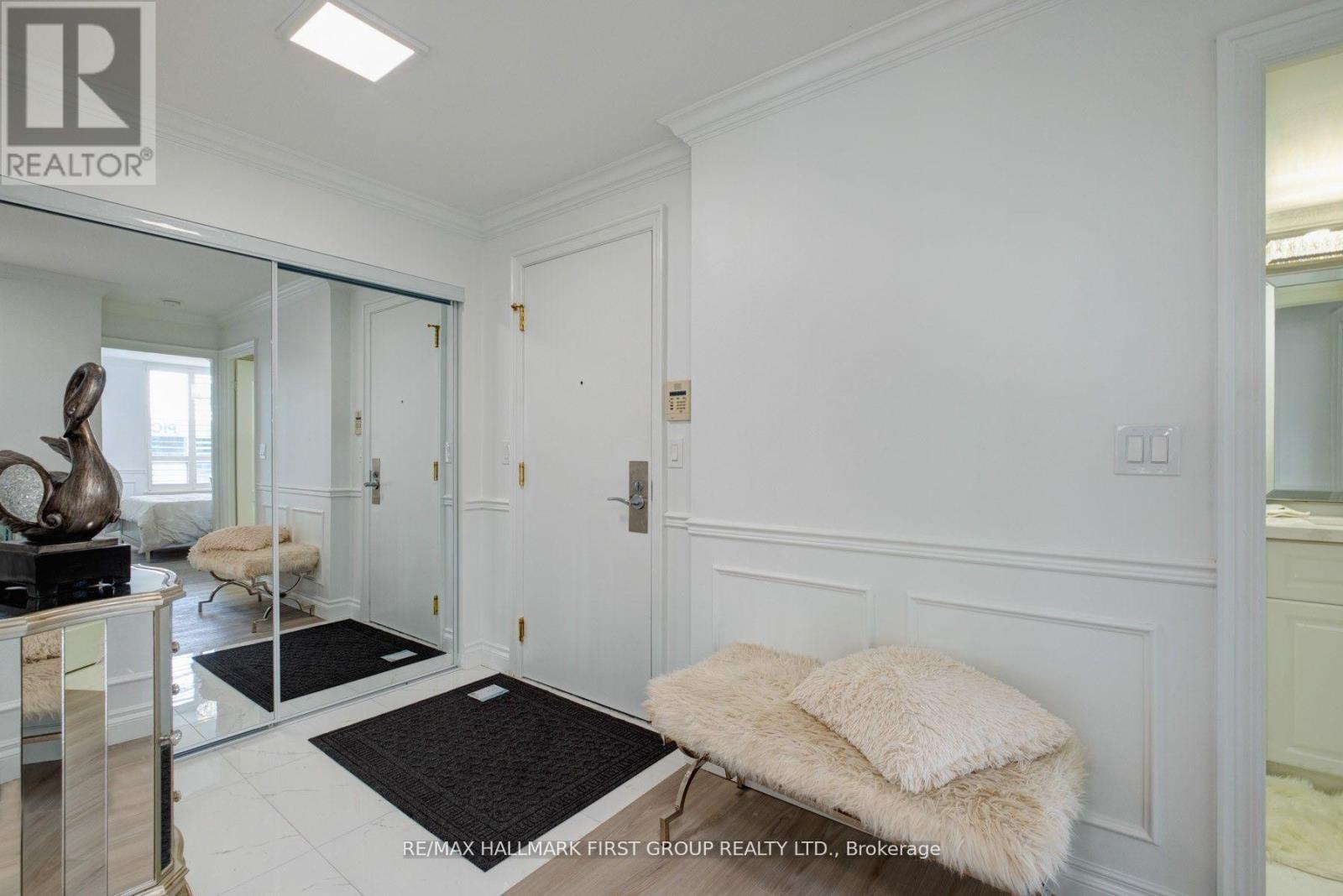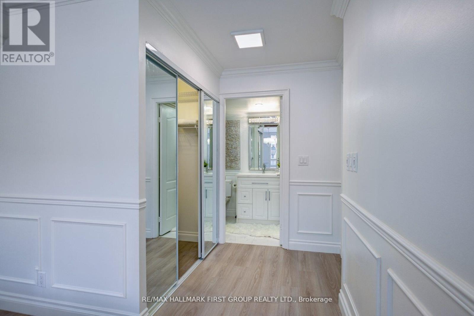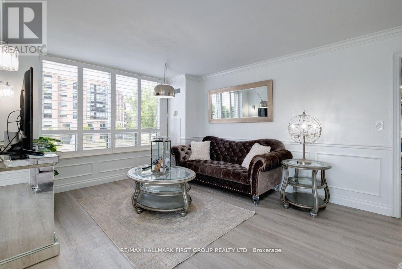 Location, Location, Location! Beautiful Completely Renovated 2 Bedroom Plus Den, 2 Bathrooms, 2nd Floor Condo with Balcony. Located Steps From Pickering Town Center and all Amenities. Includes 1 Parking Spot and 1 Storage Locker. Completely Renovated 1191sq ft. over 100k in Upgrades! New Waterproof Luxury Vinyl Flooring and Porcelain Tiles. Brand New Bright White Kitchen with Quartz Counter and Backsplash, under cabinet lighting, pullout garbage and recycling, moen facets and glass rinser. Brand new stainless steel appliances. Smooth ceilings with crown molding and wainscotting throughout and freshly painted. All matching 4000k lighting with multiple crystal chandeliers with dimmers and multiple USB Outlets. Spa like bathrooms with porcelain tiles, shower niches, potlights, glass shower door, quartz counters on custom vanities. Large primary bedroom can easily fit King size bed set. Spacious 2nd Bedroom and corner den with views, perfect for home office. Large balcony, Must See! (id:4555)