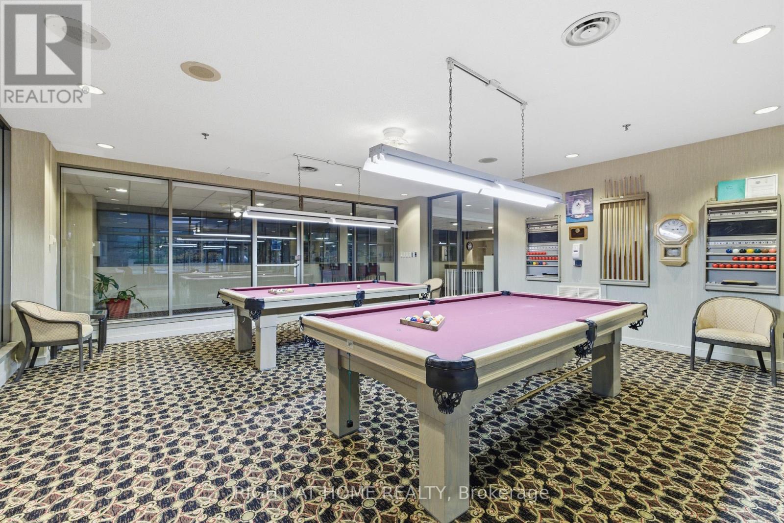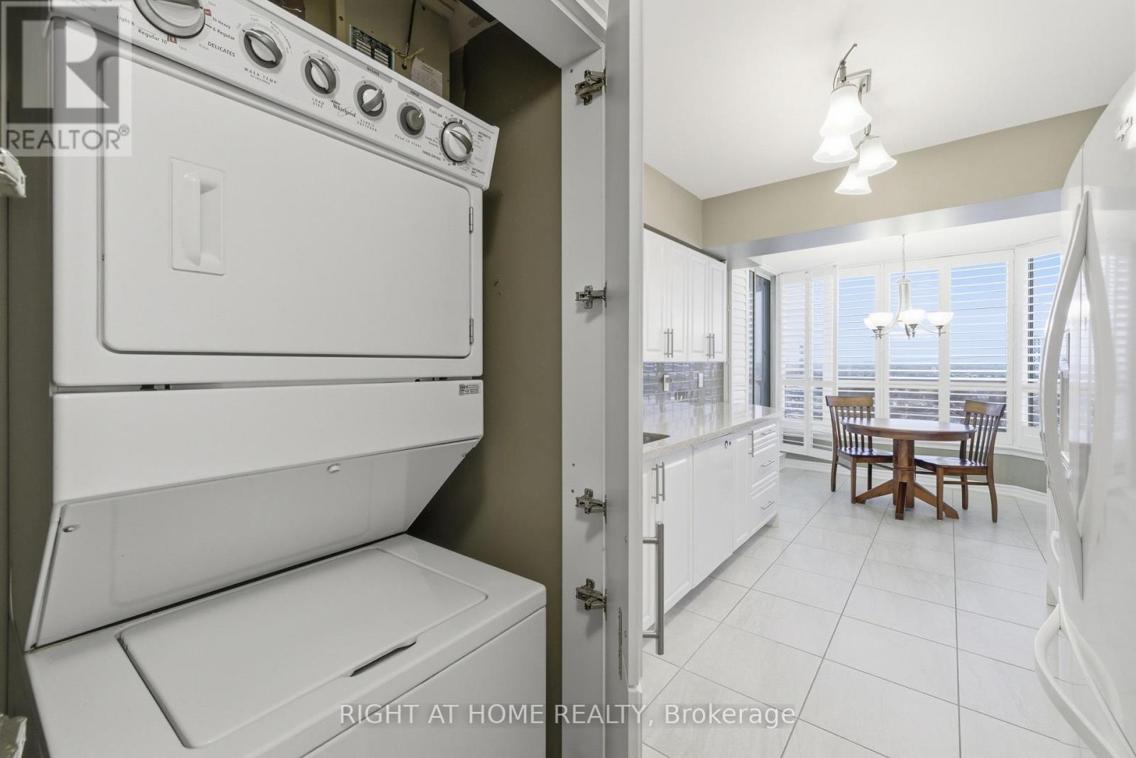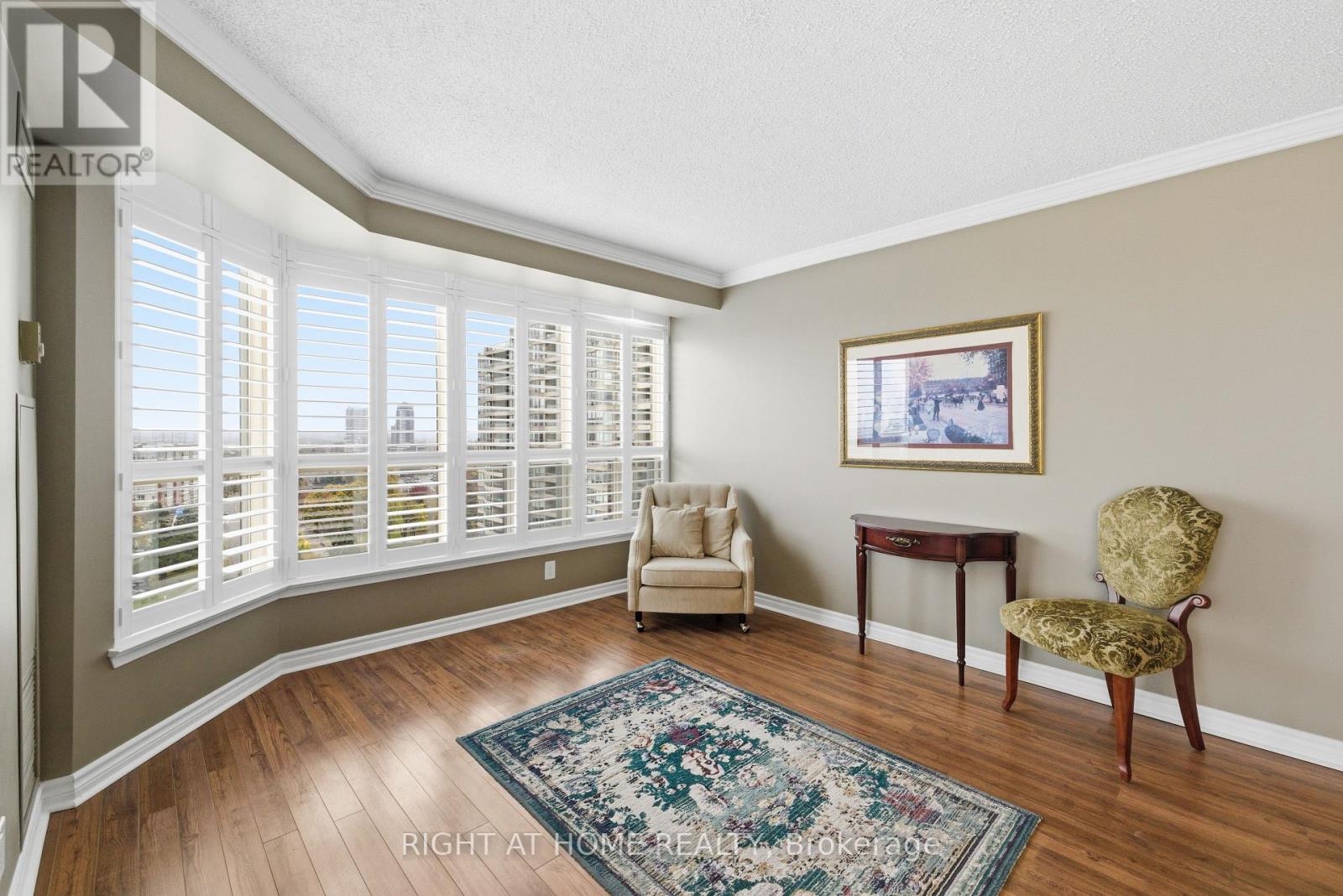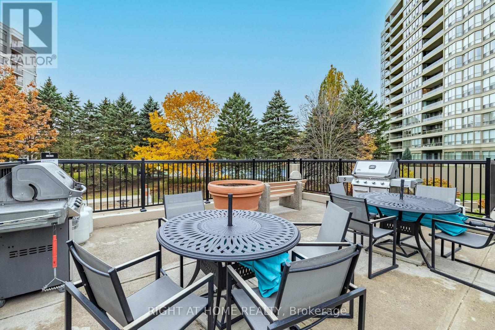 Step into the sought-after Cartier Model, an immaculate corner residence in Tridel's Discovery Place, showcasing nearly 1,500 sq. ft. of bright and well-designed living space. Sunlight pours in through the southeast-facing windows, highlighting the airy layout and offering seamless access to a private balcony-perfect for morning coffee or relaxing evenings. The suite features a spacious formal dining area within the living room, beautifully enhanced by crown moulding throughout, adding an elegant, refined touch to the main living space. The modern kitchen is ideal for everyday living, featuring an eat-in area and generous cabinetry for effortless organization. The entire suite is enhanced by California shutters, lending a bright, clean, uniform, and welcoming look. Both bathrooms are impressively sized and styled with contemporary finishes. For added convenience, the home includes oversized in-suite storage, an additional locker, and underground parking.Residents benefit from the exceptional lifestyle offered by this secure, resort-inspired community, complete with indoor and outdoor pools, hot tub, fully equipped fitness centre, tennis and squash courts, party rooms, guest suites, 24-hour security, and plenty of visitor parking. With all utilities included in the maintenance fees-water, heat, hydro, cable TV, and high-speed internet-daily living is simple and stress-free.Situated steps from Pickering Town Centre, the library, civic centre, parks, recreation facilities, and the GO Station, and minutes from Highway 401, this suite delivers the perfect blend of location, comfort, and convenience (id:4555)