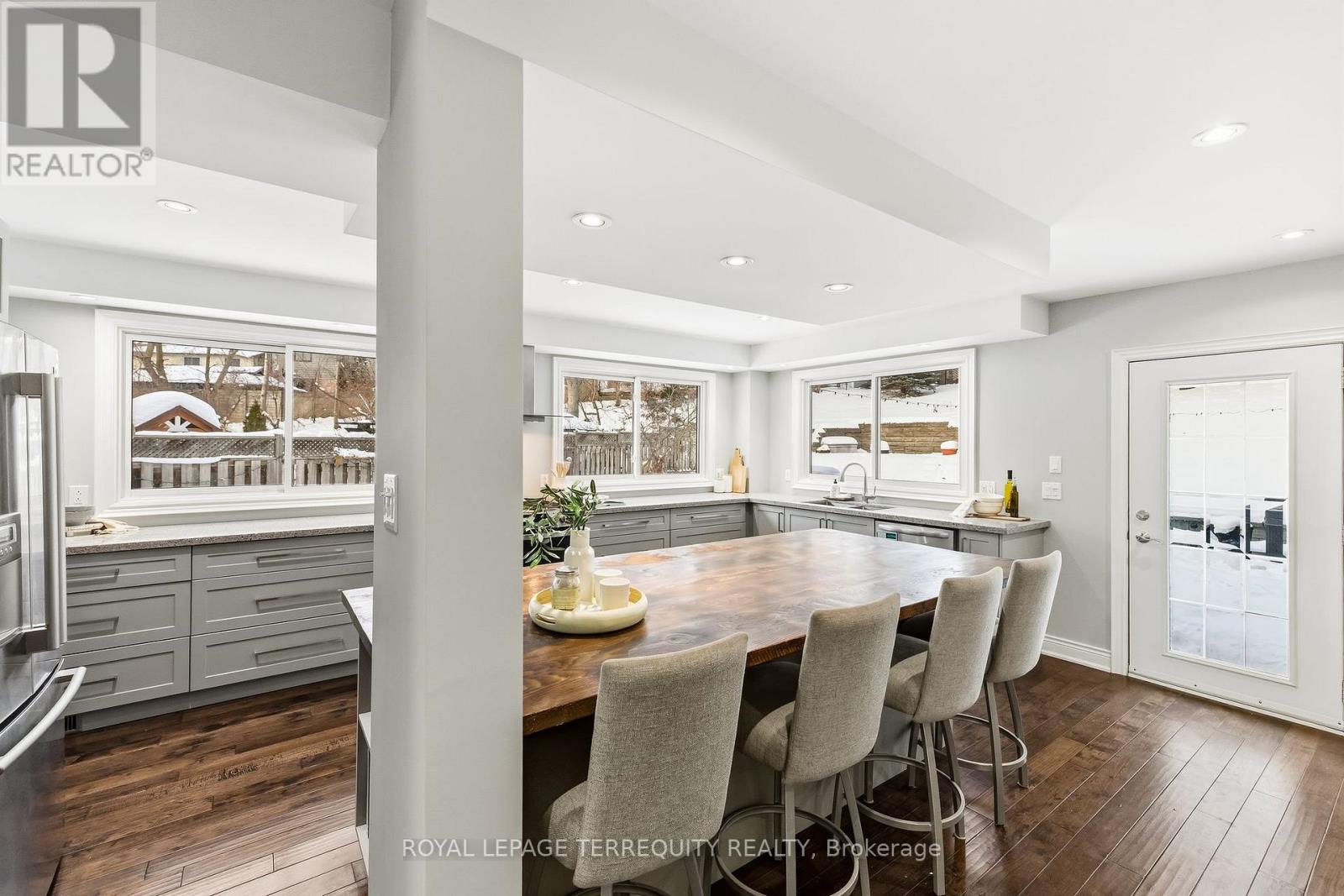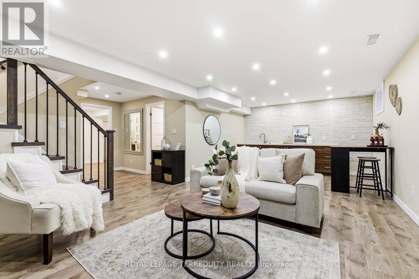 Welcome to this beautifully maintained 2 storey detached home tucked away on a quiet cul-de-sac in the highly sought after Amberlea community of Pickering. Offering approximately 2,319 sq ft above grade this 3+1 bedroom, 4 bathroom home that blends timeless charm with thoughtful upgrades throughout. The main floor features hardwood floors a welcoming foyer with ceramic flooring and a versatile office with bay window and pot lights perfect for working from home. The upgraded kitchen boasts quartz countertops, pantry and a seamless flow into the dining area with walk out to the private backyard. Enjoy the bright and airy living room complete with two skylights and walk out ideal for entertaining or relaxing. Upstairs the spacious primary bedroom includes hardwood flooring and is complemented by a spa like 5 piece bath with heated floors. Two additional bedrooms and an updated 3 piece bathroom complete the upper level. The finished basement offers a recreation room with wet bar, an additional bedroom and a separate 3 piece bath, ideal for guests or extended family. Additional highlights include heated floors in multiple areas, new furnace 2026, mudroom with walkout to side yard, main floor laundry with walk out to double garage with private triple driveway parking and a fully fenced landscaped yard with hot tub. Located close to parks schools hospital and all amenities! This home offers exceptional comfort space and location. A fantastic opportunity to own in desirable Amberlea community. (id:4555)