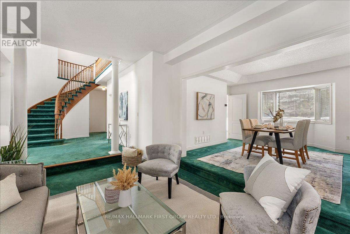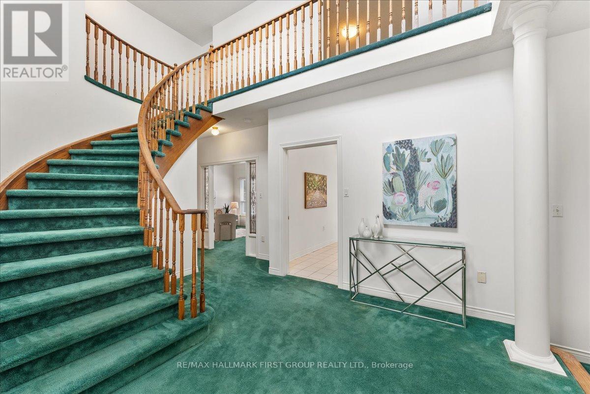Welcome to 1633 Valley Ridge, set on a premium 60 x 148* ft lot in a spectacular family oriented neighbourhood; This elegant home welcomes you with a grand foyer featuring double-door entry and 9ft ceilings throughout the main floor. A private office with vaulted ceilings and double French doors provides an ideal work-from-home space. The sunken living room with 10ft ceilings offers warmth and character with a gas fireplace, while the formal dining room impresses with coffered ceilings - perfect for hosting. The bright, eat-in kitchen features abundant cupboard and counter space and opens to a comfortable family room with a second gas fireplace. Main-floor laundry adds convenience with direct garage access and a separate side entrance. The oversized primary retreat showcases double doors, his-and-her walk-in closets, and a spacious ensuite with a separate shower and jacuzzi tub. A stunning secondary bedroom with vaulted ceilings includes two double closets and a Jack-and-Jill bathroom shared with the third bedroom. A generously sized fourth bedroom with 4-piece ensuite and double closets easily accommodates a growing family. The partially finished basement offers a bachelor apartment with separate walk-out access - ideal for extended family or additional income potential. Fantastic location within walking distance to Rouge Valley trails and easy access to hwy 401, 407, and downtown Toronto! Recent updates include newer shingles 2018, furnace 2019, and air conditioning. **Carpet colour has been altered in some photos - QUOTE FOR NEW HARDWOOD ON FIRST FLOOR including stair nose; $15,854 + HST, NEW CARPET ON SECOND FLOOR; $7,952 + HST - quoted by Summit Flooring** All Windows & Patio Door Quote: $39,121 - quoted by Superior Home Improvements. (id:4555)