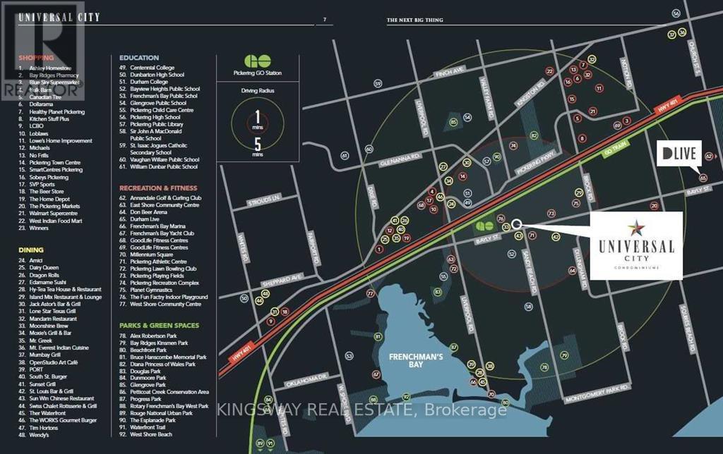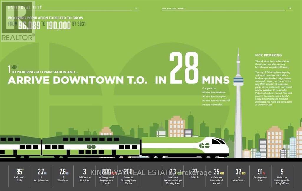 Welcome to Universal City Condos! This stunning and spacious 1+1 bedroom suite features a large primary bedroom and an oversized den that can easily function as a second bedroom, office, or flex space. Enjoy a bright and airy open-concept layout with a full-length balcony perfect for morning coffee or evening relaxation. This unit boasts modern finishes, 9 ft ceilings, stainless steel appliances and quartz countertops. The building offers top-tier amenities including a 24-hour concierge, rooftop terrace with BBQs, outdoor pool, party room, fitness and yoga studios, and more. Unbeatable location-just steps to the GO Station, Pickering Town Centre, schools, and parks. A perfect place to call home or an exceptional opportunity for professionals and small families alike! (id:4555)