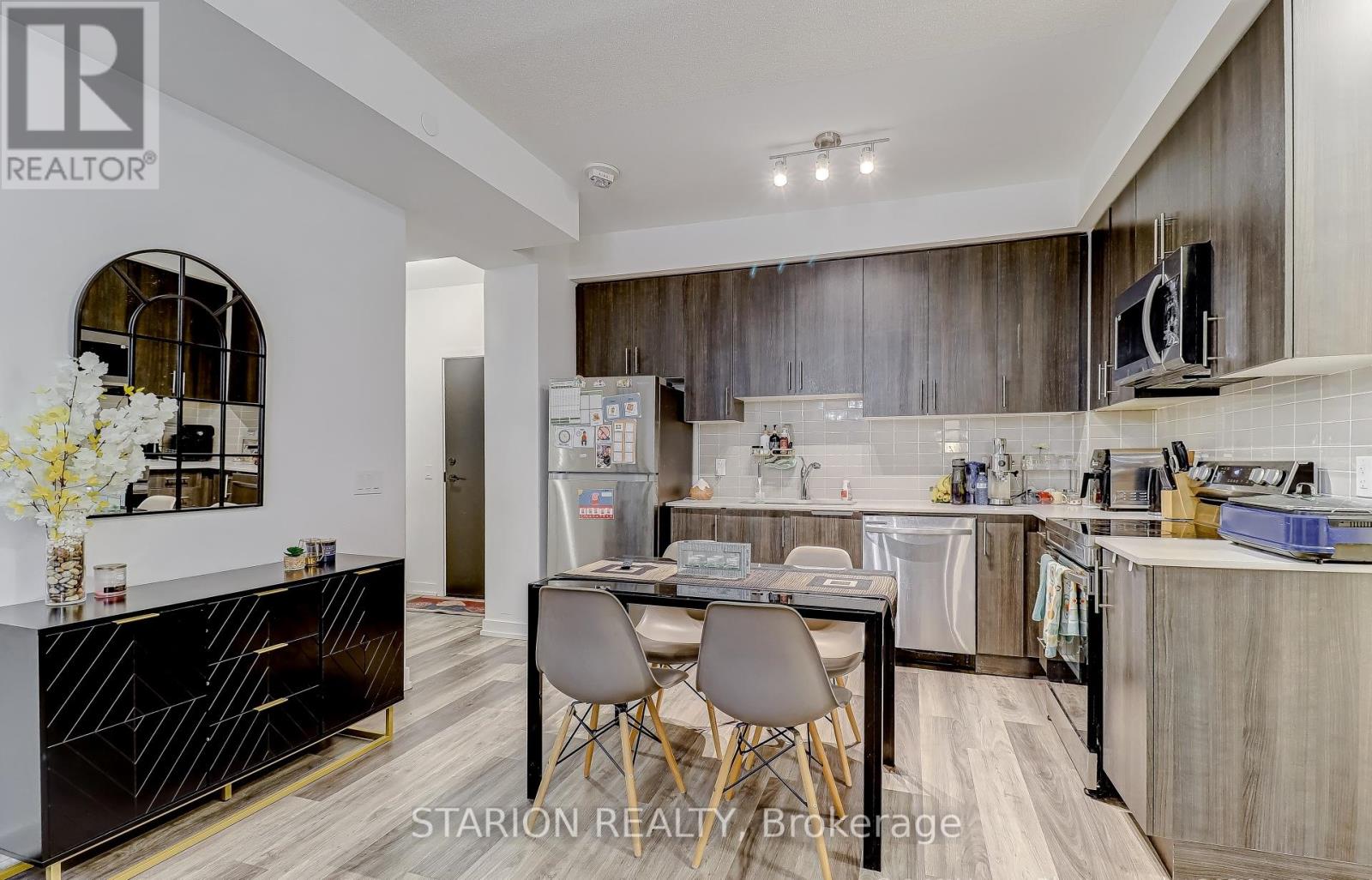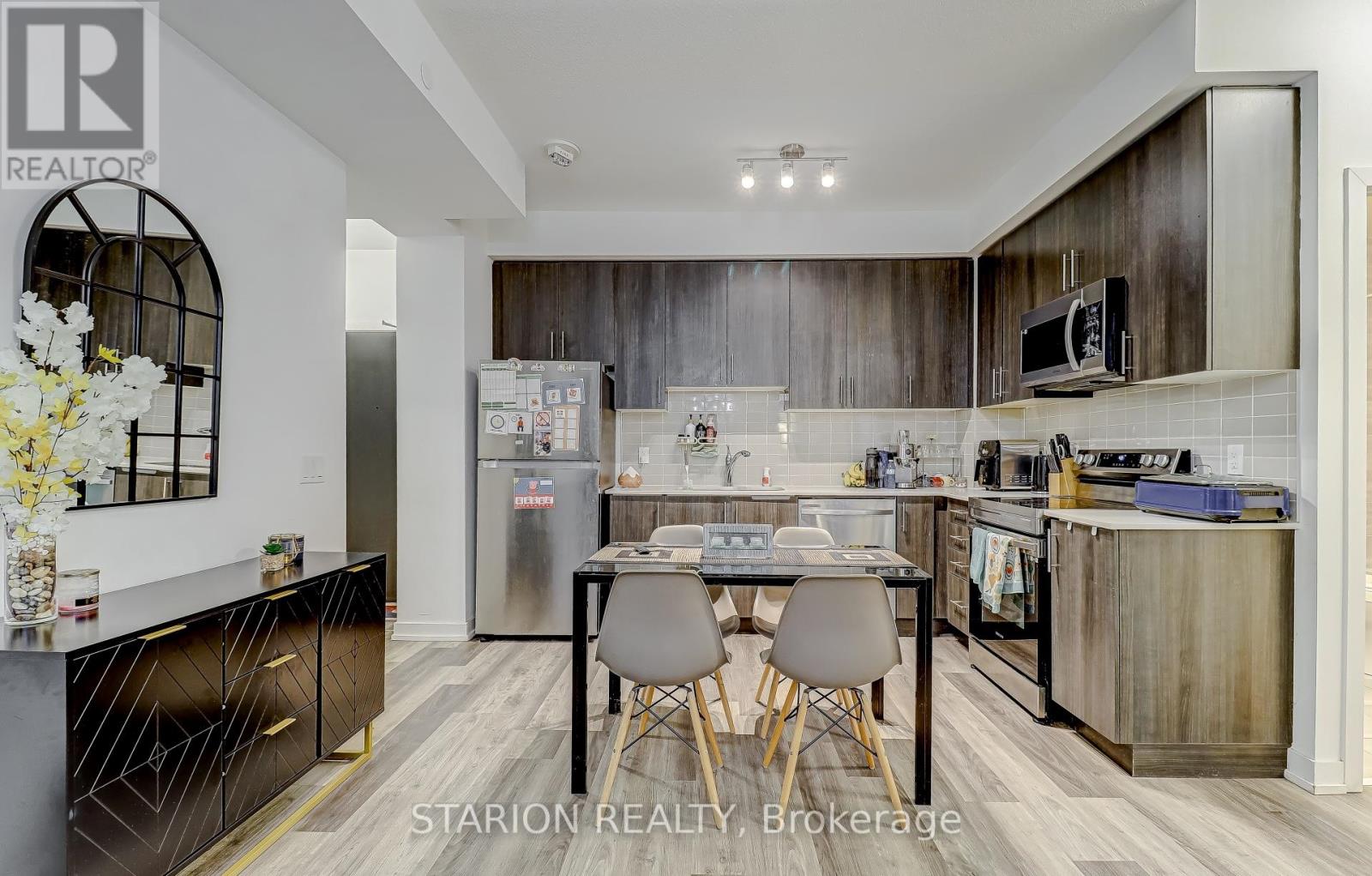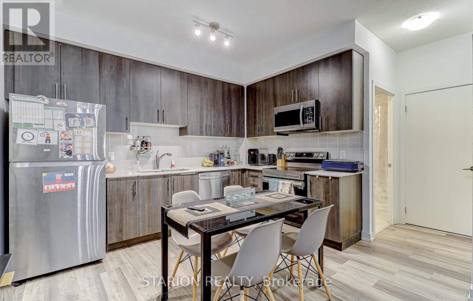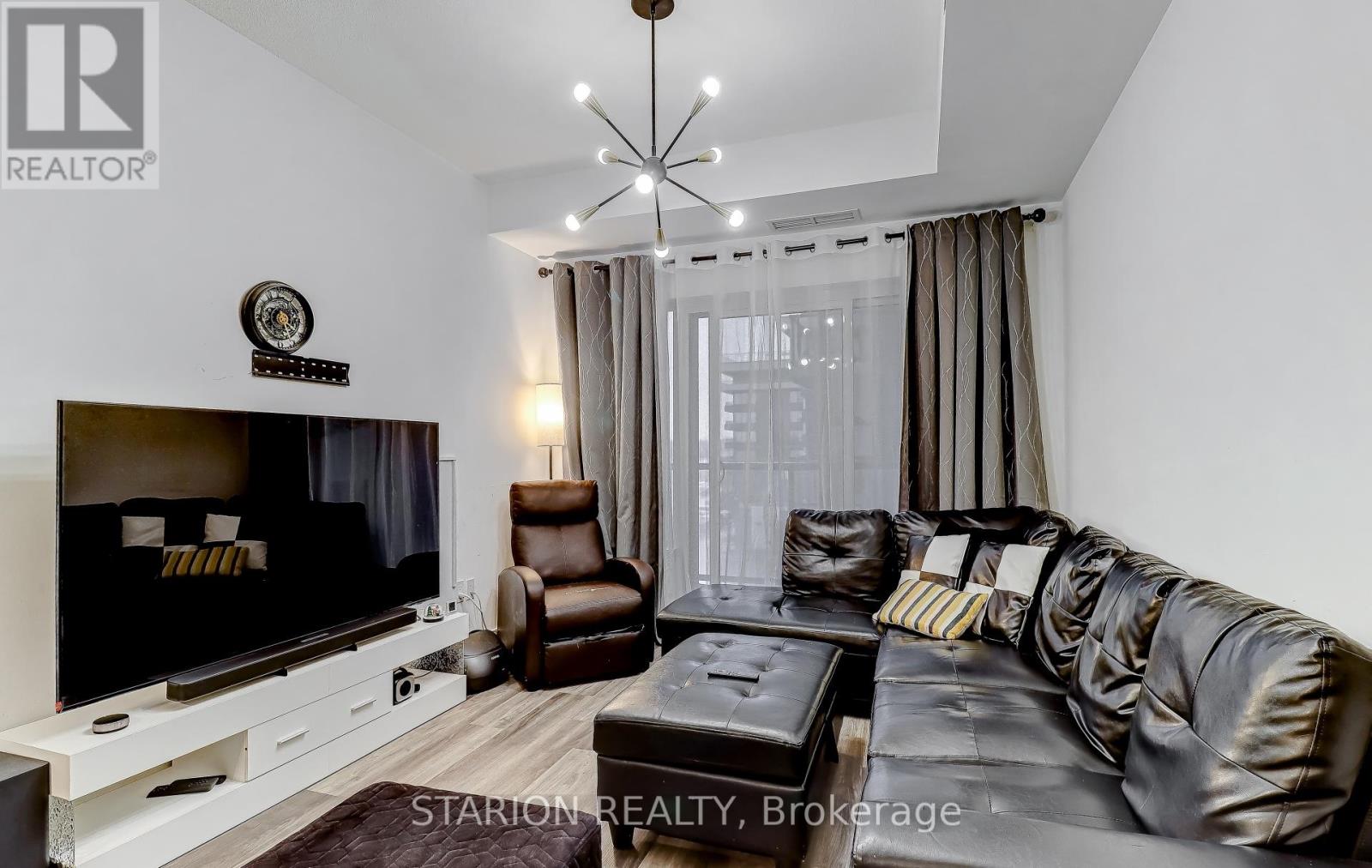 Own this stunning one-bedroom plus den that fits like a bedroom in the sought after UC1 building!This unit is truly a standout. Enjoy the amenities that elevate your lifestyle, including 24hr security, gym, yoga room, pet wash station, party room, guest suite, a rooftop terrace with breathtaking views, and a rooftop pool! Maintenance fees include heating, air conditioning, andRogers high speed internet/cable. Step into a modern suite with an open- concept layout, completed with sleek stainless steel appliances. The bedroom is bathed in natural light, creating a serene sanctuary for rest and relaxation. Experience the ultimate convenience of living walking distance tothe GO Station, Pickering T own Centre, restaurants, & Pickering Waterfront. This is more than just a home; it's a lifestyle! Don't miss out on the opportunity to own this incredible condo in a prime location. Large 1 bedroom + den and only 3 years new condo for sale in Pickering on the 3rd floor of theUniversal City . Just 5 min walking distance to Pickering GO Station where you can take train and reach Downtown Toronto in 30 minutes. One of the largest 1+Den unit in the building with 671sqft of living area and large 105 sqft of balcony with a total 776 sqft of total space. Den is slightly smaller than Master Bedroom and can be used as a 2nd bedroom or small living/family room or entertainment room. Laundry is in the unit. Lots of high end upgrade including large kitchen cabinets, double sink in the kitchen and Luxury Vinyl Plank flooring throughout the unit except in laundry room and washroom. Stainless steel fridge, dishwasher, over the head microwave and stove. Laundry is in the unit.ResortStyle Amenities on the 7th floor including Outdoor pool, Rooftop Terrace and Cabanas, Barbeque Area, Billiard, Lounge, Party Room, Dining Room and Catering Kitchen. Ground Floor Amenities include Fitness Centre, Y oga Studio, Pet Spa and 24hrs concierge. (id:4555)