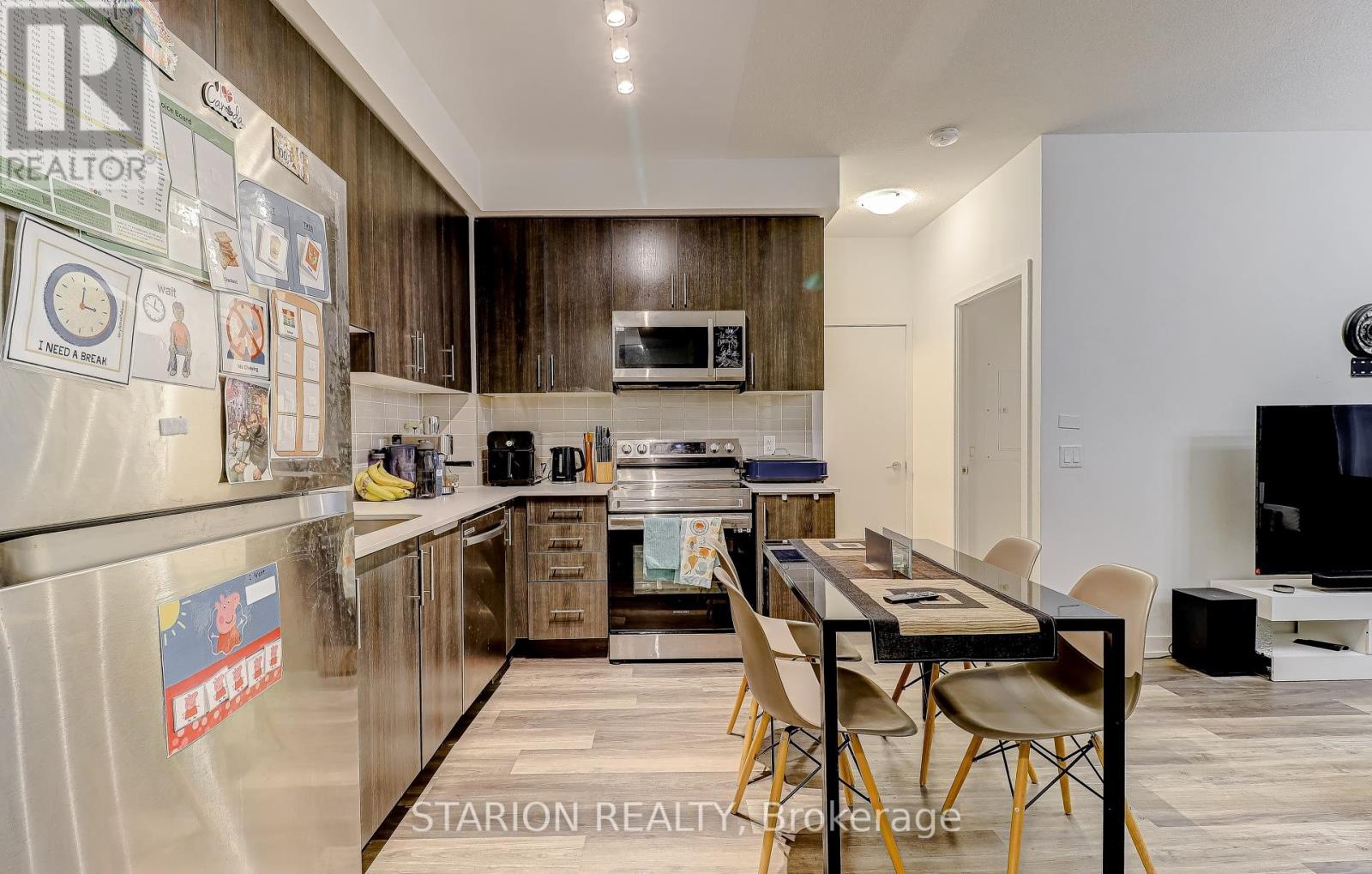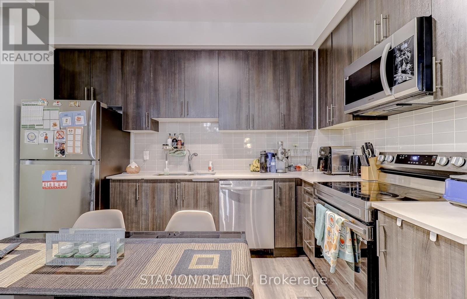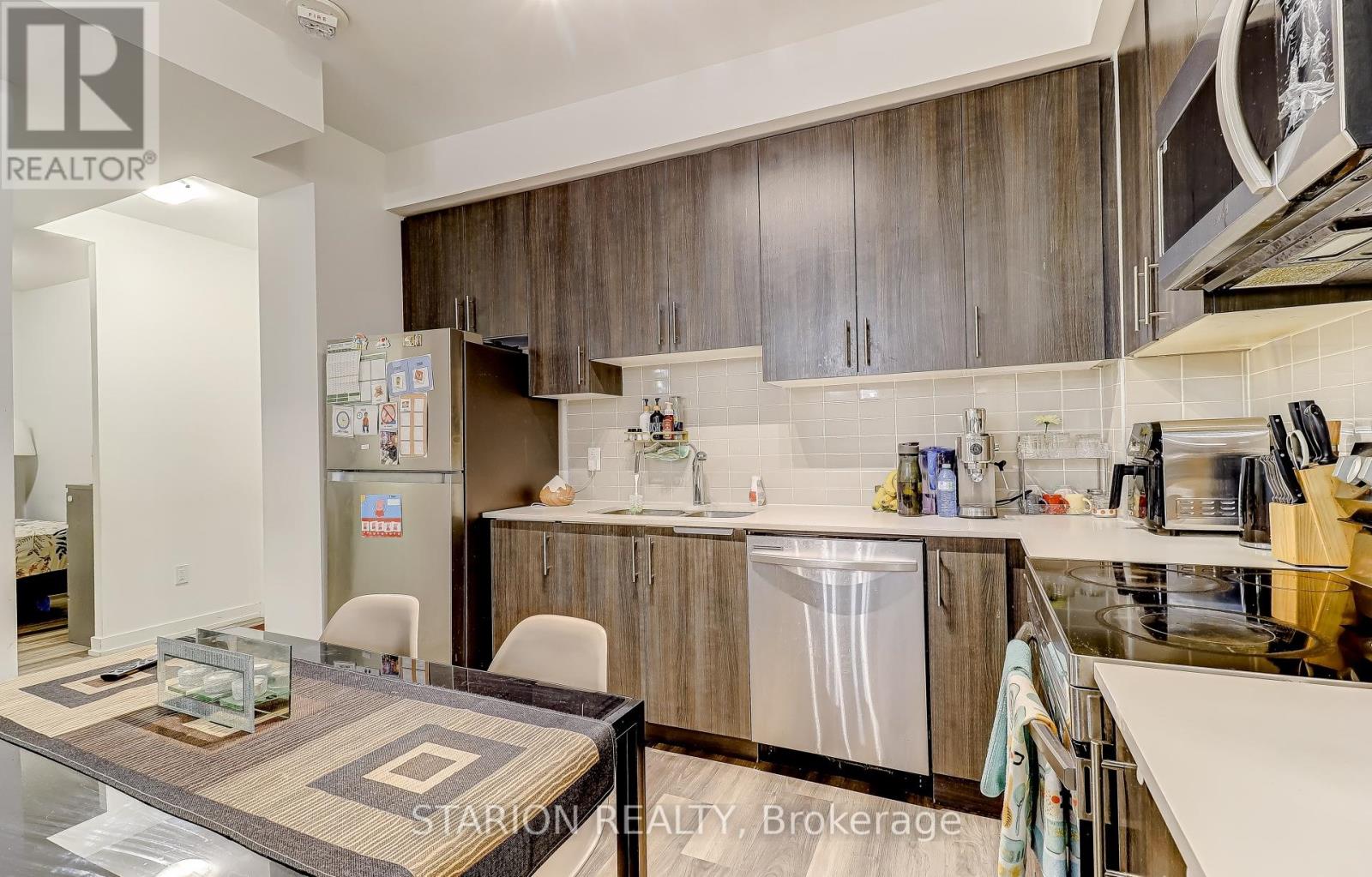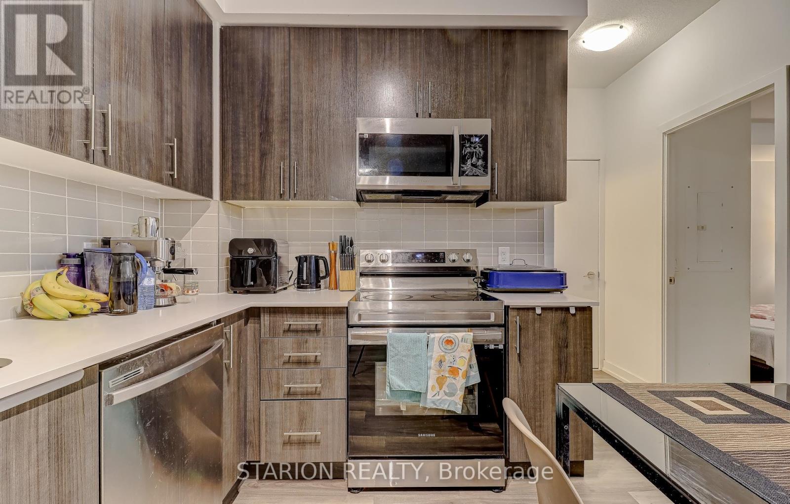 Own this stunning one-bedroom plus den that fits like a bedroom in the sought after UC1 building!This unit is truly a standout. Enjoy the amenities that elevate your lifestyle, including 24hr security, gym, yoga room, pet wash station, party room, guest suite, a rooftop terrace with breathtaking views, and a rooftop pool! Maintenance fees include heating, air conditioning, andRogers high speed internet/cable. Step into a modern suite with an open- concept layout, completed with sleek stainless steel appliances. The bedroom is bathed in natural light, creating a serene sanctuary for rest and relaxation. Experience the ultimate convenience of living walking distance tothe GO Station, Pickering T own Centre, restaurants, & Pickering Waterfront. This is more than just a home; it's a lifestyle! Don't miss out on the opportunity to own this incredible condo in a prime location. Large 1 bedroom + den and only 3 years new condo for sale in Pickering on the 3rd floor of theUniversal City . Just 5 min walking distance to Pickering GO Station where you can take train and reach Downtown Toronto in 30 minutes. One of the largest 1+Den unit in the building with 671sqft of living area and large 105 sqft of balcony with a total 776 sqft of total space. Den is slightly smaller than Master Bedroom and can be used as a 2nd bedroom or small living/family room or entertainment room. Laundry is in the unit. Lots of high end upgrade including large kitchen cabinets, double sink in the kitchen and Luxury Vinyl Plank flooring throughout the unit except in laundry room and washroom. Stainless steel fridge, dishwasher, over the head microwave and stove. Laundry is in the unit.ResortStyle Amenities on the 7th floor including Outdoor pool, Rooftop Terrace and Cabanas, Barbeque Area, Billiard, Lounge, Party Room, Dining Room and Catering Kitchen. Ground Floor Amenities include Fitness Centre, Y oga Studio, Pet Spa and 24hrs concierge. (id:4555)