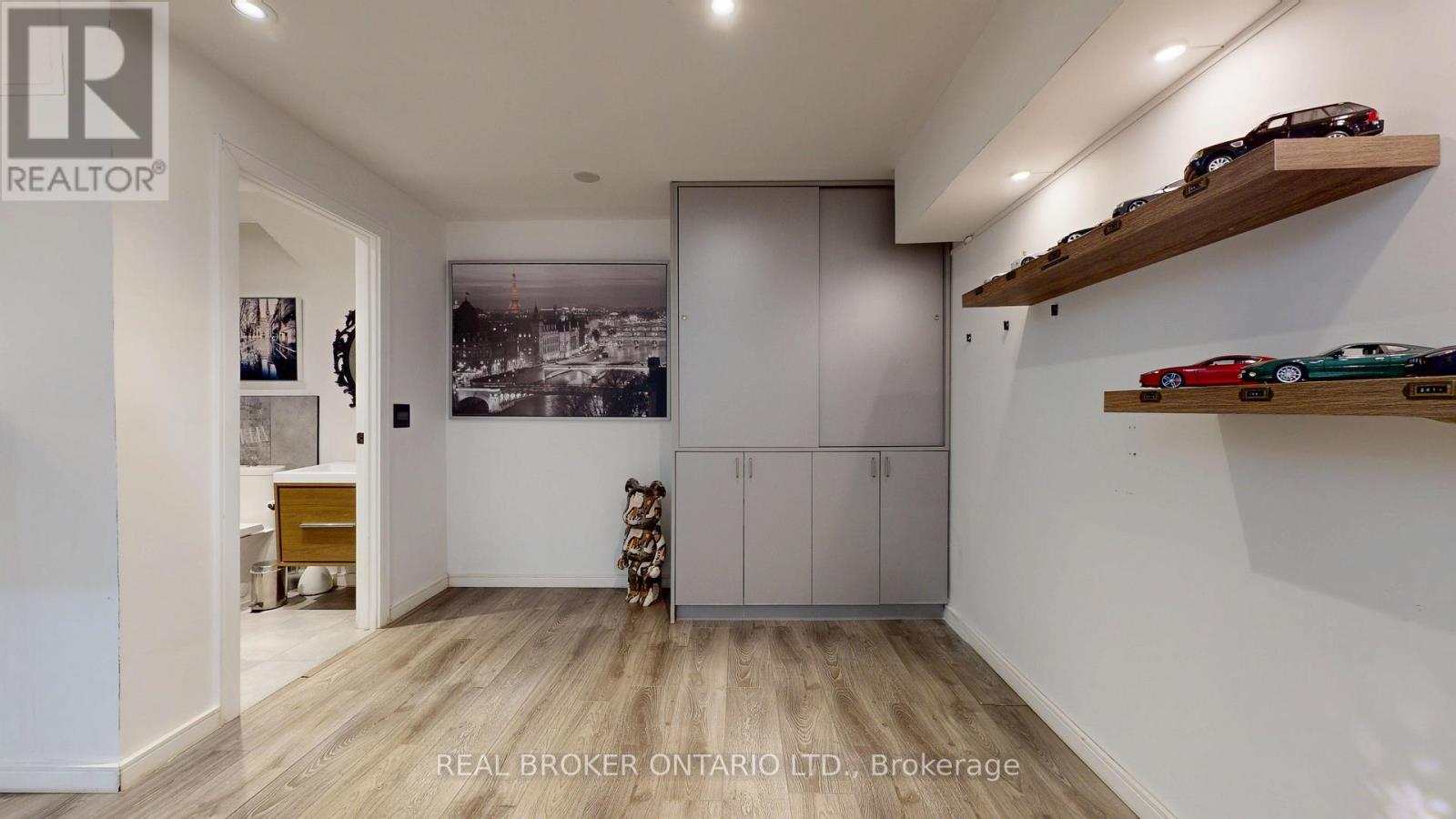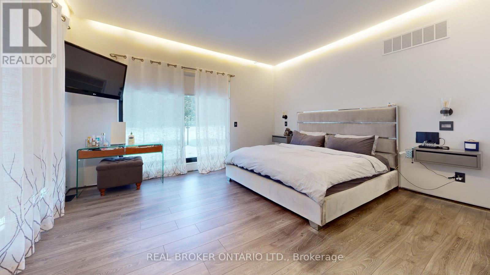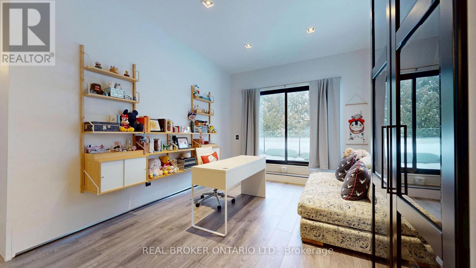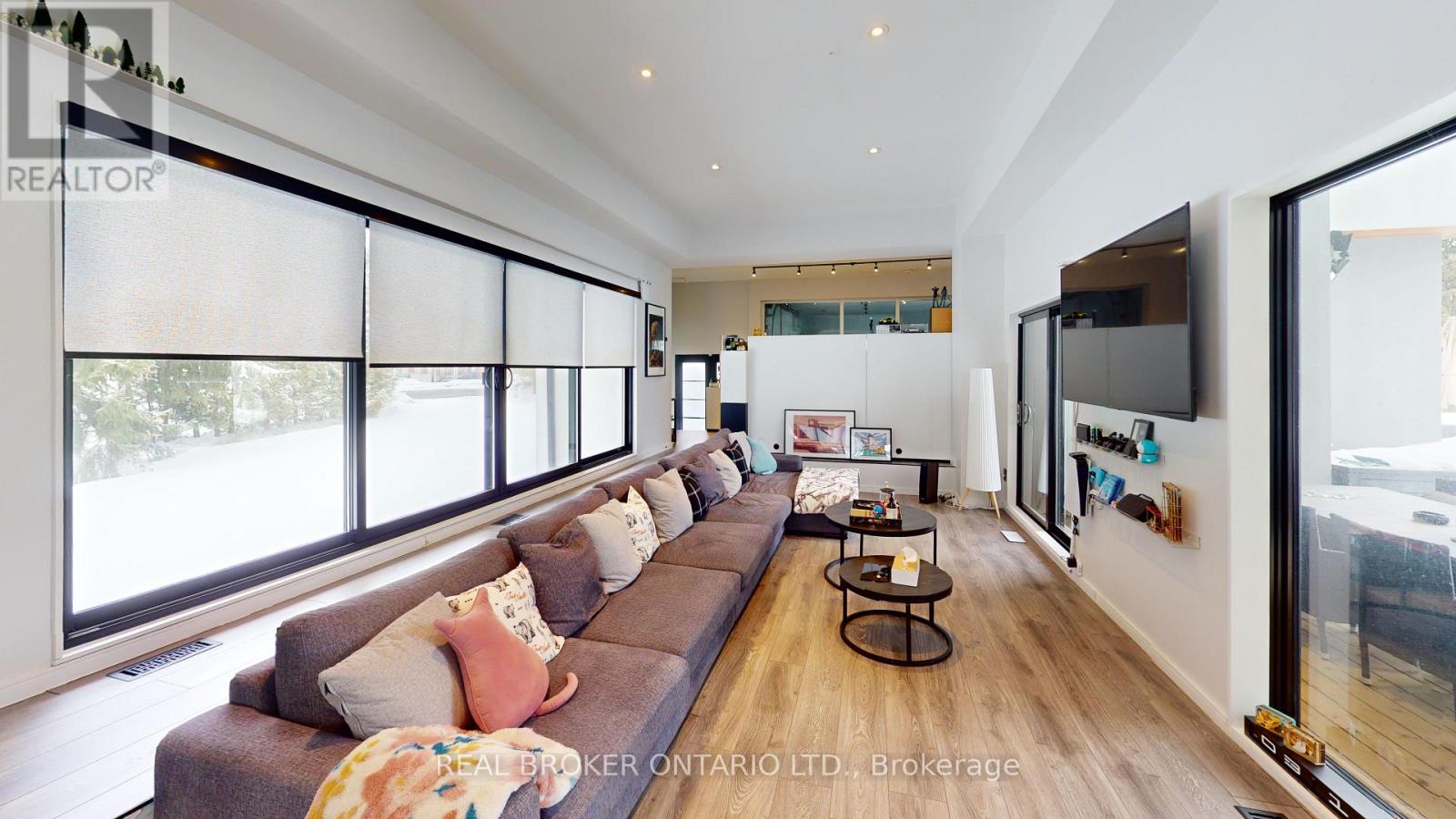 Bold architecture meets refined functionality in this striking custom-built contemporary residence. Designed across three finished levels, this home seamlessly blends luxury, productivity, and entertainment. The main level makes an unforgettable first impression with soaring open-to above ceilings, a floating wood staircase with glass railings, and expansive walls of glass that flood the space with natural light. The chef inspired kitchen is a true showpiece, featuring a dramatic dual-waterfall island, built-in wall ovens, gas cooktop with pot filler, wine storage, beverage fridge, and sleek high-gloss cabinetry - all flowing effortlessly into the dining and living areas anchored by a designer feature wall. A dedicated professional office wing offers glass-partitioned workspace and conference flexibility - ideal for entrepreneurs, creatives, consultants and more. Upstairs, a dramatic gallery overlooks the main level and leads to a boutique-style primary retreat complete with a glass-enclosed walk-in closet and spa-inspired ensuite featuring a freestanding soaker tub, frameless glass shower, floating vanity, and modern tile finishes.Spacious secondary bedrooms and beautifully appointed bathrooms complete the upper level. The fully finished lower level elevates the home's entertainment factor with a custom built-in bar, open recreation space, designer lighting, and architectural sight-lines connecting all levels. A full bathroom adds flexibility for guests. This is more than a home - it is a modern lifestyle property built for those who value design, functionality, and elevated living. The property is being sold in as-is, where-is condition, with no representations or warranties of any kind by the seller. (id:4555)