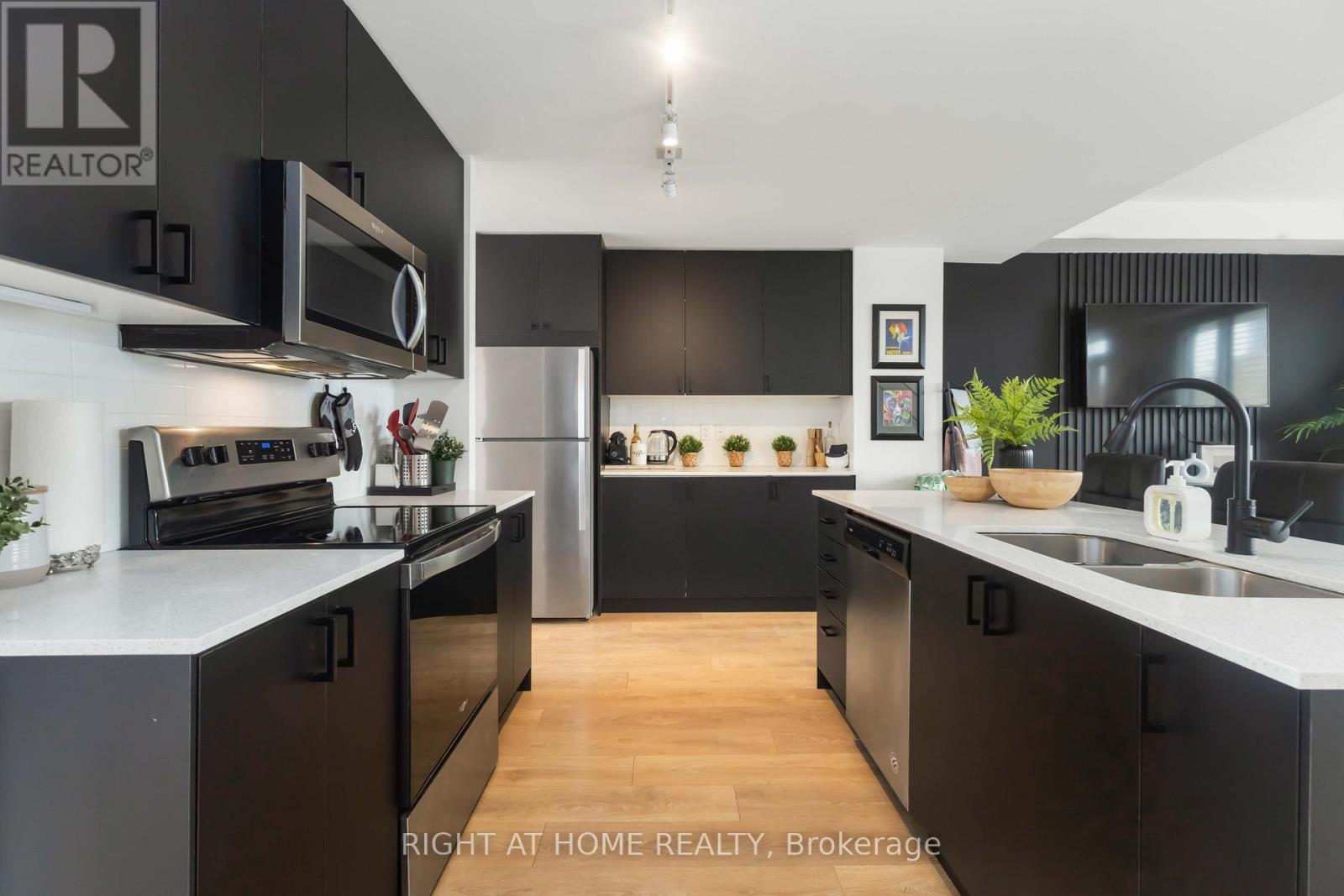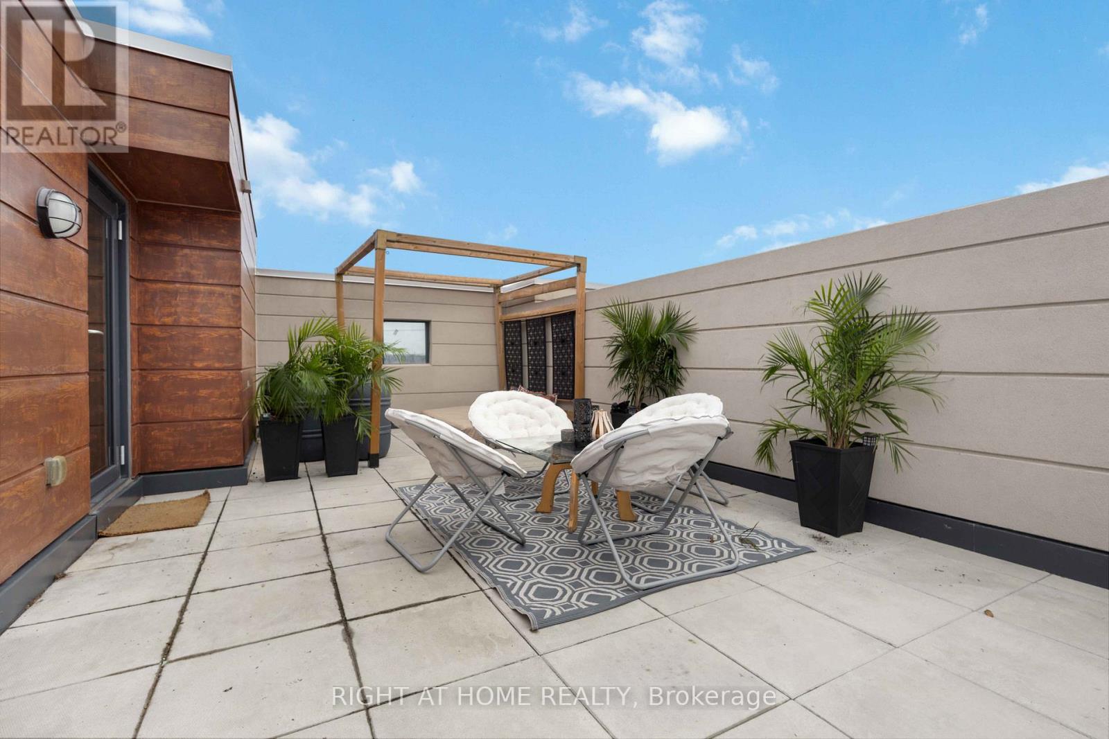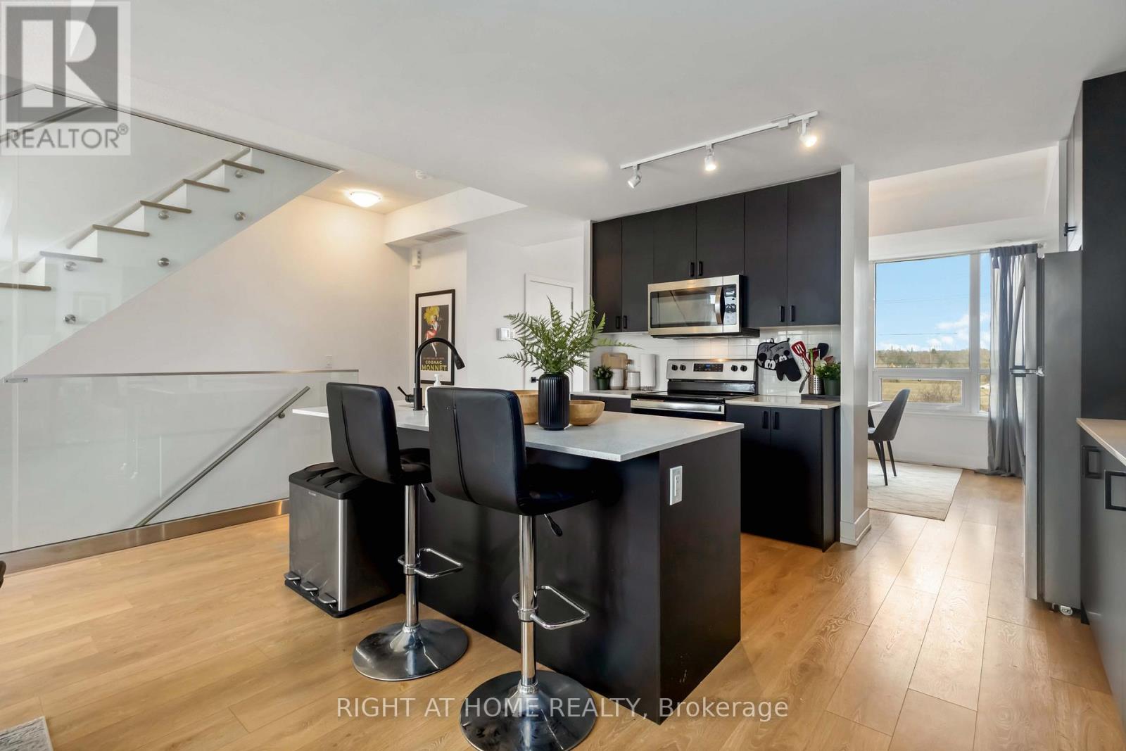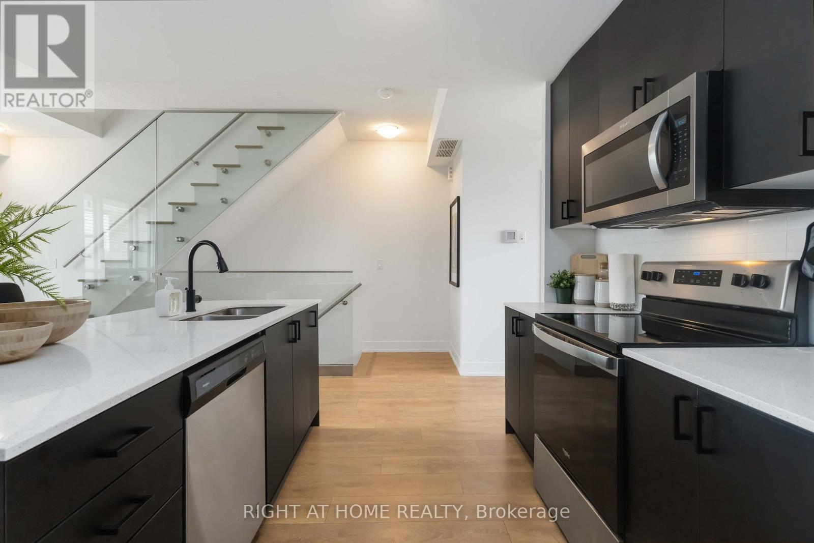 Modern style, resort-inspired amenities, and a location that puts everything within reach. This townhome feels less like a property and more like your own urban retreat. The South Beach-influenced 3-bed, 3-bath layout features a bright open concept kitchen featuring sleek black cabinetry (2025), stainless steel appliances, and a spacious centre island perfect for gathering or cooking. The open concept main floor creates an easy flow from the kitchen to the dining area as well as to the bright living room with modern finishes and is filled with natural light and a walkout to a private deck. The main floor powder room was recently updated (Dec 2025), Upstairs, the primary bedroom includes a 3-piece ensuite and a wall-to-wall closet. The second bedroom has its own balcony, while the third bedroom offers flexibility with other uses such as a home office, nursery, or guest room. When you're ready for some outdoor time, the rooftop terrace delivers..It's ideal for hosting friends, morning coffees, unwinding after work, or taking in panoramic views of the skyline and the surrounding neighbourhood. Monthly fees include Rogers Ignite TV & Internet as well as use of the community amenities including a full fitness centre (no expensive gym membership required), an outdoor pool with lounge areas, BBQ area, party/meeting room, guest suite, and more. The location is a standout being only minutes to Pickering GO, Highway 401, and Pickering Town Centre, with waterfront parks, trails, and the marina close by. Restaurants, shops, schools, and daily conveniences are all within easy reach. Whether you're moving up, scaling down, or simply craving a blend of comfort, style, and convenience, this home delivers it all-move-in ready and waiting for its next chapter. (id:4555)