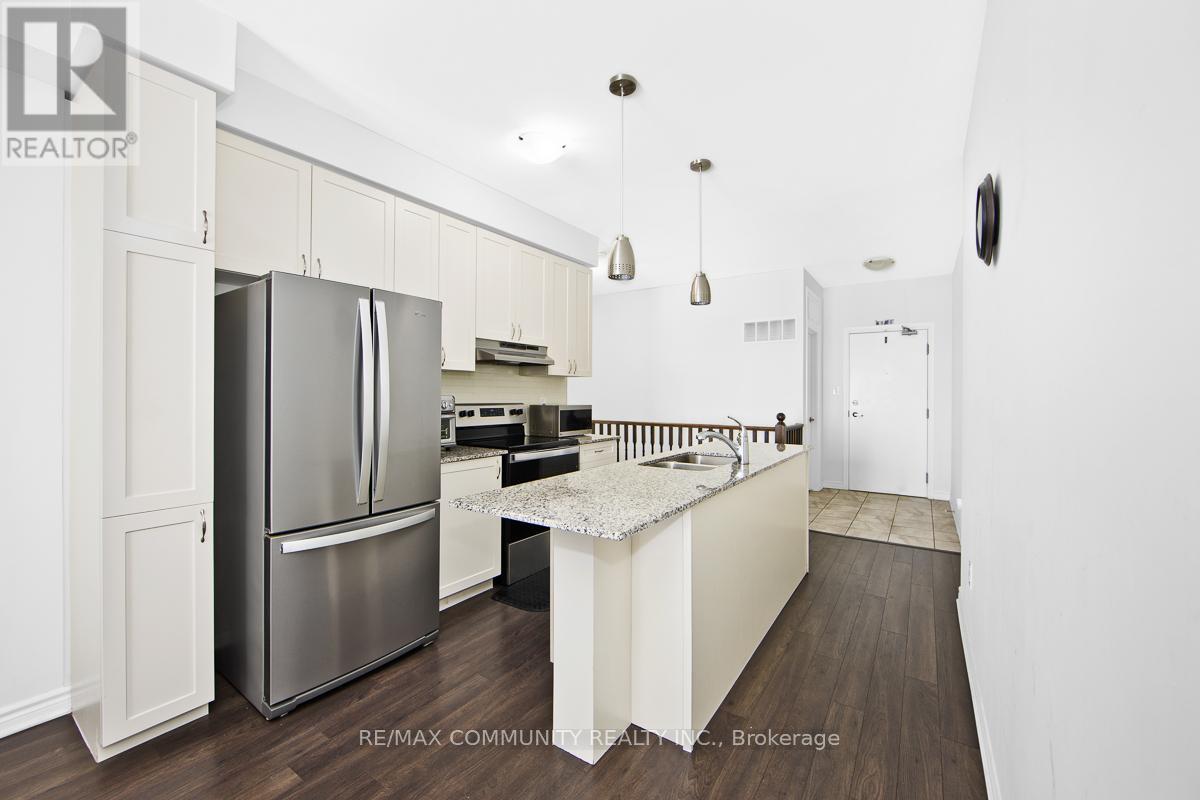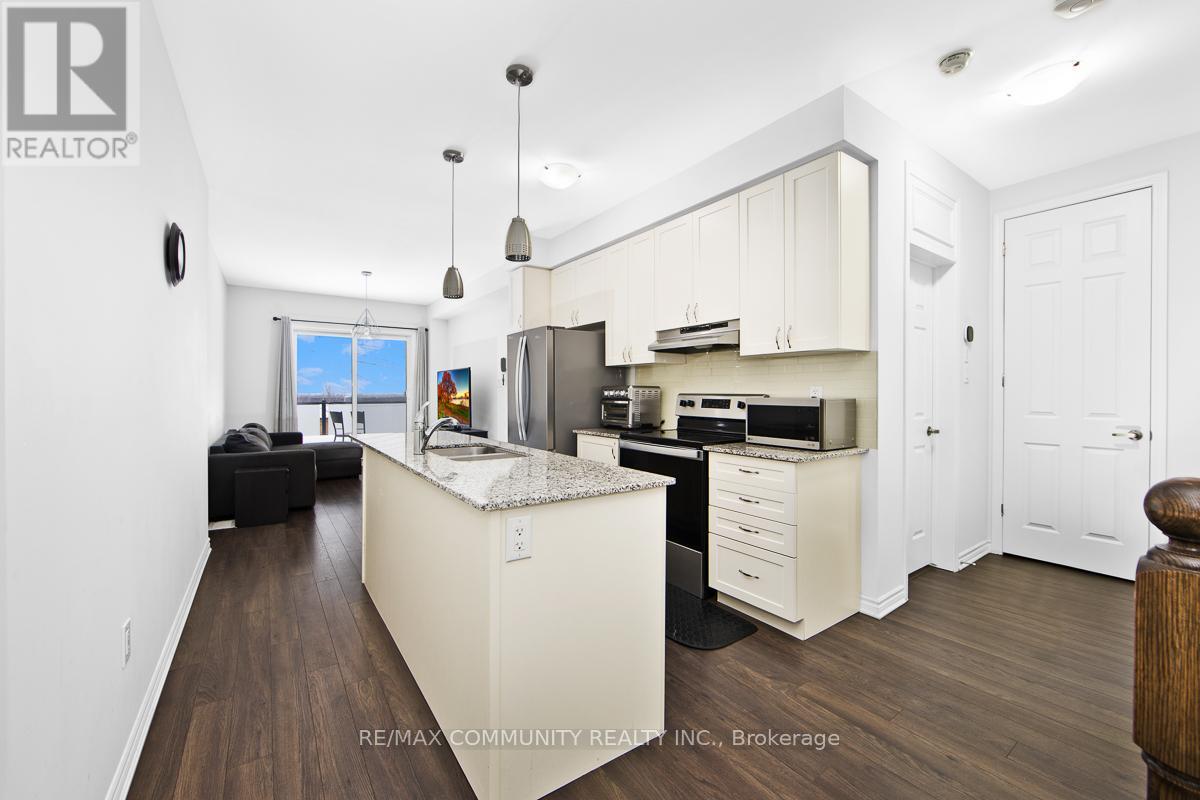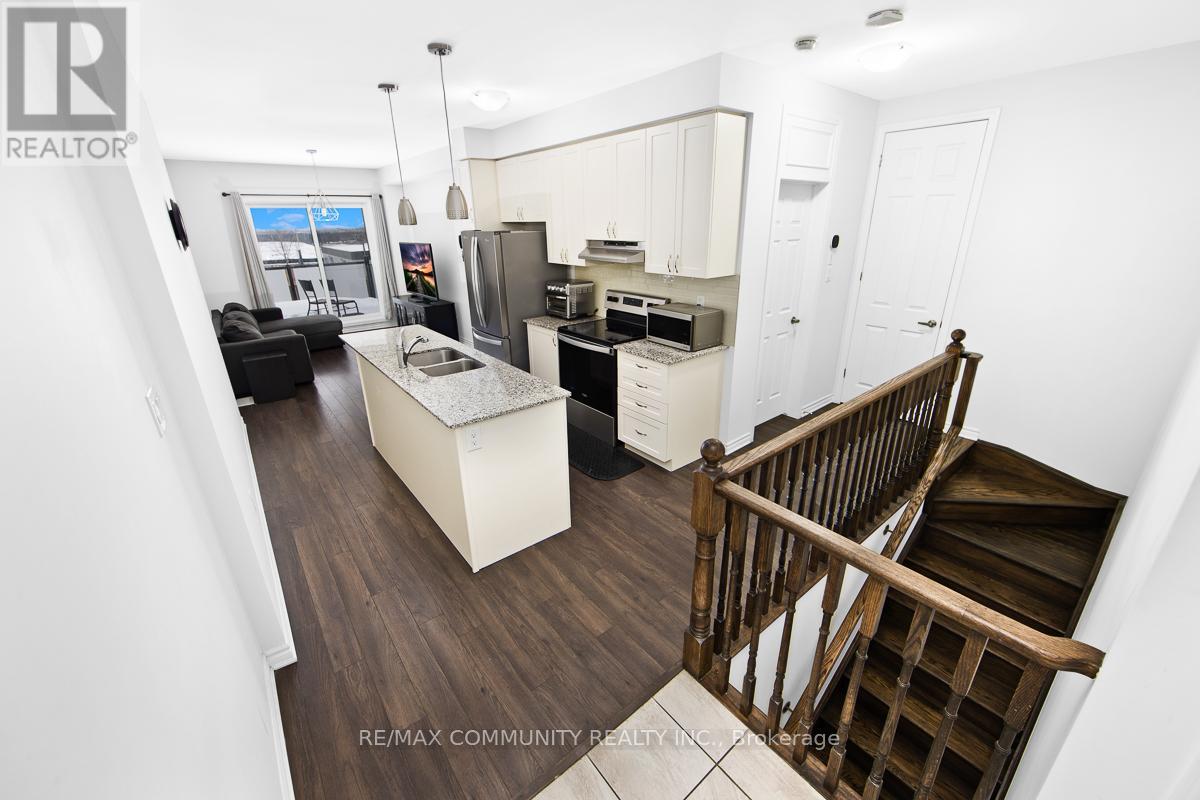 Welcome to this bright and beautifully maintained stacked townhouse in desirable Pickering.Offering approximately 1,190 sq. ft. of finished living space (859 sq. ft. above grade plus 333sq. ft. lower level as per MPAC), this home delivers comfort, functionality, and modern style.The open-concept main level features 9-foot ceilings, laminate flooring throughout, and acontemporary kitchen with granite counters overlooking the living and dining area. Walk out toyour private terrace, ideal for relaxing or entertaining.The main level includes a spacious primary bedroom with a 3-piece ensuite, a second bedroom,and an additional 4-piece bathroom. The finished lower level offers a third bedroom with itsown 3-piece ensuite, providing excellent privacy for guests, extended family, or a home officesetup.Includes attached garage with inside entry plus driveway parking (2 total spaces). Lowmaintenance fees of $312.63/month cover common elements and building insurance.Conveniently located near Taunton Rd & Burkholder Dr, close to schools, parks, shopping,transit, and major highways. Perfect for families, first-time buyers, or investors seeking aturnkey opportunity in a growing community.(Listing Photos Are Illustrated With Virtual Staging). (id:4555)