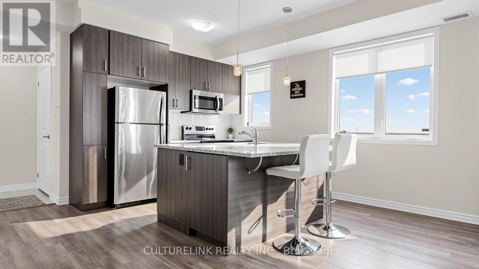 Stylish Mattamy Condo Townhome in the highly desirable Seaton, Pickering! This turnkey, bright, and spacious 1,656 sq.ft. home features 2 bedrooms and 3 bathrooms, 9-ft ceilings on the main floor, and large windows that provide abundant natural light throughout. The main-floor living room can be converted into a third bedroom, offering flexible living space. The open-concept kitchen boasts a large centre island, granite countertops, and stainless steel appliances, with a walkout to a spacious balcony-perfect for BBQ gatherings while enjoying unobstructed east-facing views. Elegant oak stairs add a refined touch to the home. The large primary bedroom offers two walk-in closets and a double-sink ensuite. Second-floor laundry provides added everyday convenience. Enjoy direct access to the garage and a private driveway. Situated in a family-friendly neighbourhood, this home is close to Seaton hiking trails, golf courses, Highways 401 & 407, Pickering GO Station, and Pickering Town Centre. An ideal opportunity for first-time buyers or young families. Don't miss this fantastic opportunity! (id:4555)