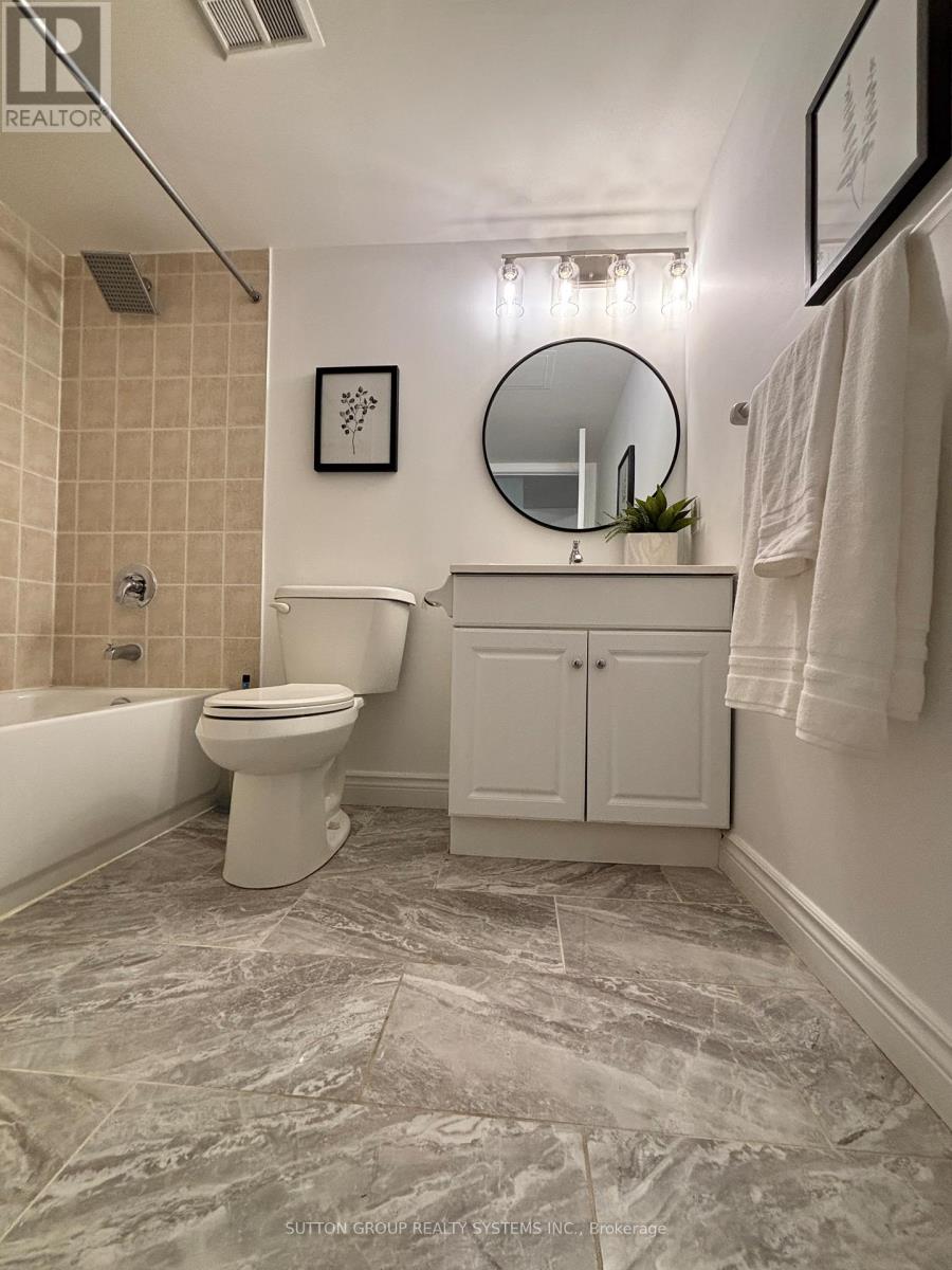 2+Huge Den! Welcome to the Tridel Community - one of Pickering's most sought after buildings, perfectly situated in an unbeatable walkable, central location! Just steps from the Shops at Pickering Town Centre, the Central Library, Go Transit and the Recreation Centre, this Beautifully Renovated & Sunny West-Facing Corner Suite features a Great Layout including 2 Bedrooms with Walk-In Closets, Plus a Huge Den - which was used as a 3rd Bedroom, 2 Updated Bathrooms, In-suite Laundry and convenient Underground Parking and a Separate Storage Unit. This spacious home with over 1000 sq.ft. space has been Completely Updated featuring a galley-style kitchen with Granite Countertops, Brand New Stainless-steel Appliances, Freshly Painted Cabinets with New Hardware. Both Bathrooms have also been updated with New Paint, Light Fixtures, Stylish Mirror and rain shower head, complemented by Modern Tile Floors. The Bedrooms feature New Ceiling Lighting and High-quality, Waterproof Laminate Floors. The main hall closet has been updated with New Mirror Doors and Tile Floors, and the entire condo has been freshly painted including doors and baseboards. The Open-Concept Layout with Large Windows in every room make this home bright and airy providing access to an open Balcony for outdoor enjoyment.The building itself is exceptionally maintained and offers an Impressive Range of Amenities, including Party Room with kitchenette, an Entertainment Lounge for games, Billiards Room and ping pong facilities, Library, Fitness Centre, Sauna in the Change Rooms, an Outdoor Pool, and an Outdoor Patio equipped with BBQ Area for maximum summer enjoyment! Additional conveniences include a Car Wash station, Bike Storage, 24-hour Gated Security and plenty of Visitor Parking. Located just minutes from Highway 401, this residence presents a wonderful opportunity to enjoy vibrant,amenity rich living in the heart of Pickering.Move in and experience a lifestyle defined by comfort, convenience and community! (id:4555)