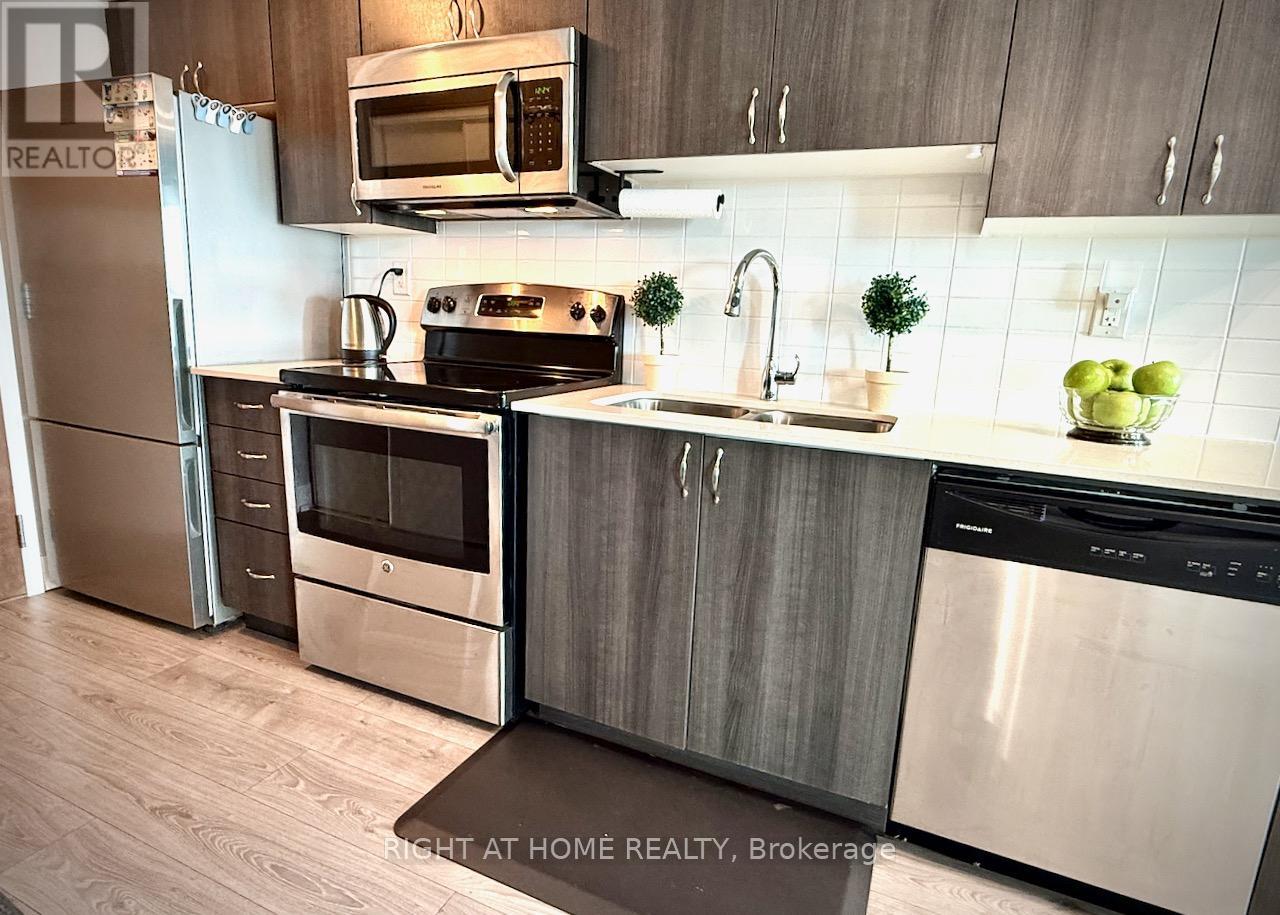 This exceptional opportunity to own one of the best 1+1 layouts in San Francisco by the Bay. This bright and airy 618sq. ft. south east-facing condo offers a smart, versatile floor plan that easily functions as a home office. It also includes an owned underground parking space (A51), ideally located for ultimate convenience near the elevator.The open-concept kitchen features quartz countertops, stainless steel appliances, and a modern backsplash-perfect for both everyday living and entertaining. Recent upgrades include new laminate flooring, Paint, and bathroom vanity (2020), sleek flat ceilings, a Dbl closet, and a balcony overlooking a quiet residential street lined with trees and townhomes-providing beautiful east-south exposure natural light along with peaceful privacy.Located in one of the fastest-growing communities in the GTA, this condo is an outstanding choice for both homeowners and investors. Residents enjoy resort-style amenities including 24-hour security, a fully equipped gym, yoga studio, indoor pool, steam room, hot tub, sun deck, meeting/conference room, and an impressive party room. The complex also offers direct access to convenient retail shops such as a pharmacy, pizza shop, dental clinic, and walk-in clinic.Just steps to the Pickering GO Station, groceries, shopping, restaurants, and Pickering's stunning waterfront with parks, beaches, marinas, and a charming nautical village-this is lakeside living with true urban convenience. Experience the perfect blend of lifestyle, location, and value in one of Pickering's most desirable communities. (id:4555)