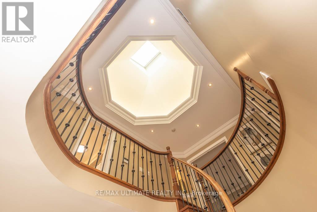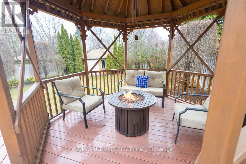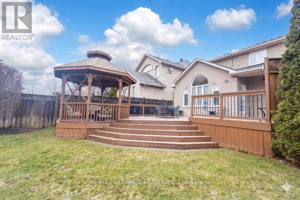 Redefine luxury at 1726 Rockwood Drive, a 5,000+ sqft total living space custom-built 4+1 bedrooms and 4.5 bathrooms in Pickering's elite Highbush area. This home impresses from the start with an 18-foot foyer and premium finishes, including porcelain tile and 8-inch crown moulding. The chef's dream kitchen features solid merlot maple cabinetry, granite surfaces, and a servery, while the family room provides a cozy retreat with a gas fireplace and custom built-ins. A dedicated main-floor office and a service staircase add to the home's thoughtful functionality. Upstairs, four spacious bedrooms are anchored by a landing with a large skylight with remote-controlled blind. The primary suite features a 5-piece ensuite, while secondary bedrooms boast vaulted ceilings and semi-ensuites. The property's exterior is equally impressive, featuring a full interlock driveway, a massive 3-tier deck using composite tops, cedar facia/railings, a gazebo, and a natural gas BBQ, sprinkler system, and a custom garden shed on a concrete pad with a 30-amp generator link to supply power to the main home. The lower level is a fully self-contained secondary suite with a separate walk-up entrance, full kitchen, recreation room and laundry room, offering excellent multi-generational potential. The two-car garage is a dream for car enthusiasts, featuring a car lift and a 40-amp pony panel. Located with rapid access to the 401, 407, and GO Transit, and just steps from the nature trails of Rouge National Urban Park, this property is a rare find that checks every box for the discerning buyer. (id:4555)