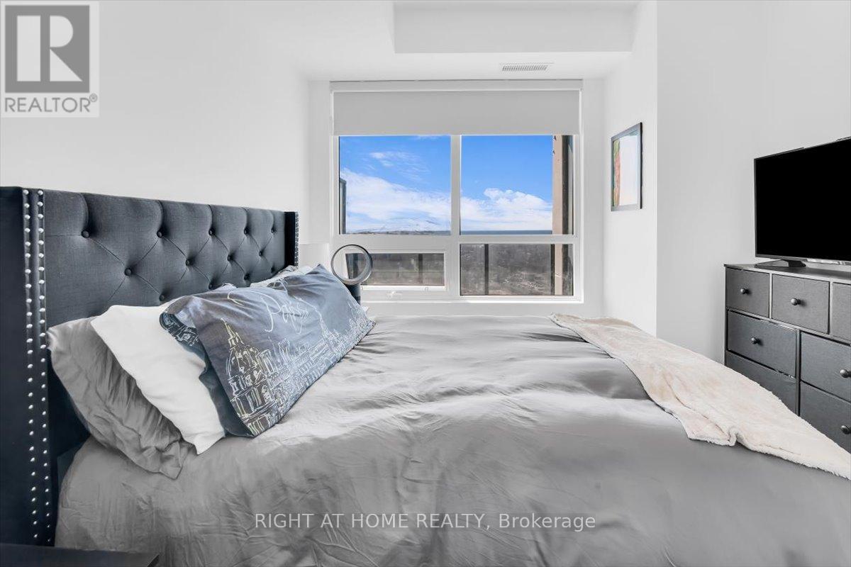 Wonderfully maintained 2-bedroom, 2-bathroom suite. Situated on a higher floor, this thoughtfully designed unit showcases pride of ownership throughout, featuring numerous upgrades that enhance both style and functionality. Enjoy a bright and spacious layout with 9-foot ceilings, creating an open and airy feel, along with a private ensuite in the primary bedroom for added comfort and convenience. Take in stunning panoramic lake views from your living space, offering a serene backdrop for everyday living. This exceptional unit also includes parking and a locker, providing valuable extra storage and ease of living. Residents enjoy access to top-notch building amenities, including a 24-hour concierge, a fully equipped gym with a dedicated yoga room, a stylish party room, and a gorgeous pool with a BBQ terrace-perfect for relaxing or entertaining. Ideally located in a growing, vibrant community close to amenities, the waterfront, and just a short distance to the Pickering GO Station, this is a fantastic opportunity to call a modern, move-in-ready condo home. Tenant responsible for Hydro and water consumption. Internet included in rent. (id:4555)