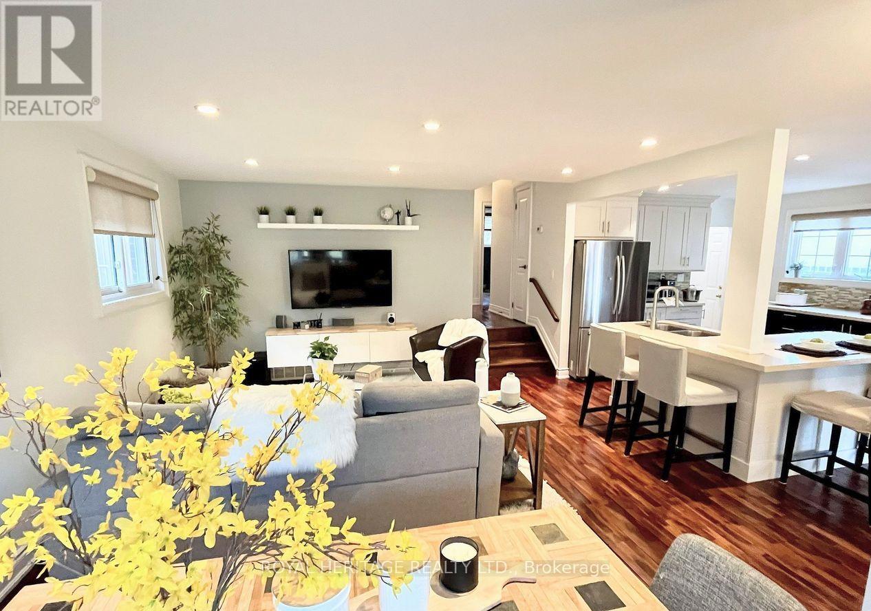 Welcome to this beautifully maintained brick back split bungalow offering 4 bedrooms and 2 updated bathrooms in one of Pickering's most sought-after lakeside neighbourhoods. Warm, inviting, and thoughtfully updated, this home delivers comfort and style in a prime family-friendly location. Step inside to a bright main floor featuring hardwood flooring throughout, large casement windows, and pot lights that fill the space with natural and ambient light. The renovated kitchen is a standout, complete with stone counter tops, custom wood cabinetry for which there is plenty, built in chef's desk, stainless steel appliances all surrounding a large v shaped island perfect for everyday living and entertaining. Three good size bedrooms complete the upper level. A convenient side entrance with hardwood stairs leads to the spacious lower level; currently used as the primary bedroom retreat. This impressive space includes a walk-in closet w/laundry & a 3-piece bathroom with potential for multi generational living or a private suite. Plus over 50 wide lot, an exceptionally large crawlspace/storage area, expansive side deck for entertaining, casement windows for easy cleaning and fixed window treatments. Located on a quiet, welcoming street, this home is just minutes from Lake Ontario, GO Station, Highway 401, parks, schools, and all the amenities that make Pickering such a desirable place to live and this property the place you will love to call home. (id:4555)