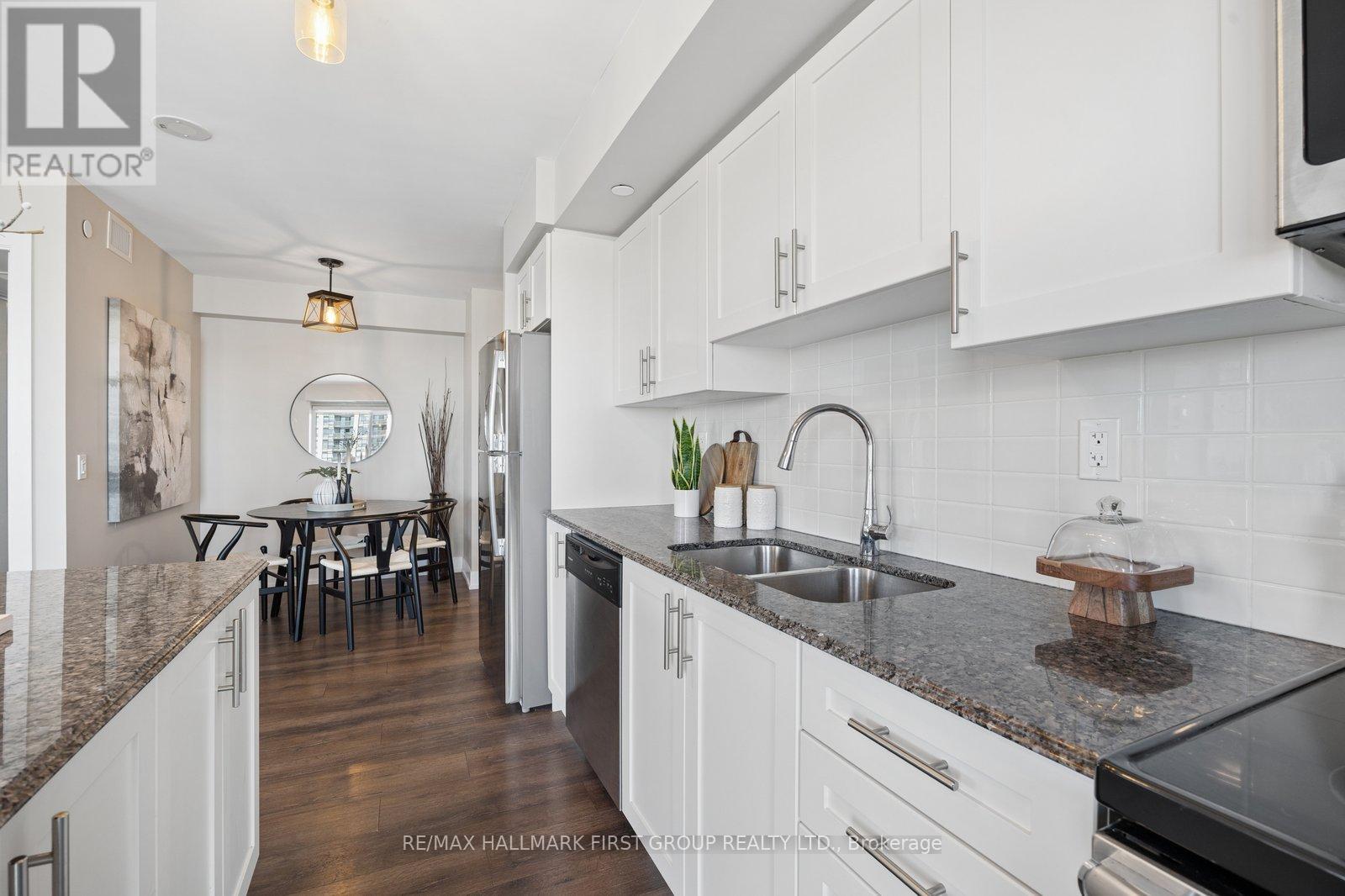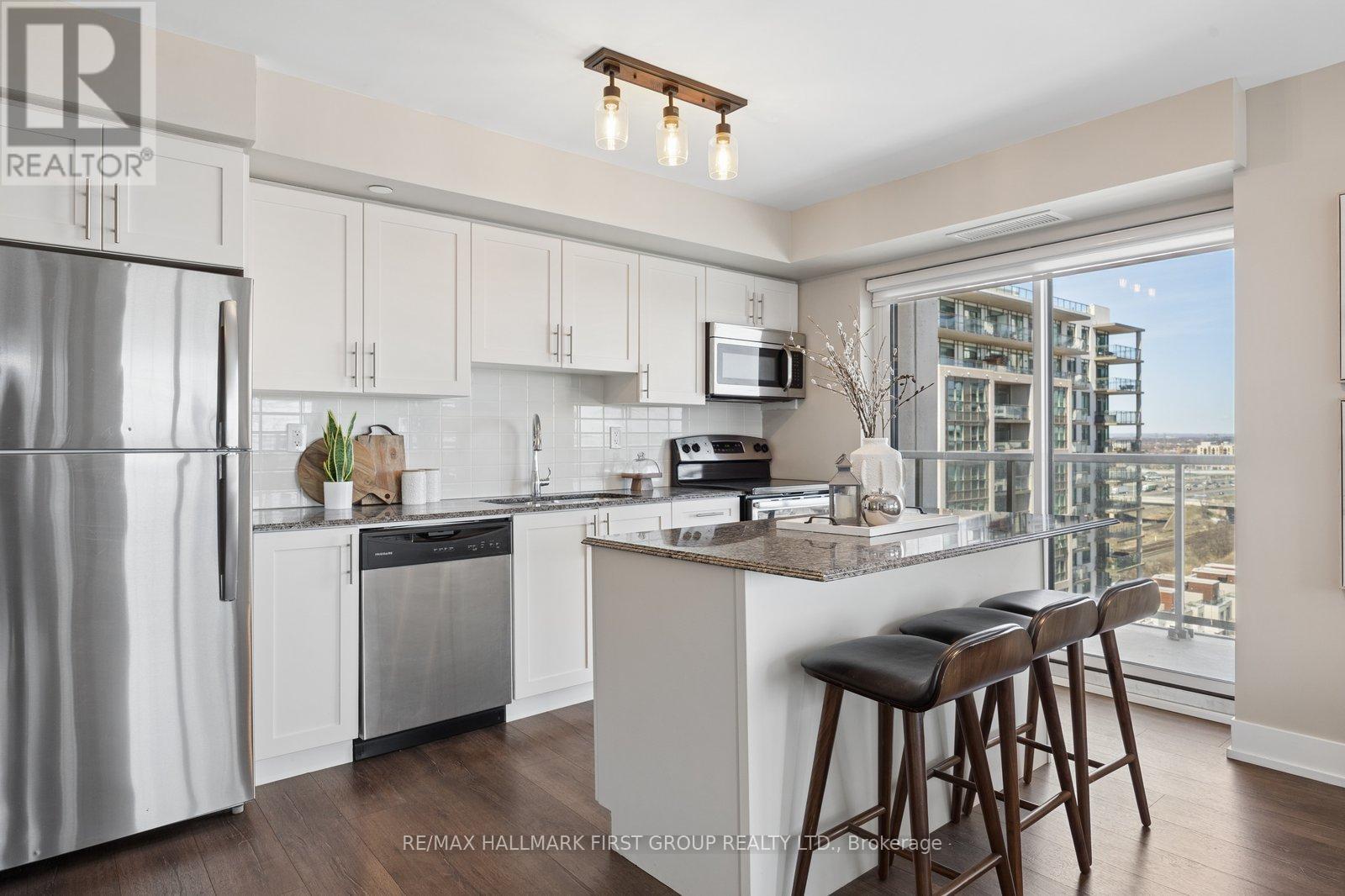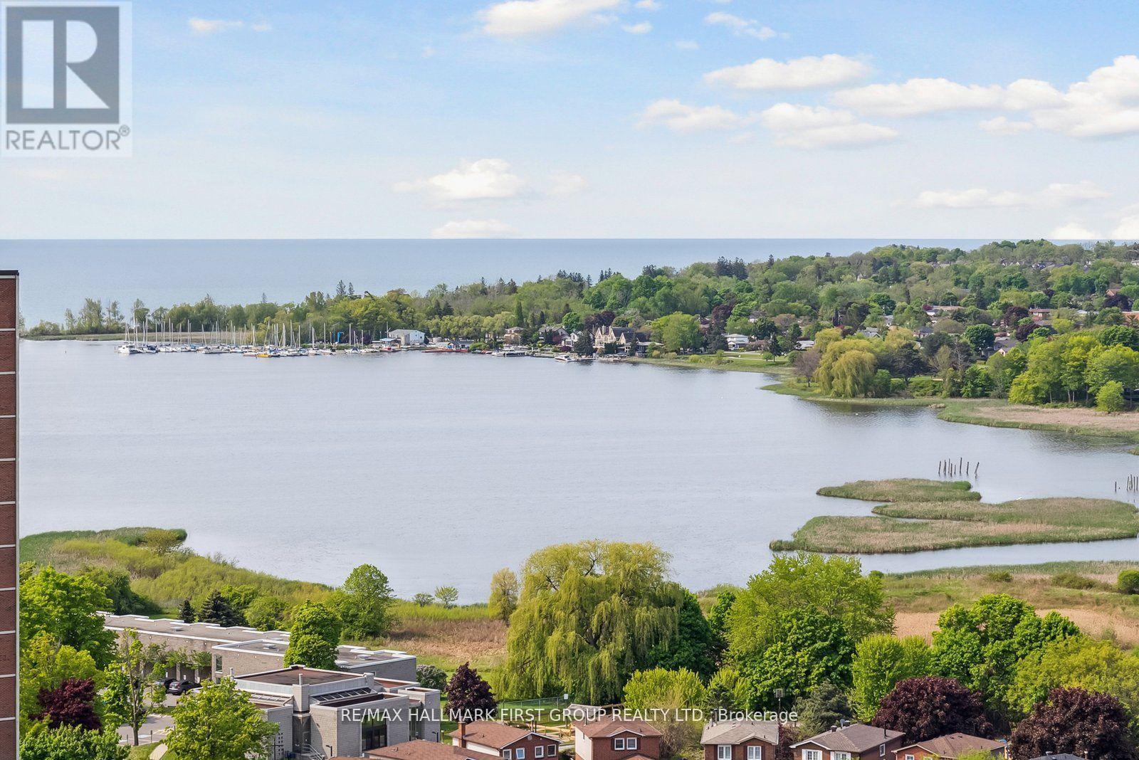 Welcome to this beautiful spacious two-bedroom plus den, two full baths condo in a highly sought-after building. Bright well-designed layout that blends modern finishes with everyday comfort. From the moment you enter, you are greeted by a sun filled impeccably maintained interior with expansive windows showcasing stunning views of the Bay, filling the space with natural light, complemented by sleek laminate flooring throughout. The modern off-white kitchen features stainless steel appliances, granite countertops, and a tasteful backsplash, seamlessly flowing into the open-concept living and dining areas, ideal for both entertaining and relaxed daily living. The primary bedroom offers a private retreat with a walk-in closet and a well-appointed four-piece ensuite, while the second bedroom is generously sized with a large window, providing flexibility for guests or a home office. Residents enjoy exceptional amenities including a 24-hour concierge, indoor pool, hot tub, and outdoor BBQ area, all designed to enhance lifestyle and convenience. Ideally located within walking distance to the Pickering GO Station and just minutes to Highway 401, Pickering Town Centre, the waterfront at Frenchman's Bay, and Pickering Casino Resort, this move-in ready residence offers outstanding connectivity, walkability, and lifestyle appeal. (id:4555)