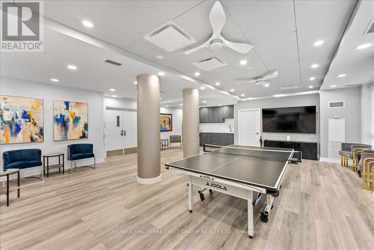 Welcome to Liberty Place by Tridel - an exceptional opportunity in the heart of Pickering, perfectly suited for first-time buyers and savvy investors alike. Ideally located just steps to Pickering GO Station and Pickering Town Centre, this well-managed building offers unmatched convenience & lifestyle appeal. Enjoy peace of mind with 24-hour gated security, underground parking, and a private storage locker. Residents are welcomed by a modern lobby, updated hallways & beautifully maintained, award-winning gardens. The all-inclusive maintenance fees provide excellent value & simplify budgeting - an attractive feature for both homeowners & investors seeking predictable expenses (includes internet). This thoughtfully designed suite features a spacious entryway & a functional layout. A dedicated den is ideal as a home office, while the galley-style kitchen offers ample cabinetry, generous counter space, updated appliances, & a breakfast bar overlooking the open-concept living and dining area. Freshly painted with modern laminate flooring throughout, the unit is bright & inviting with abundant natural light & a walk-out to a private balcony. The large primary bedroom includes a walk-in closet, while the renovated, spa-inspired 4-piece bathroom adds a touch of luxury. Ensuite laundry enhances everyday convenience. This turnkey unit also includes a spacious locker for additional storage. Ample visitor parking & the potential to rent a second parking space. Residents enjoy resort-style amenities, including an outdoor pool, BBQ area, party room, billiards room, library, & media room - perfect for both relaxing & entertaining. Unbeatable location within walking distance to the library, recreation centre, gyms, grocery stores, restaurants, parks, medical services, banking, & more. Quick access to Highway 401. Move in, rent out, or invest with confidence -this is an outstanding opportunity in a high-demand, transit-oriented community. *Pet restriction: 1 pet, 25lbs max* (id:4555)