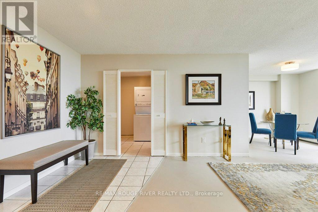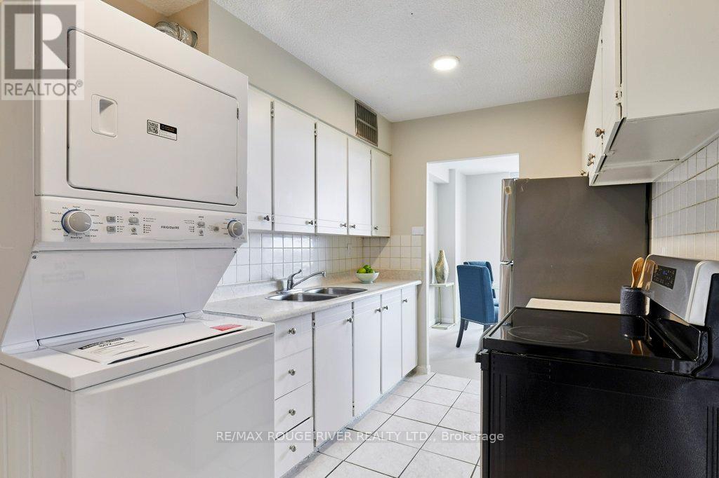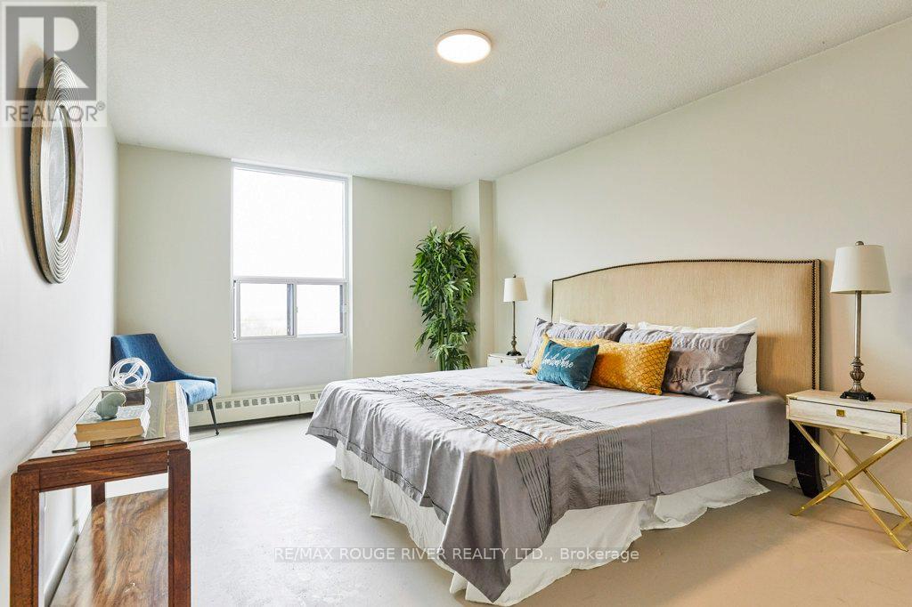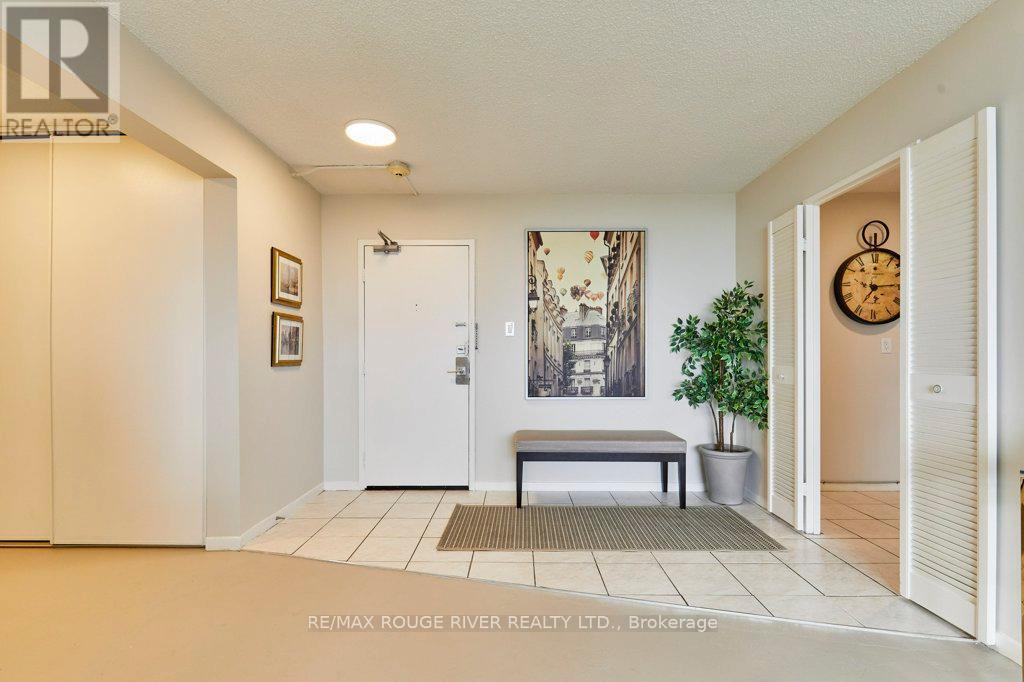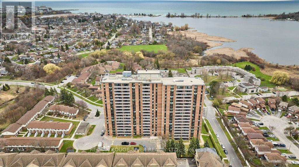 Opportunity knocks at "The Bayshore," a popular, well-managed building in Bay Ridges. Complete with the famous views of Lake Ontario/Frenchman's Bay, this wonderful suite is on the south-west corner. Boasting 1278 sq ft (per floor plans) with three bedrooms and 1.5 bathrooms. The spacious living room/dining room combo walks out to a huge, south-facing main balcony. The primary bedroom is also south-facing and includes a walk-in closet, ensuite 2-pc bathroom and a private balcony facing west. The home has been updated with upgraded light fixtures; Decora outlets and switches; professionally re-glazed bathtub (looks like new!); and several new doors and handles. There is laundry in-suite, and the washer and dryer are also brand new. In addition, the windows and patio door have been replaced in the entire building and the cost of the Special Assessment for the project has been fully covered by the Seller. Many suites at The Bayshore have been extensively renovated and Unit 708 is ready for your signature improvements - in fact, the old carpet has already been removed for you and the clean, sealed concrete floors are ready for your flooring of choice. Building amenities include a large underground Visitor parking lot; on-site management (City Sites Property Management); gym and party room. Note that all utilities are included in the condo maintenance fee. Walk to the Pickering GO Station and Pickering Town Centre; ready access to local transit, 401/407/412; Pickering Waterfront Amenities, parks, schools, community centre, two local marinas and much more! (id:4555)