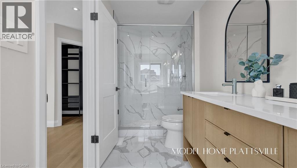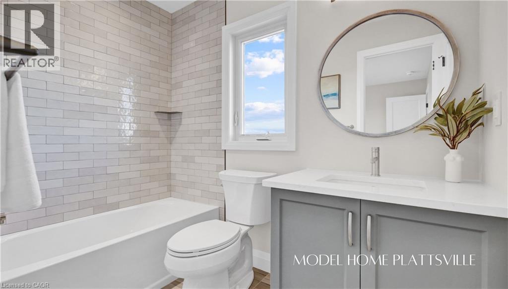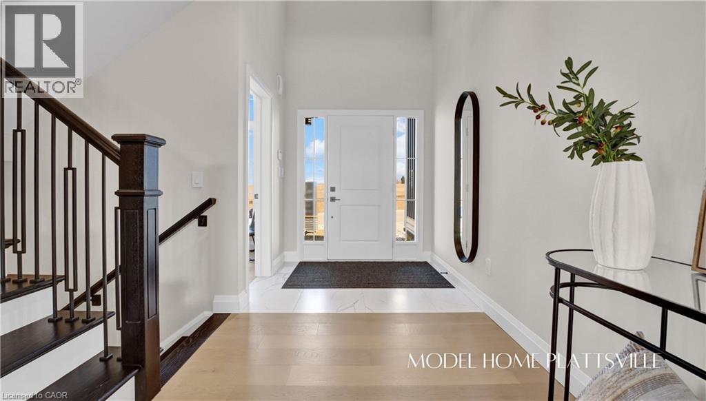 PROMO — Limited Time Only! Receive $5,000 in Design Studio Dollars, engineered hardwood in all bedrooms, and a gas fireplace with your purchase! Nestled in the quaint town of Plattsville, just 20 minutes from Kitchener/Waterloo, 60 minutes from the GTA, this new townhouse opportunity by Sally Creek Lifestyle Homes blends small-town charm with modern convenience. Plattsville is not crowded—here you'll enjoy room to breathe, a welcoming community, and the comfort of space while still being close to everyday amenities. The main level features engineered hardwood flooring and 1'x2' quality ceramic tiles, paired with soaring 9' ceilings on both the main and lower level for an open, airy feel. A striking oak staircase with iron spindles adds elegance, while the kitchen showcases quartz countertops, extended-height cabinets with crown moulding, and storage. The primary suite includes a walk-in closet and a private ensuite with a sleek glass shower. Oversized picture windows allow natural light to fill the home, while the exterior design boasts board and batten, stone, and siding, complemented by modern rooflines for exceptional curb appeal. Added bonus: garage access to the backyard. Additional features include air conditioning, HRV, high-efficiency furnace, and fully sodded lots. Buyers can also customize their home beyond standard builder options, ensuring a space perfectly suited to their lifestyle. Added perks include capped development charges and an easy deposit structure. Please note this home is to be built, with several models and lots available. (id:4555)