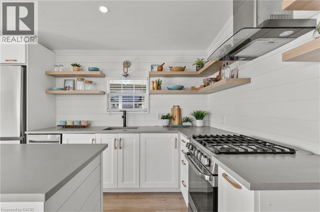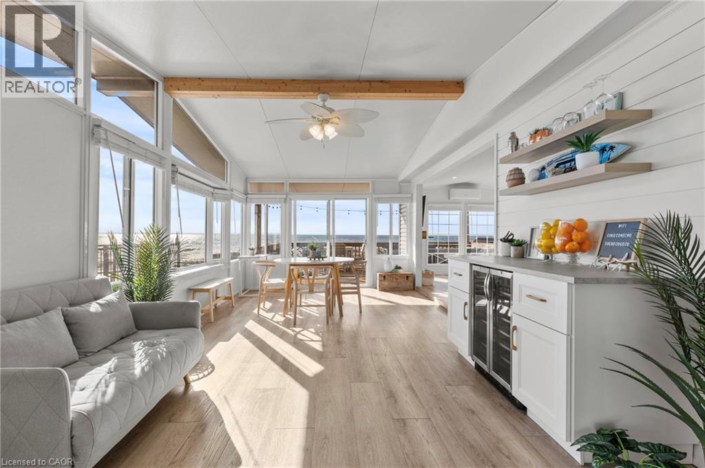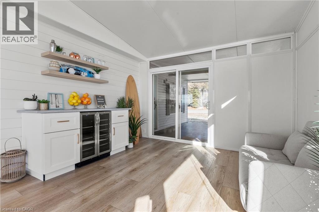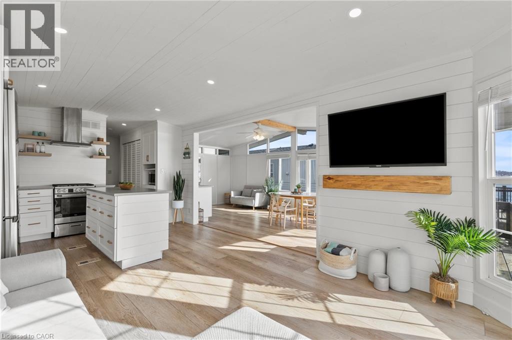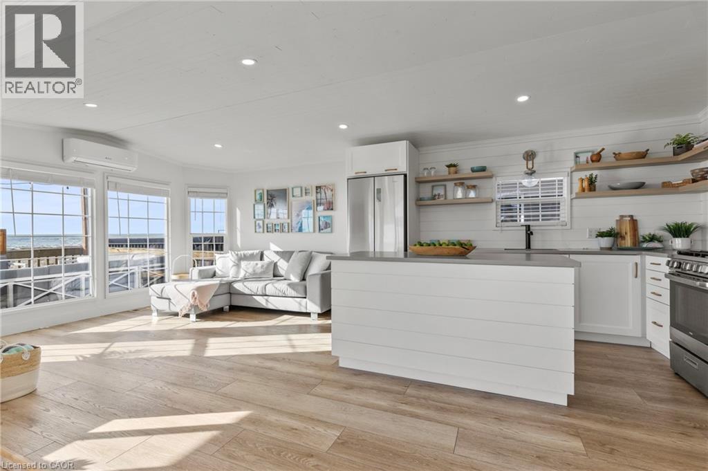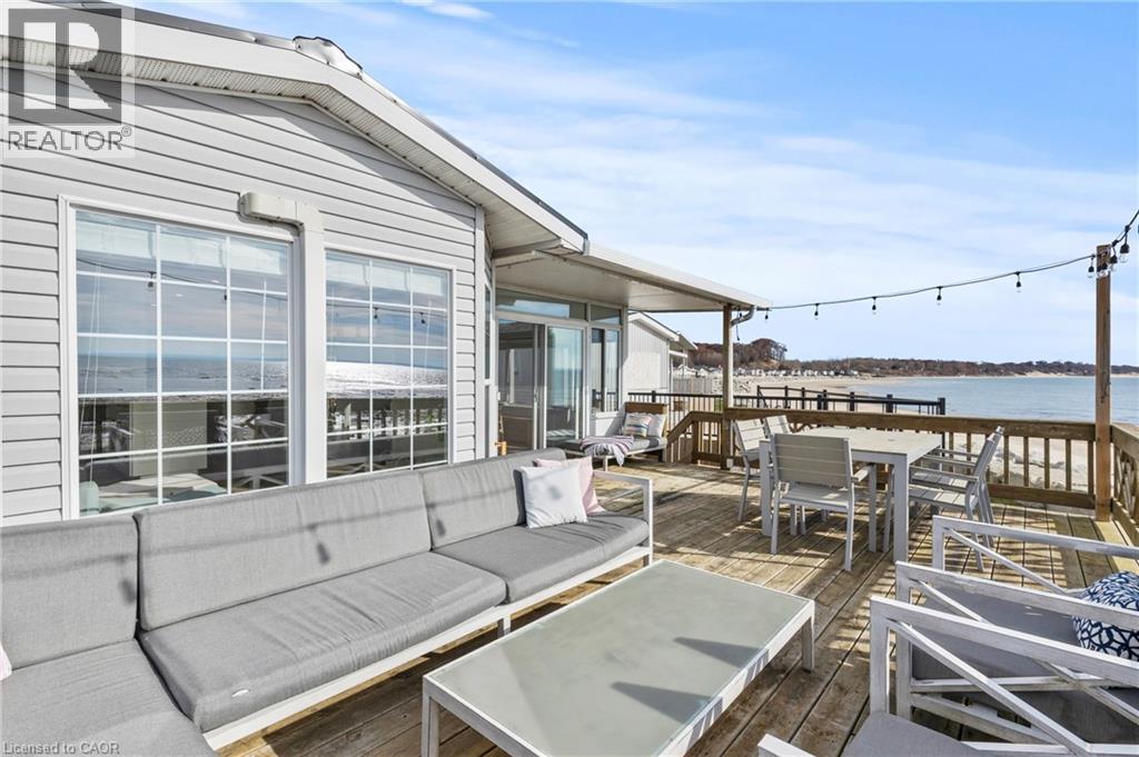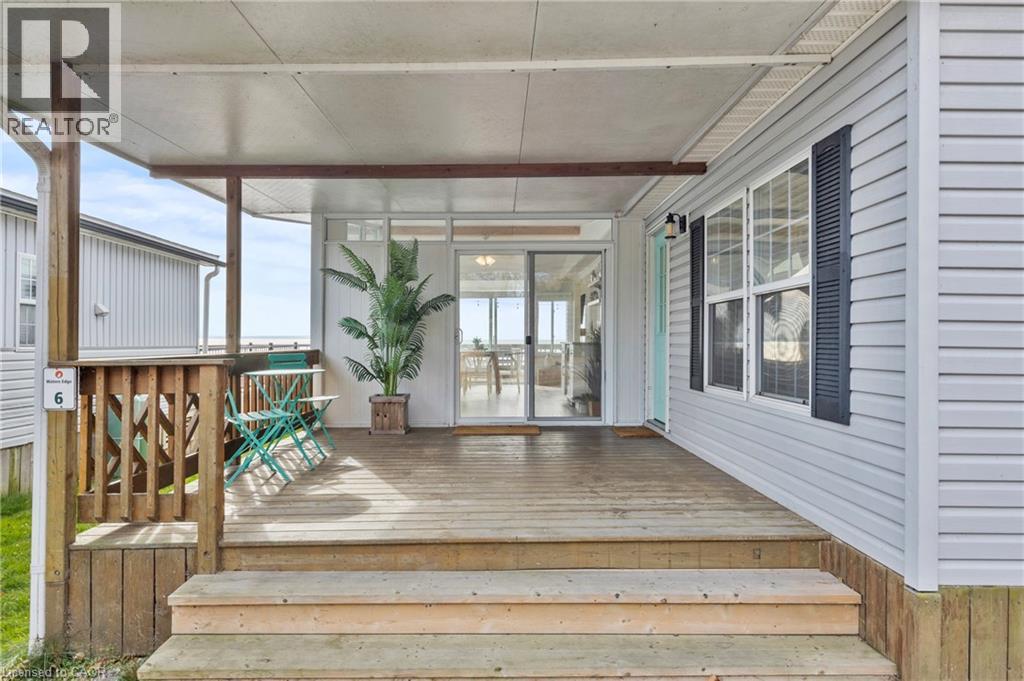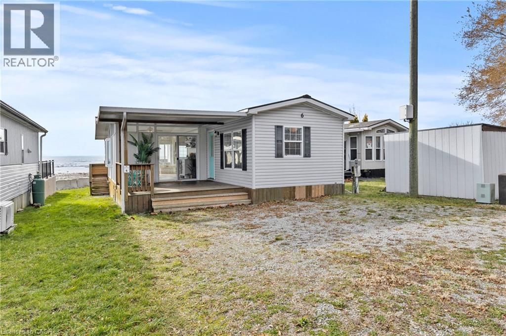 Welcome to 6 Water's Edge! This beautifully renovated lakefront cottage is truly move-in ready and perfect for anyone looking to enjoy effortless waterfront living. AMAZING INCOME POTENTIAL OF $3000+ PER WEEK! Offering 2 bedrooms, a fully updated bathroom, and a bright, open-concept kitchen/living/dining area, it's the kind of place where the whole family will love spending time together. The kitchen features an island, stainless-steel appliances, a modern hood fan, and a sleek black sink and faucet. The dining area-complete with a bar fridge-lets you enjoy meals al fresco by the lake or inside in the comfort of a bright, airy space. The living room is finished with stylish shiplap and a floating wood mantle for a relaxed, modern cottage vibe.After a sun-soaked day on the beautiful beach just steps away, unwind under the stars by the stone-paver lakeside fire pit, or take in the expansive water views from the extended back deck. The large covered front deck sets the tone the moment you arrive-welcoming, comfortable, and built for making memories.Located just 90 minutes from Toronto and 20 minutes from Niagara Falls, Sherkston Shores spans 560 acres of stunning grounds with 4 km of sandy beachfront, giving you endless opportunities to explore, relax, and enjoy the outdoors.With features like a furnished interior, mini-split heating/cooling system, open floor plan, walk-in shower, washer/dryer hookups, kitchen island, and of course the premium waterfront site, resort life at The Shores is truly calling. (id:4555)